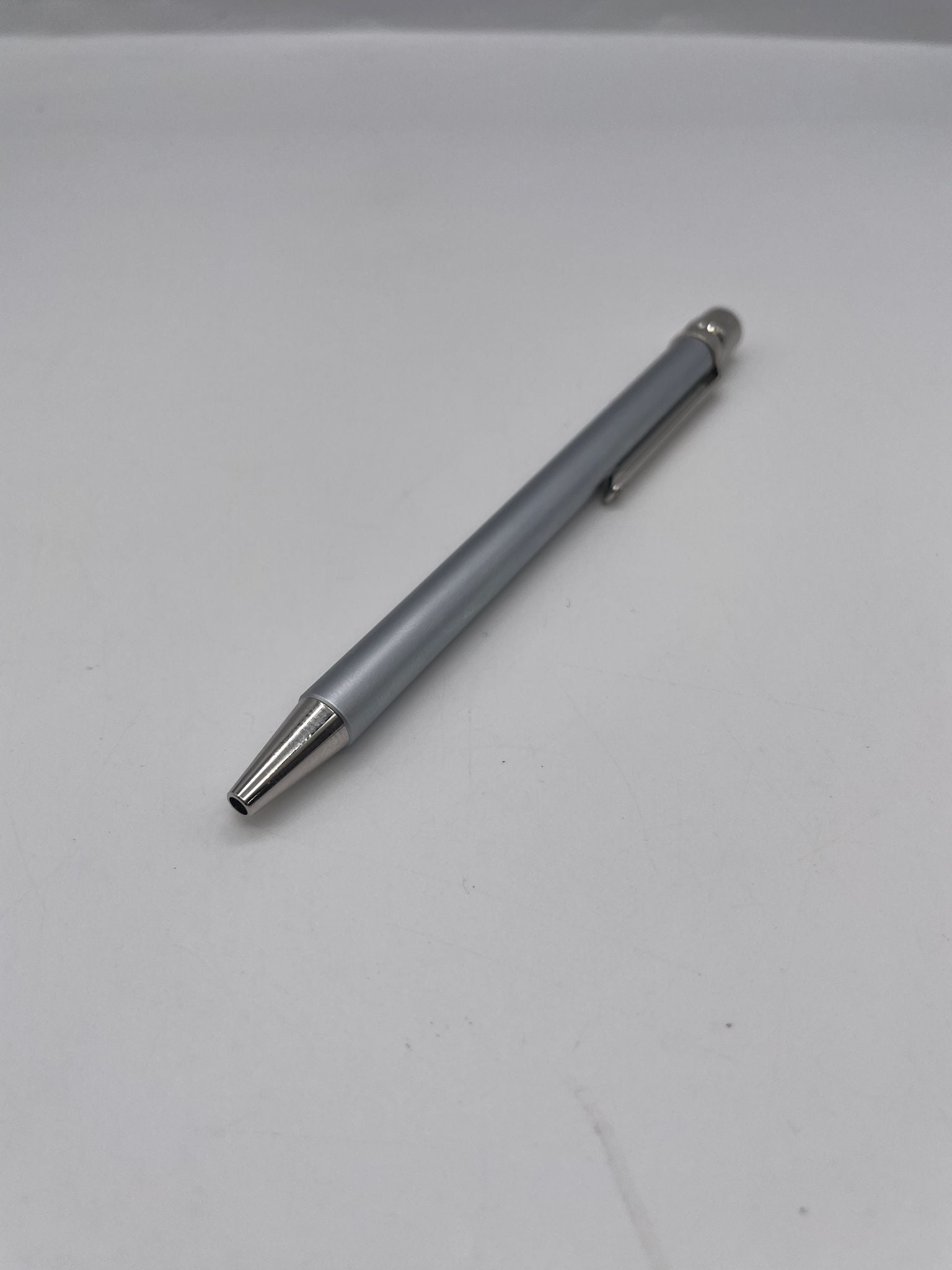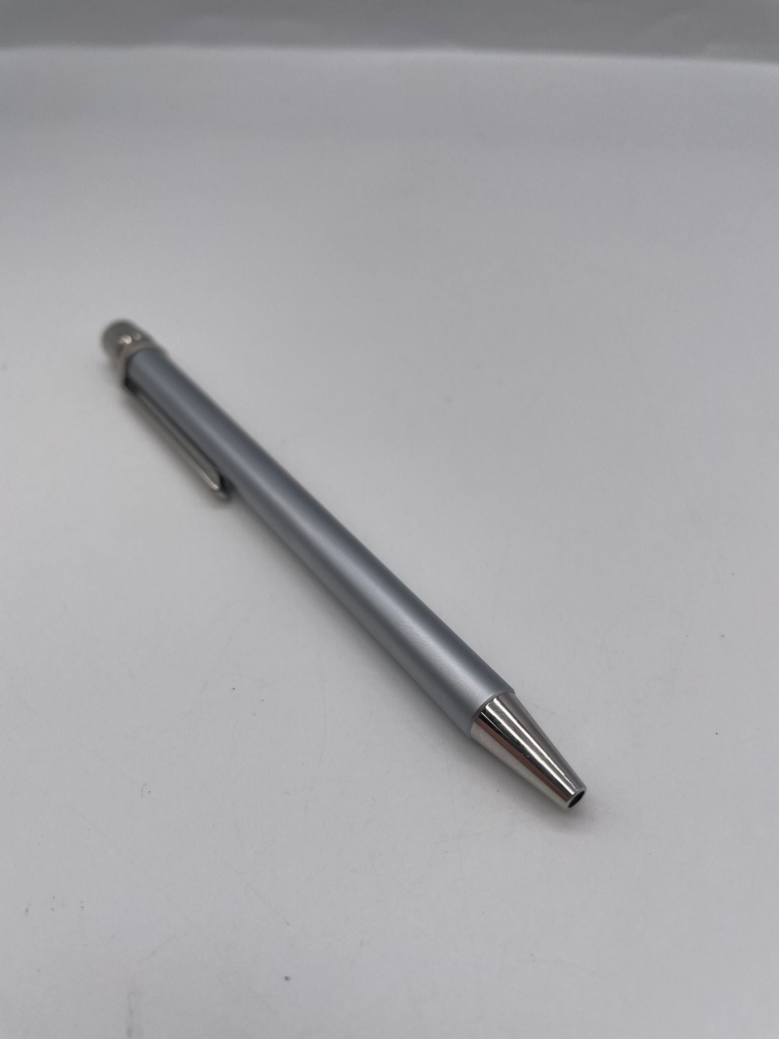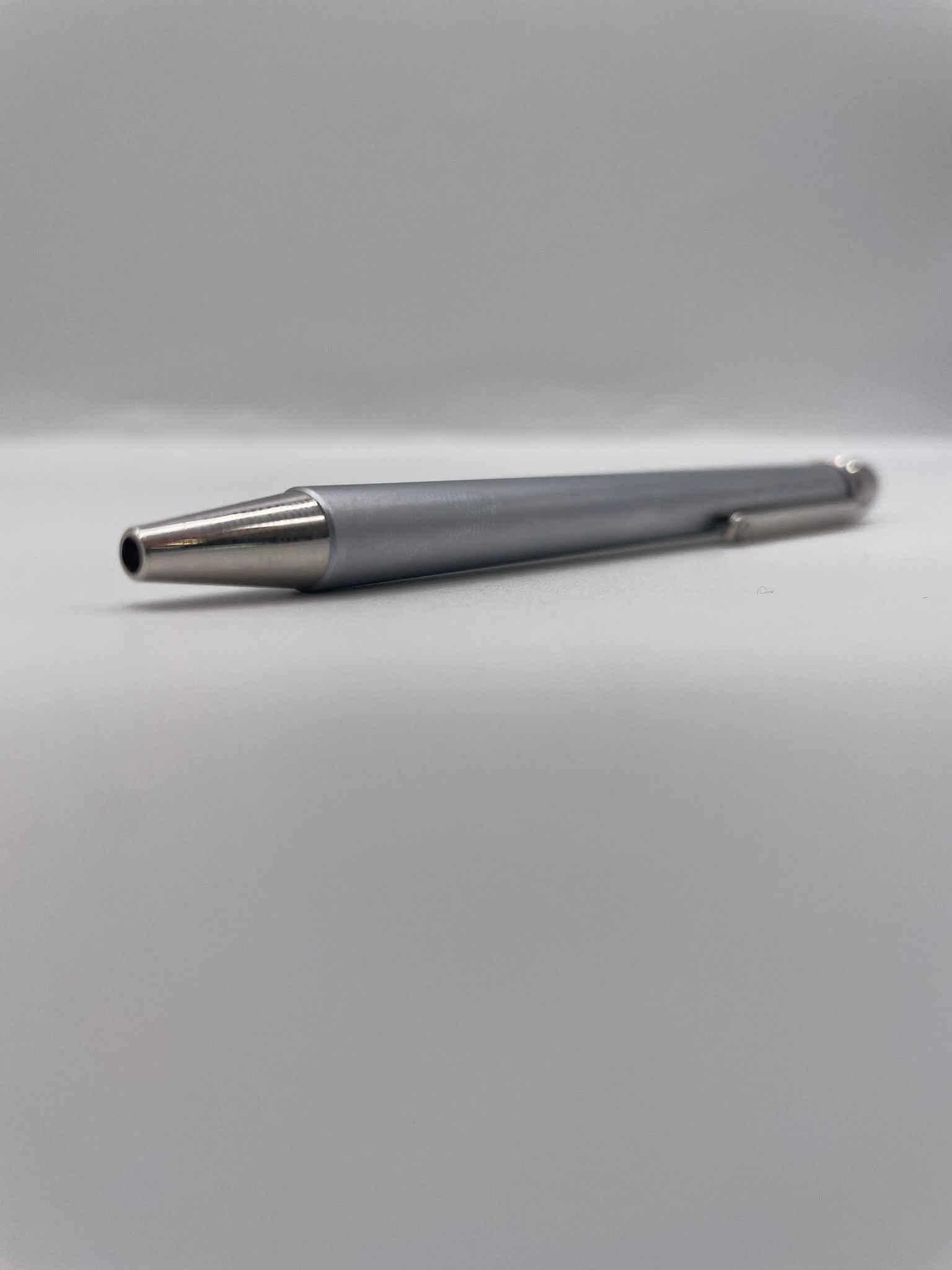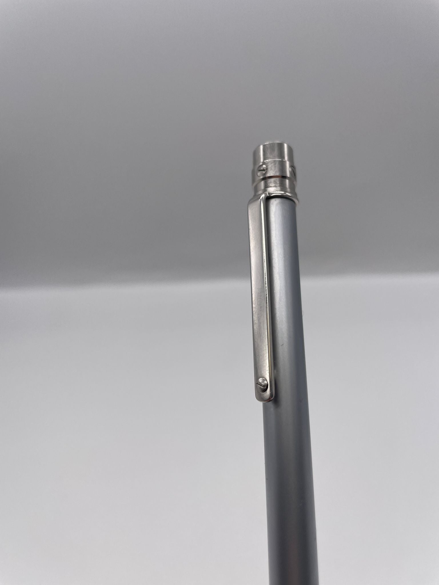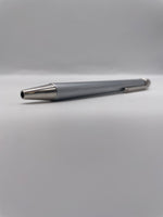 Santos de Cartier ballpoint pen, small model, brushed metal body, palladium-finish screw and details.