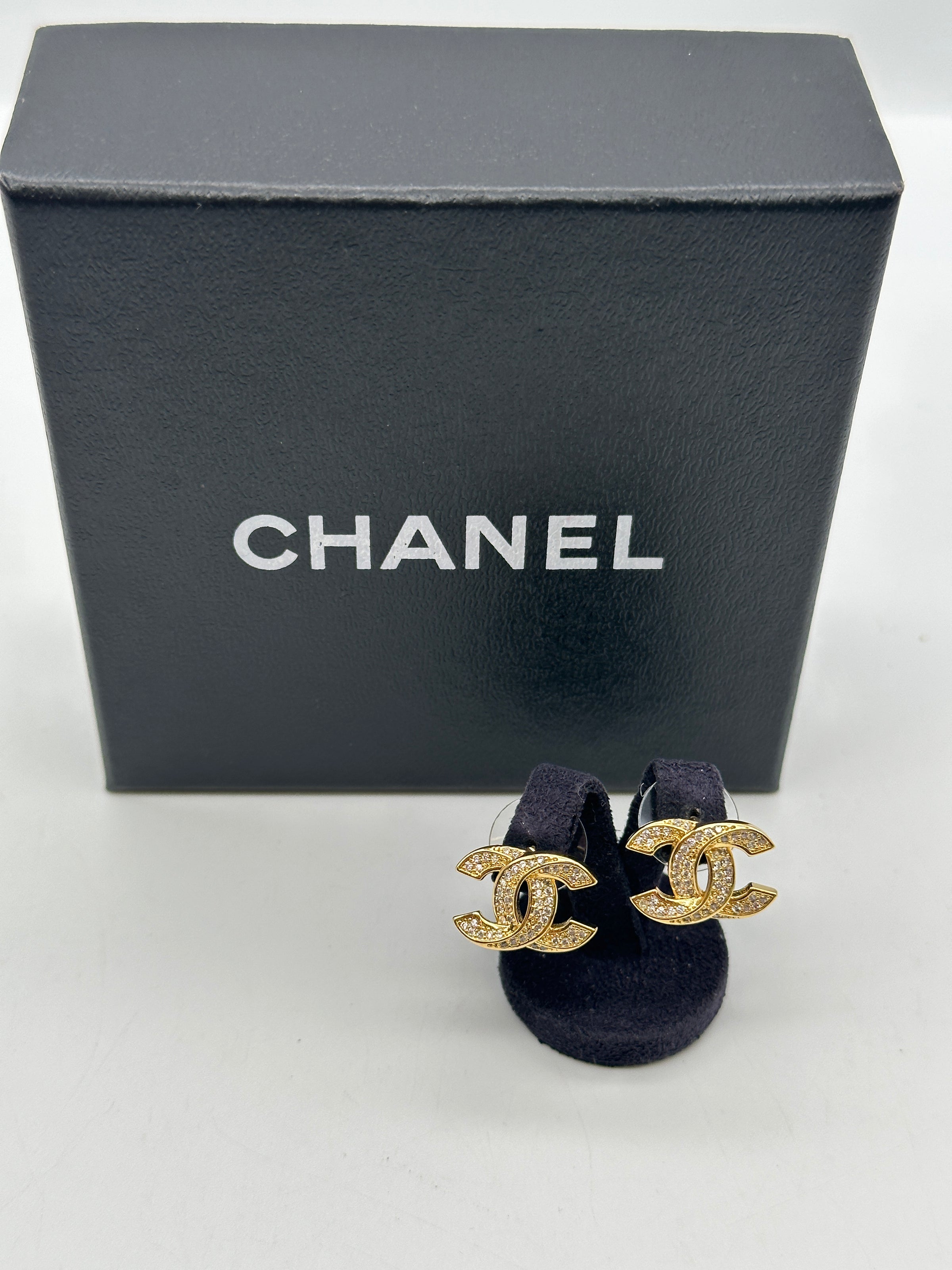 Stunning Chanel Gold Plated Cubic Zirconia Earrings With The Classic CC logo