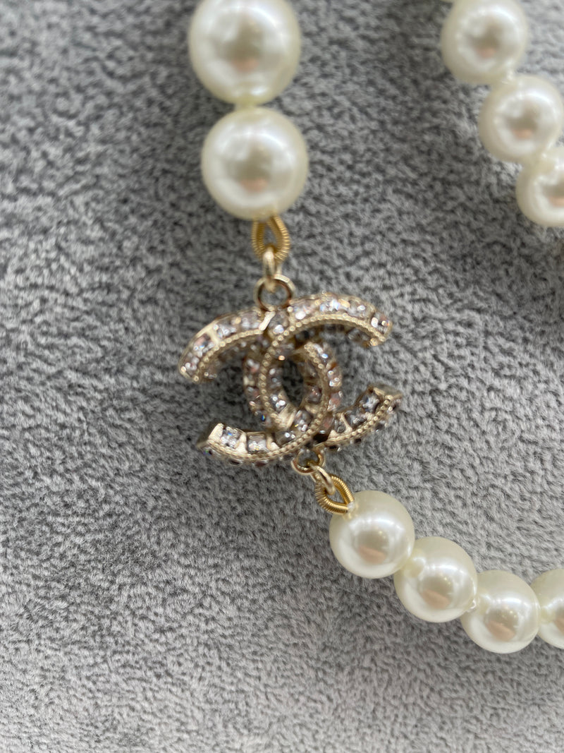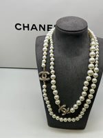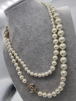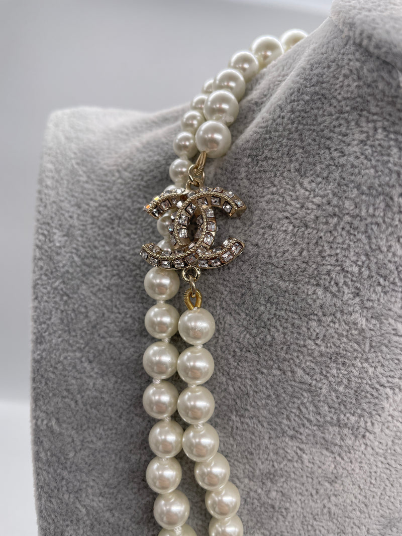Chanel Double Length Pearl Necklace With Diamanté Interlocking C Logo