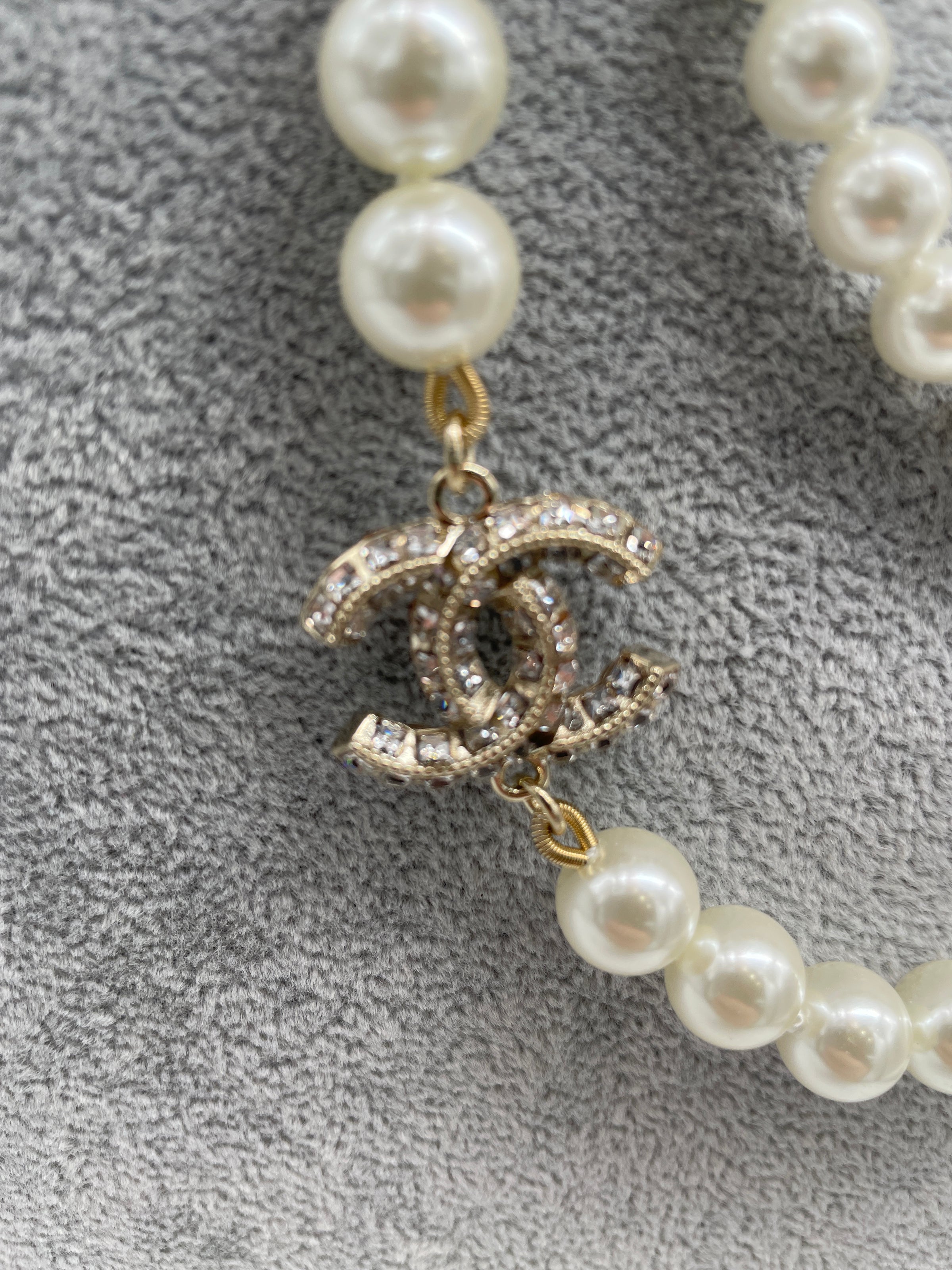 Chanel Double Length Pearl Necklace With Diamanté Interlocking C Logo, freshwater pearls and cubic zirconias complete this stunning necklace
