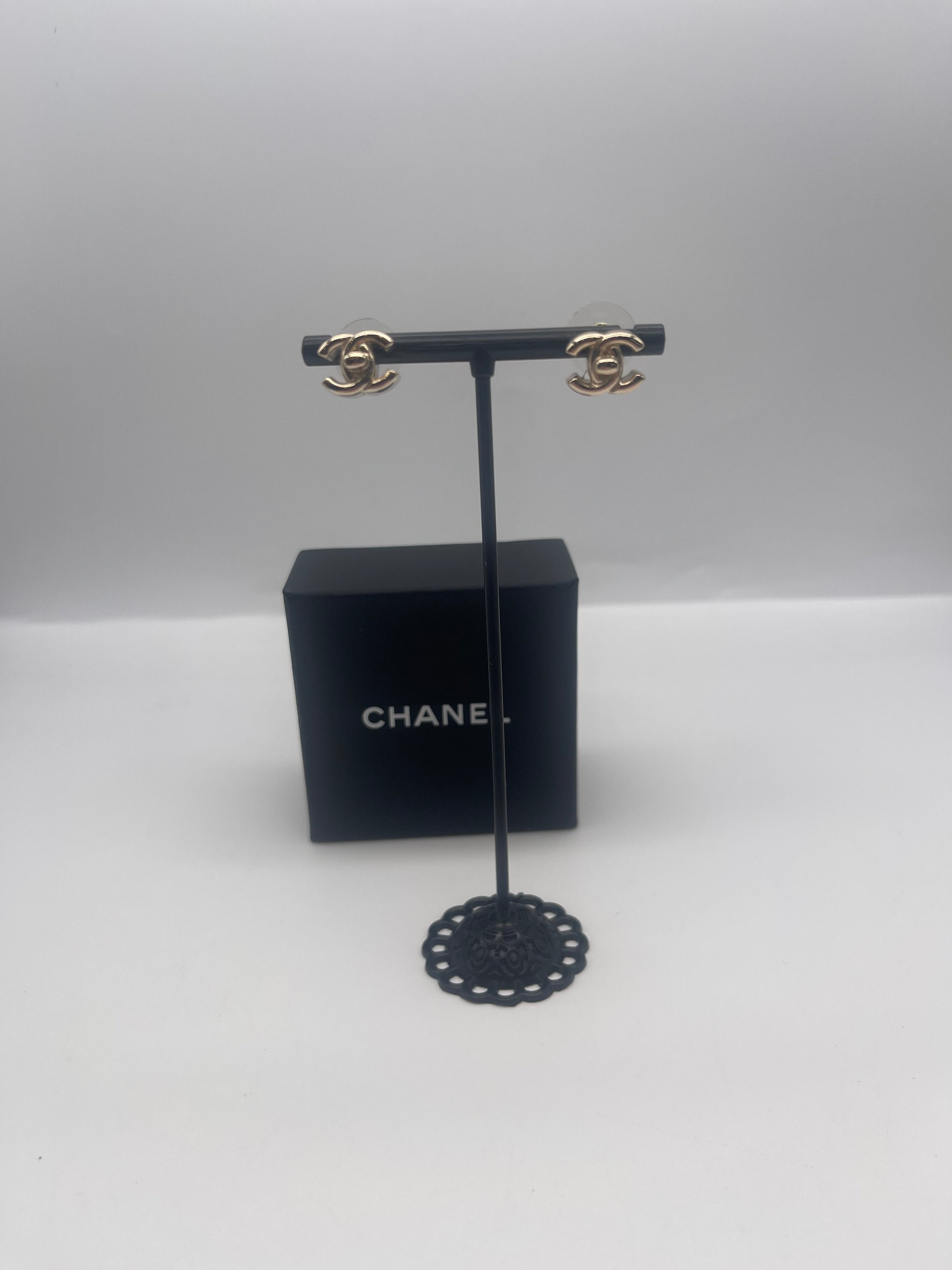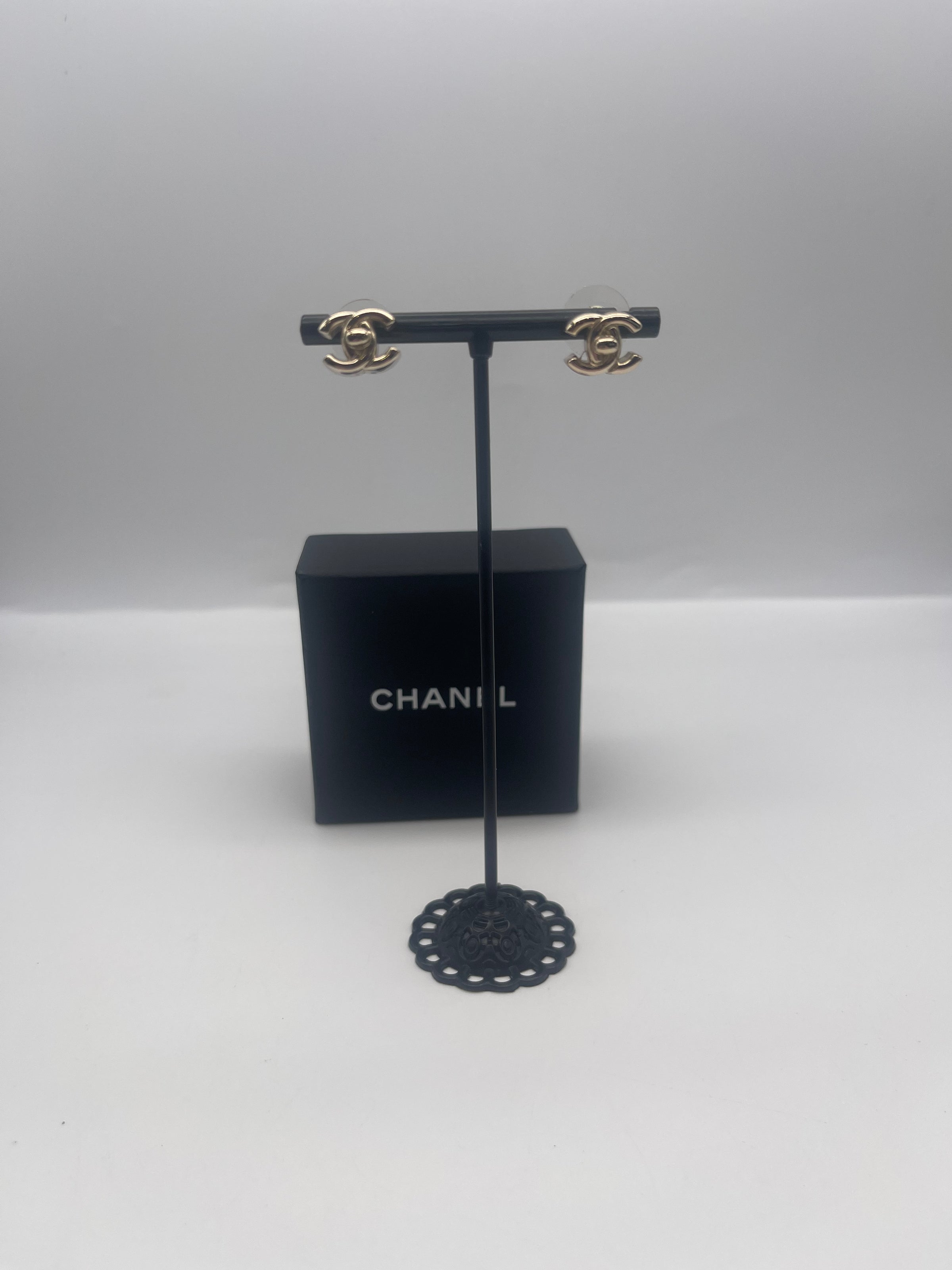 Beautiful Chanel Gold Plated Studs, Inspired by the Clasp on the Classic Flap Bag. Featuring the Iconic Chanel interlocking C logo