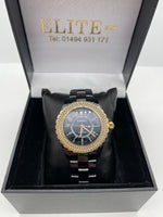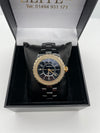 This watch also comes with an aftermarket gold, diamond bezel which is pictured.