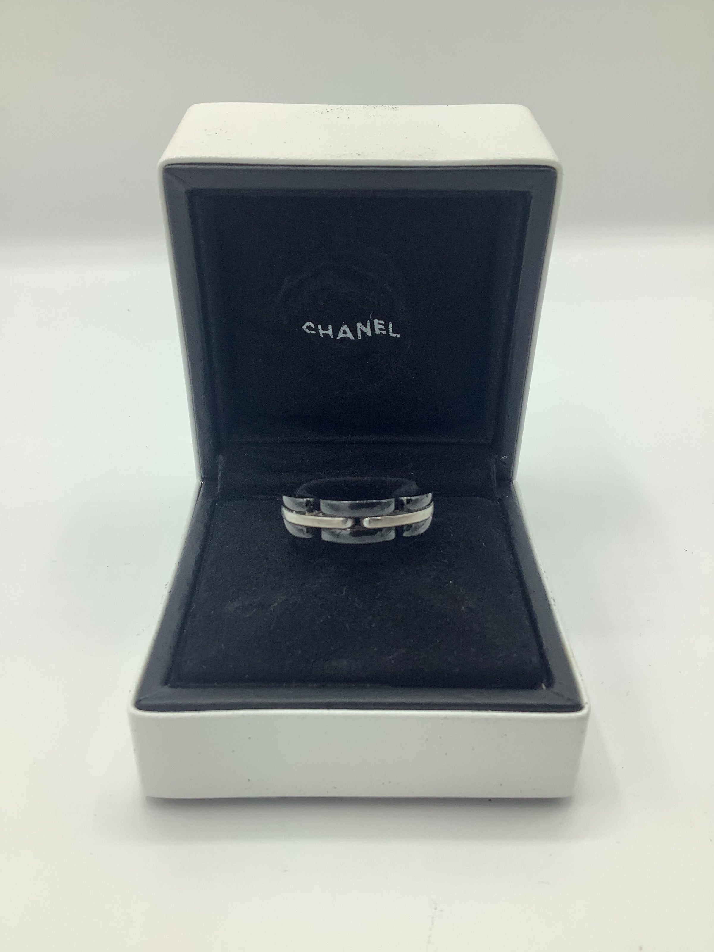 Materials and Design: The CHANEL J12 Black Ceramic Men's Ring is meticulously crafted from high-resistance black ceramic, renowned for its durability and sleek finish. The design embodies the modern and timeless aesthetic characteristic of the J12 collection, offering a bold yet refined statement piece.