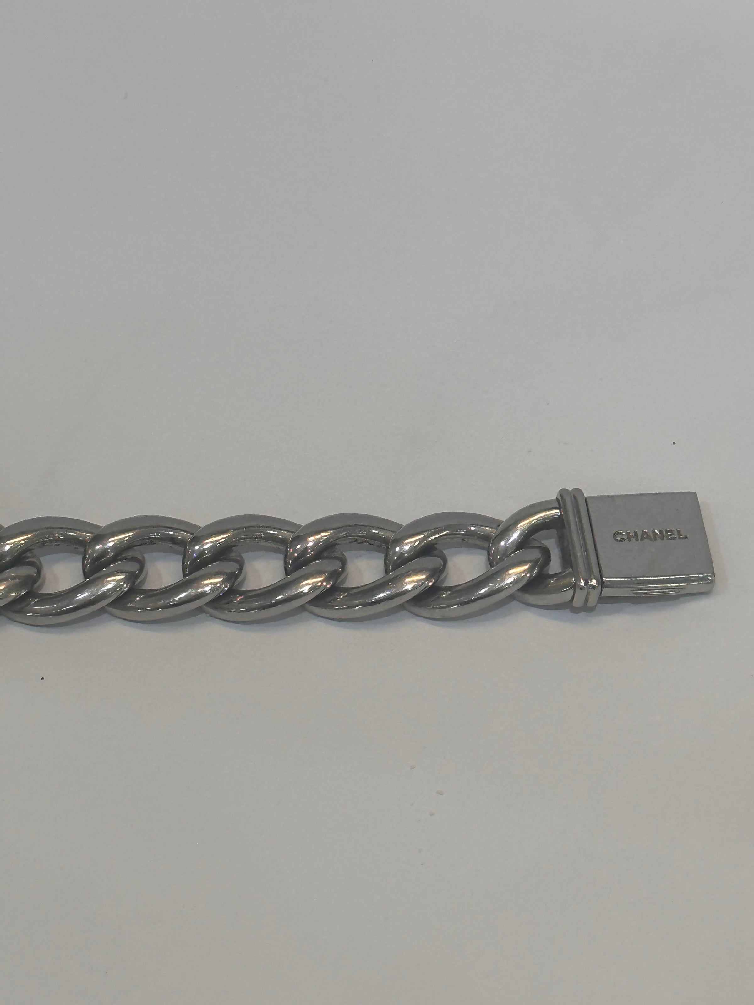 This beautiful little Chanel watch on a Cuban chain bracelet with a gem set bezel.