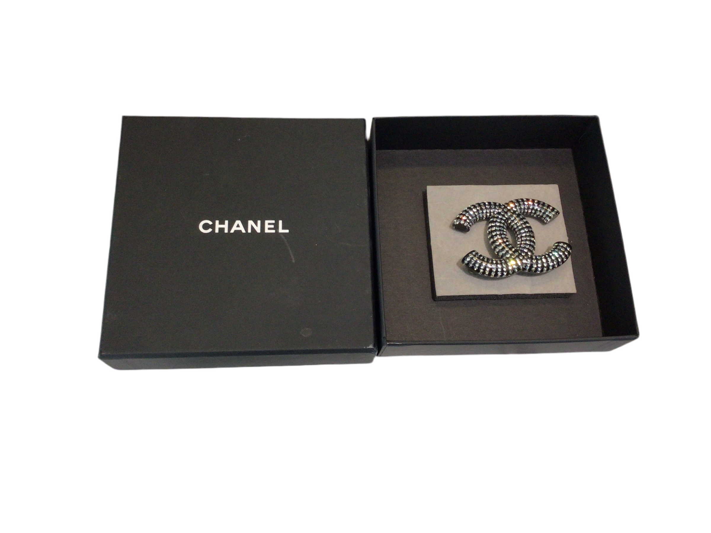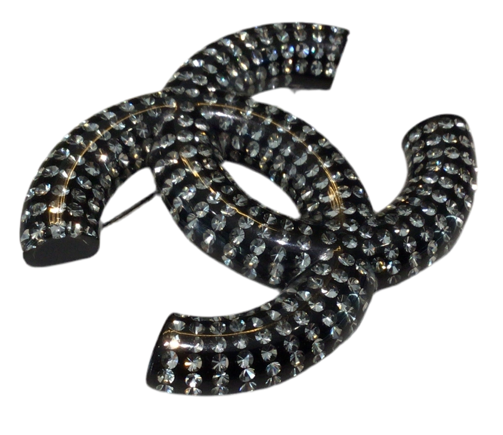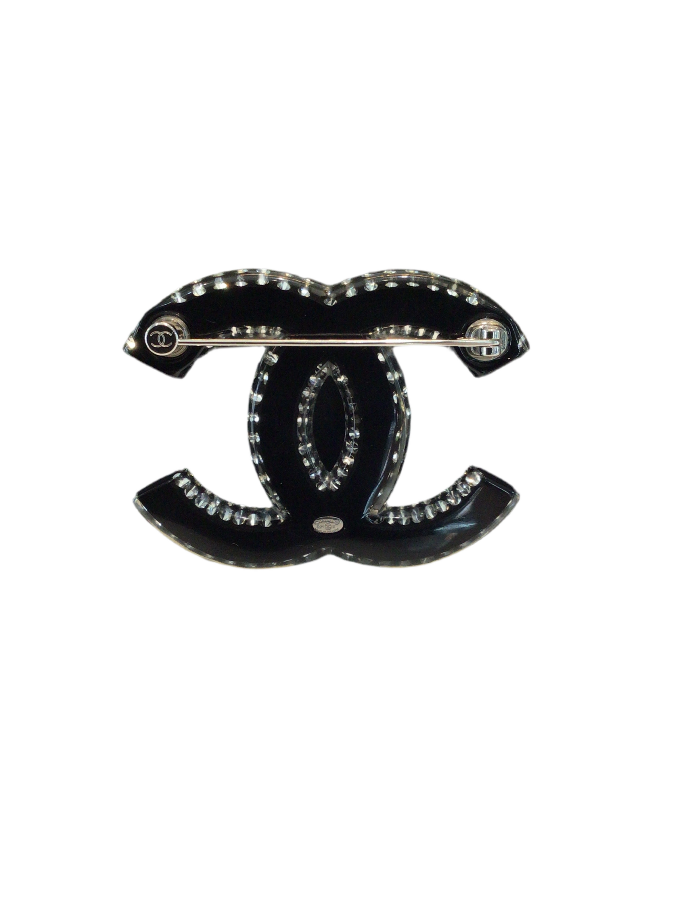 Materials & Design: Crafted in glossy resin accents with sparkling crystal or rhinestone embellishments, this brooch celebrates Chanel’s iconic interlocking Double C motif with glamorous contrast.