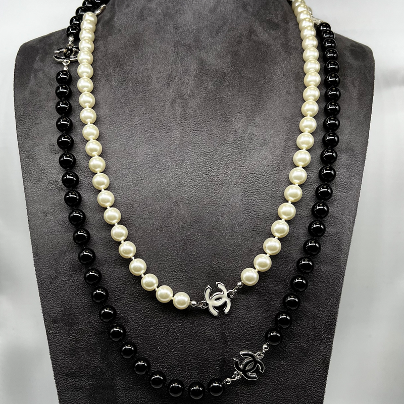 Chanel Runway Double Layer Black & White Pearl CC Necklace