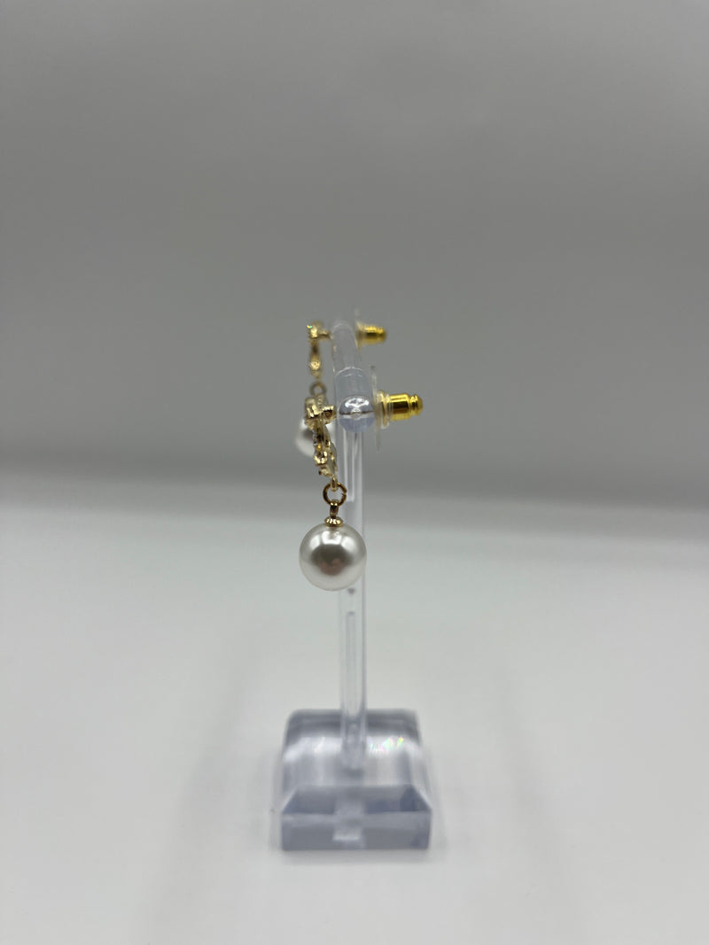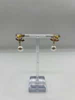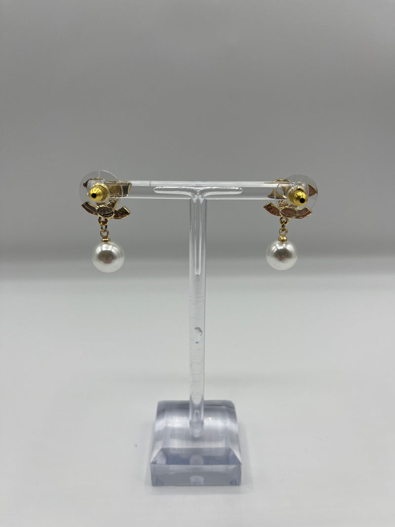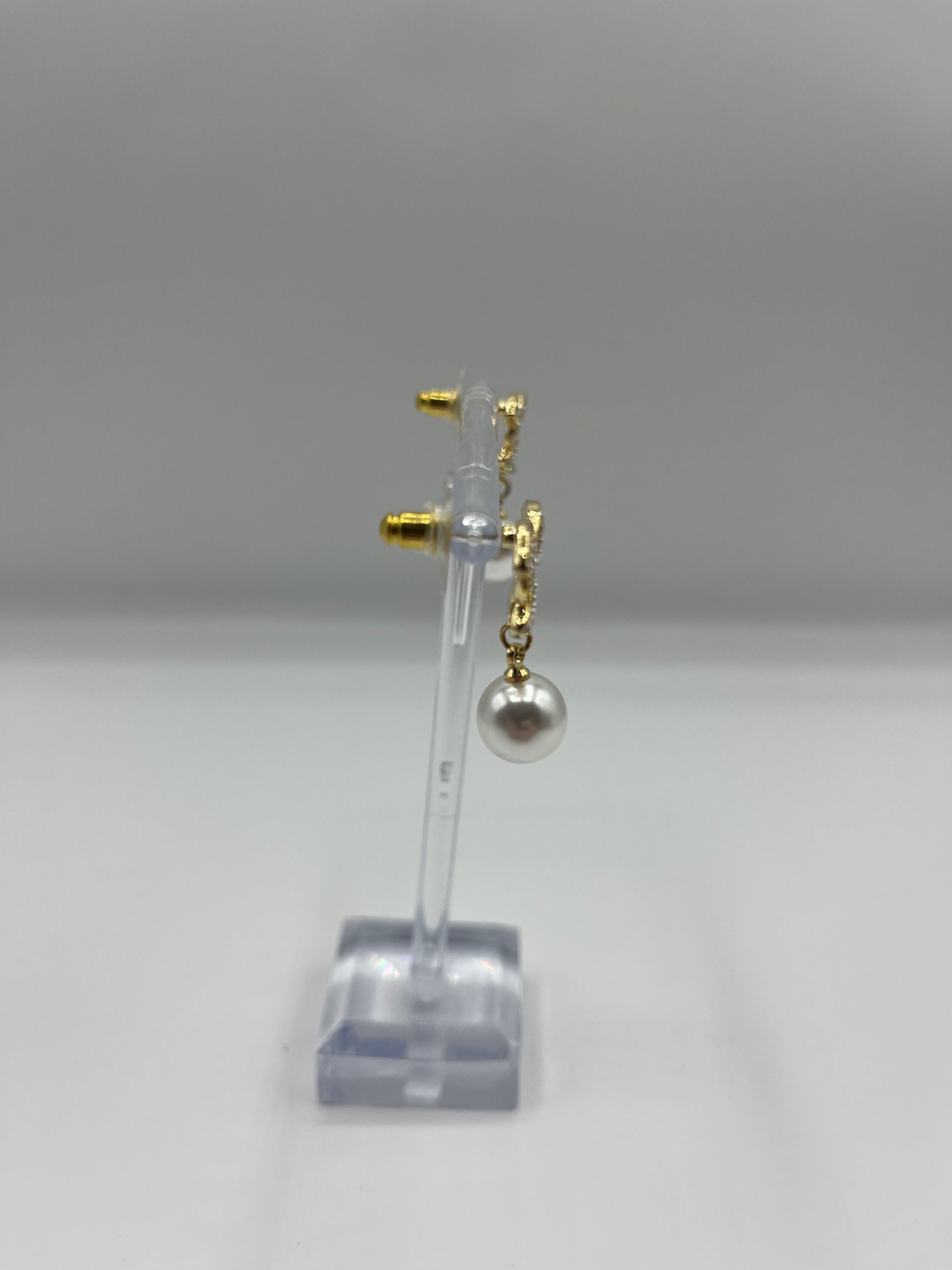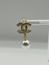 These beautiful Gold Plated Chanel Earrings Featuring the iconic interlocking C Chanel Logo decorated with Cubic Zirconia and a Pearl Drop