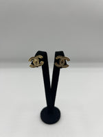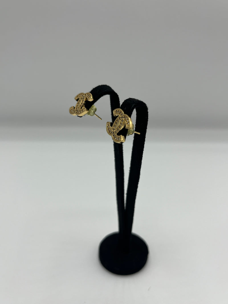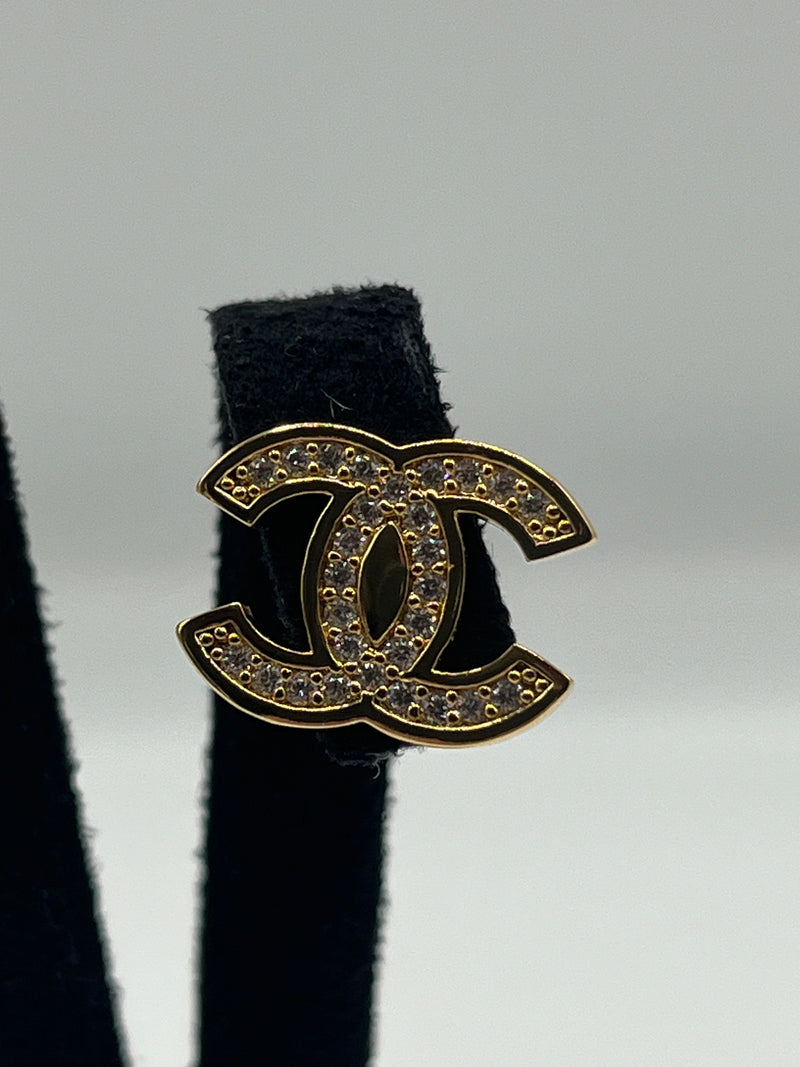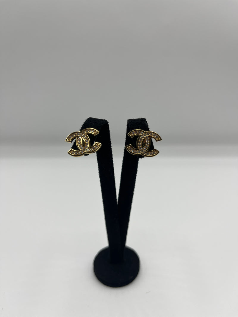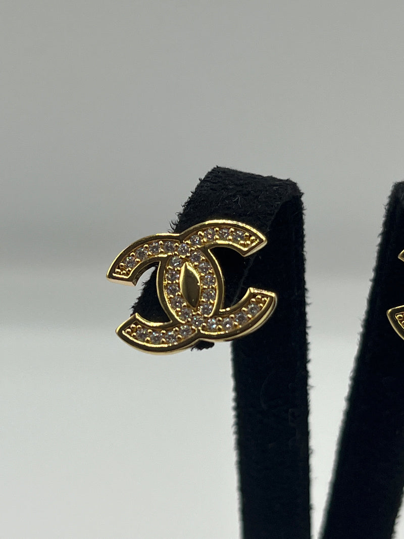 These beautiful Gold Plated Chanel Earrings Featuring the iconic interlocking C Chanel Logo decorated with Cubic Zirconia