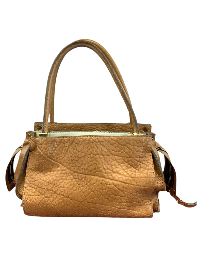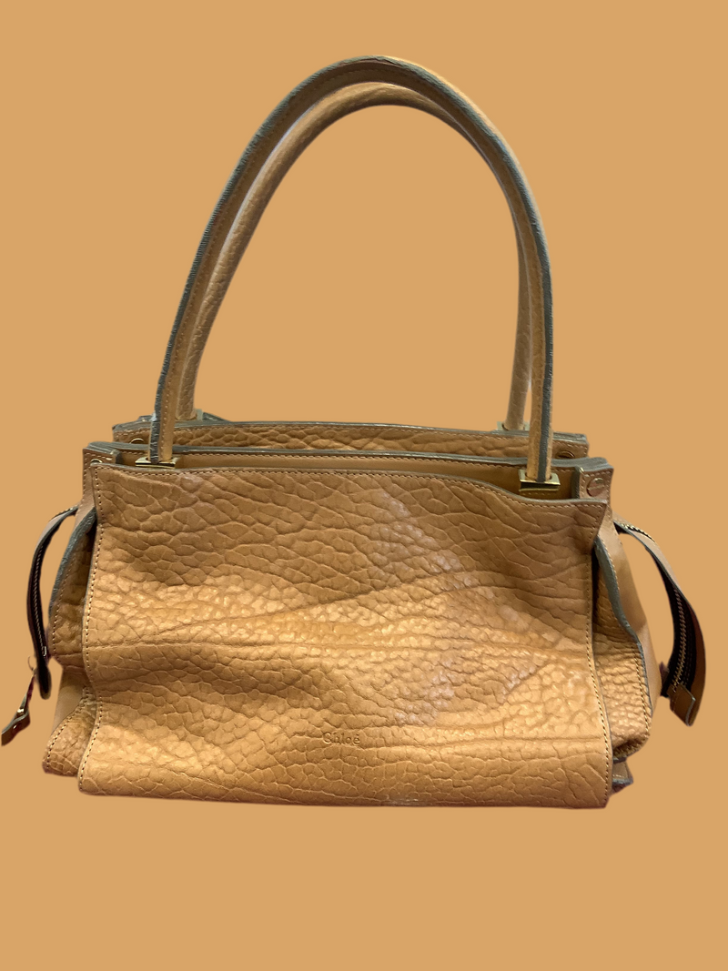 Beautiful CHLOE Ladies Handbag. This bag is crafted of luxurious Tan Coloured Leather with gold-toned hardware. It features two top handles, an adjustable/detachable shoulder strap, a top zipper chain closure, and a black fabric interior with one zipper pocket, two patch pockets, and one card slot.
