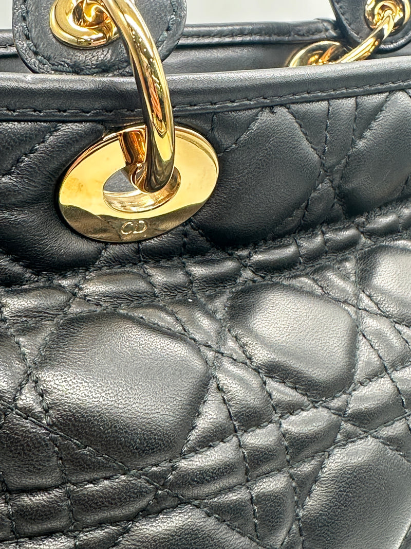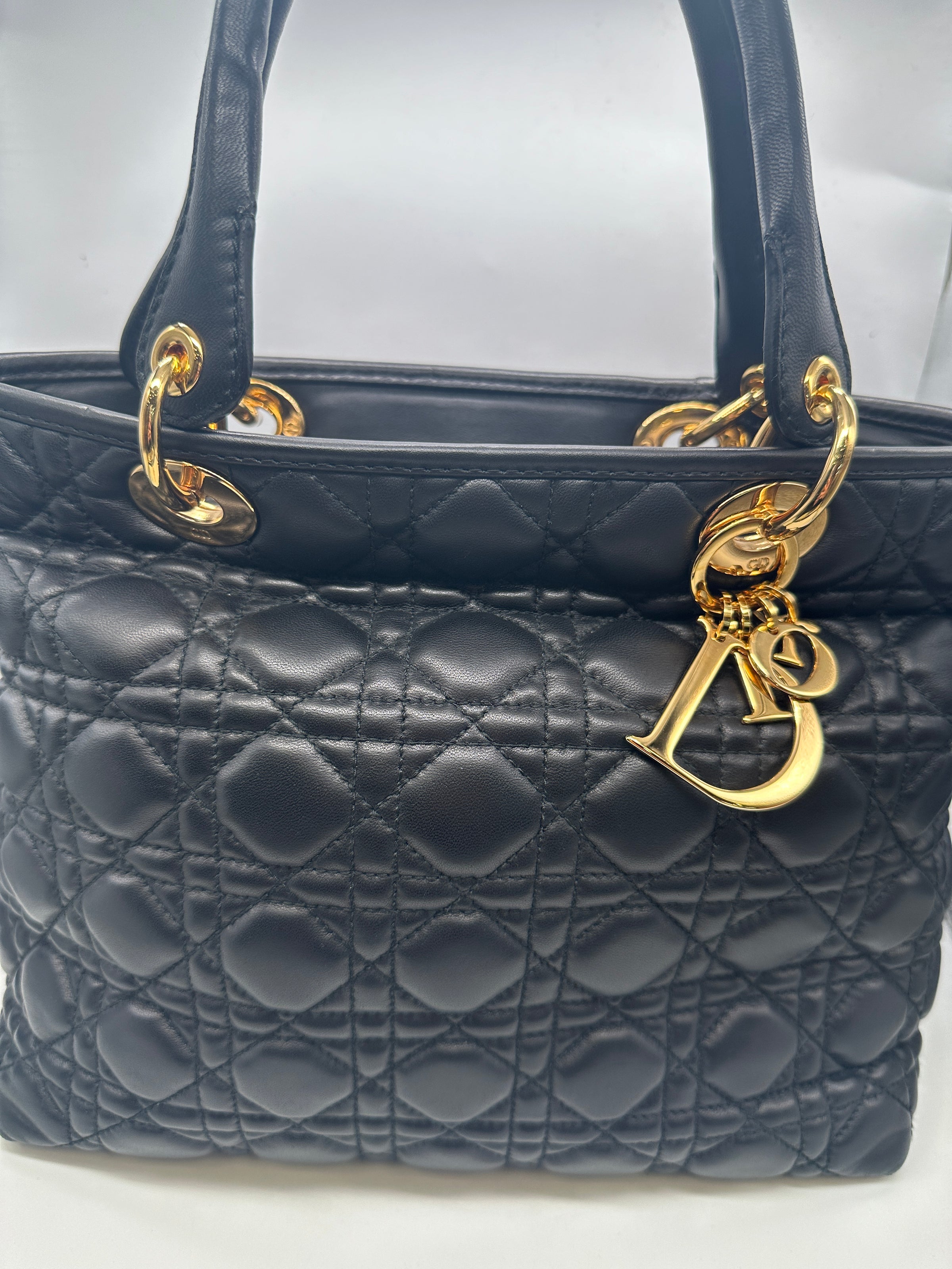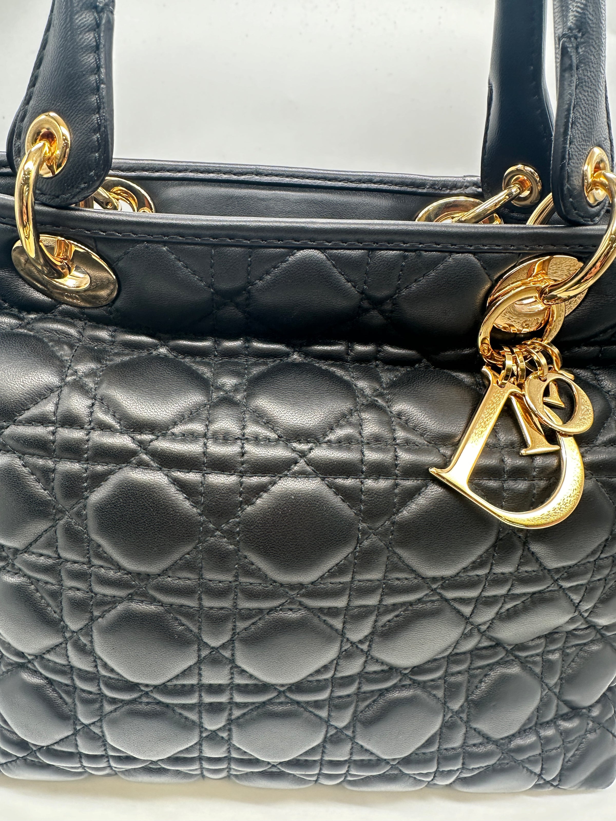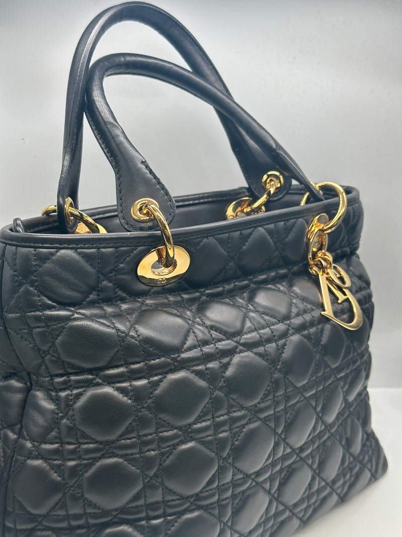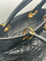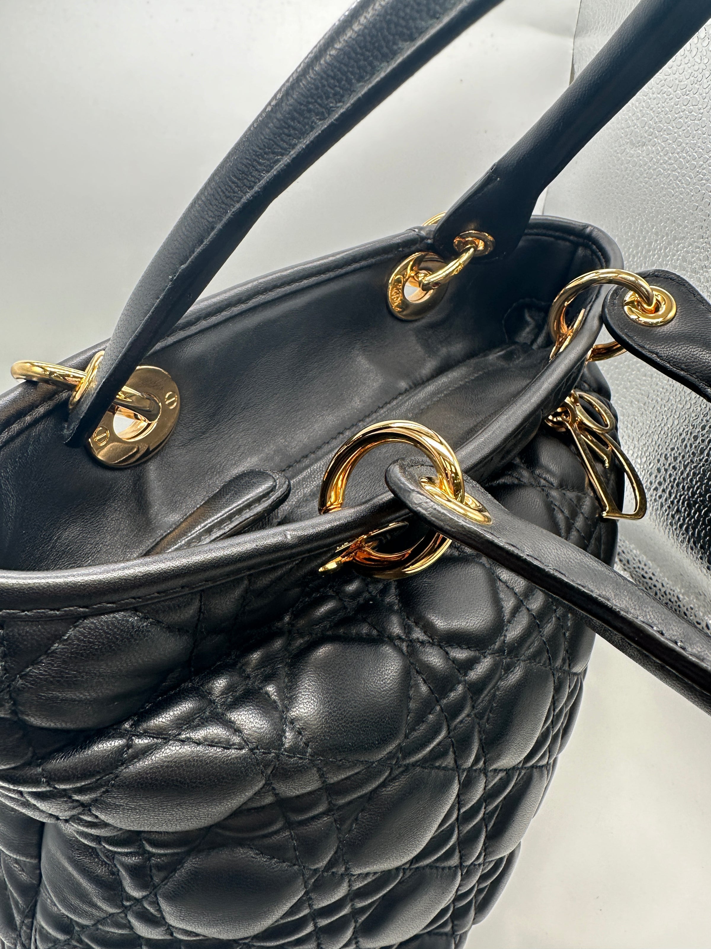 Beautiful Dior Cannage Metropole Small Shopping Tote in pristinely kept Quilted Black Lambskin Leather with Gold coloured hardware.
