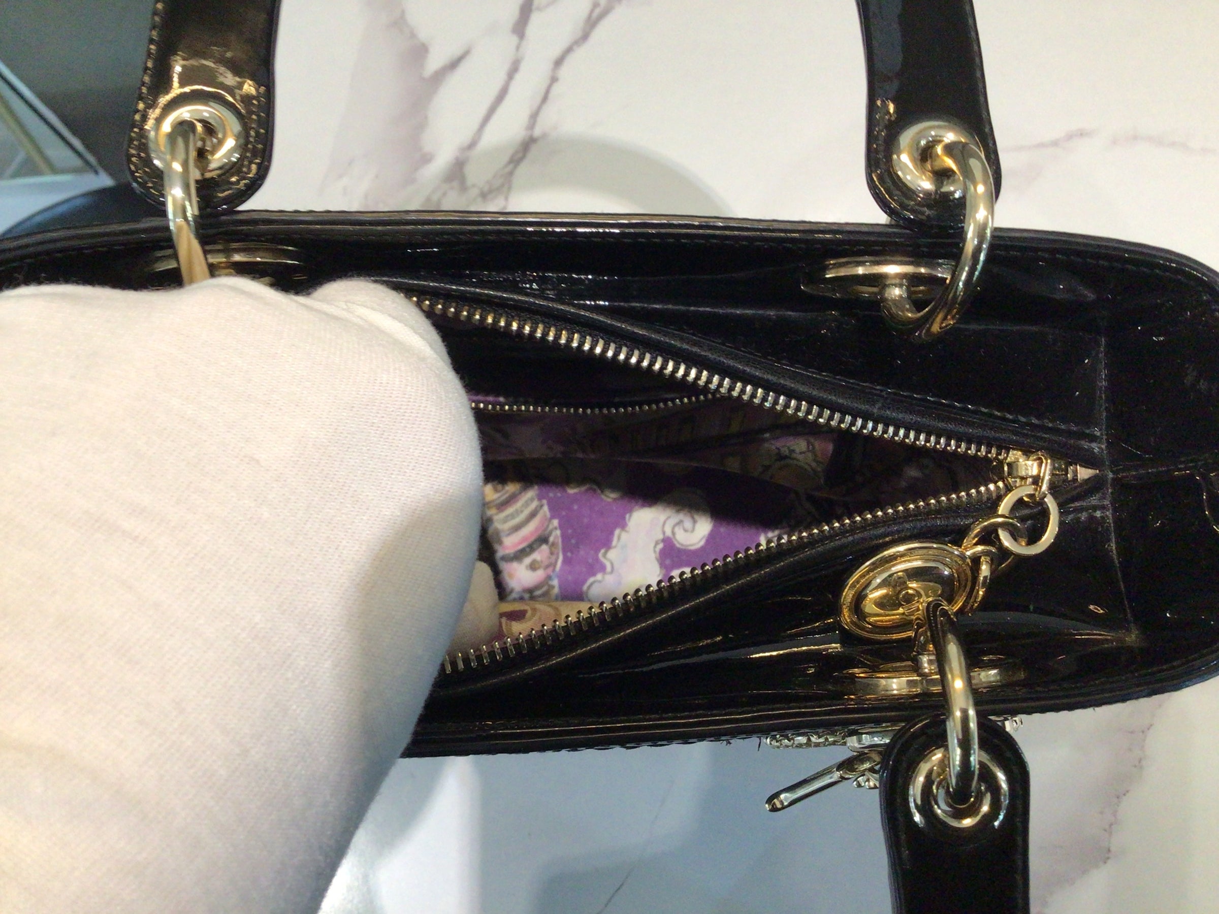 Features: The bag includes a secure top flap or zipper closure, depending on the specific design, and is adorned with the iconic 'D.I.O.R.' charms, adding a touch of elegance. The interior is lined and equipped with pockets to organize essentials efficiently.