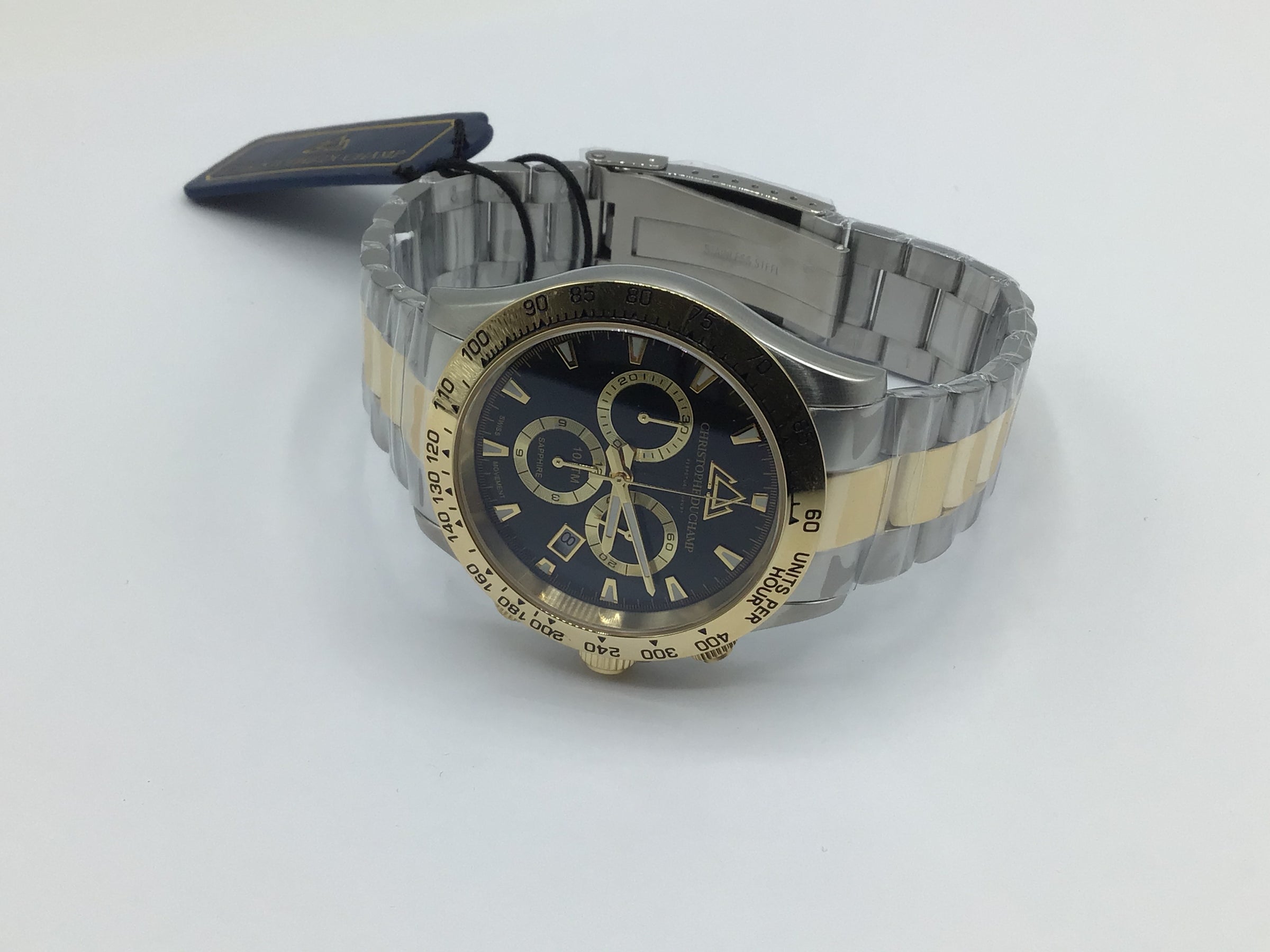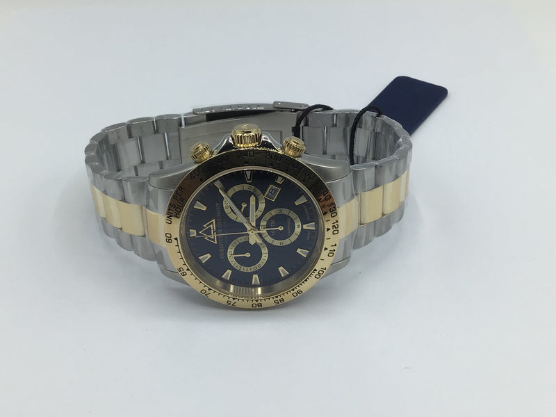 Materials & Design: The Christophe Duchamp Grand Mont is a meticulously crafted timepiece featuring a stainless steel case with an IP gold finish. The black dial is protected by a sapphire crystal, ensuring durability and clarity. The watch is complemented by a stainless steel bracelet, also finished in IP gold, providing a cohesive and luxurious aesthetic.