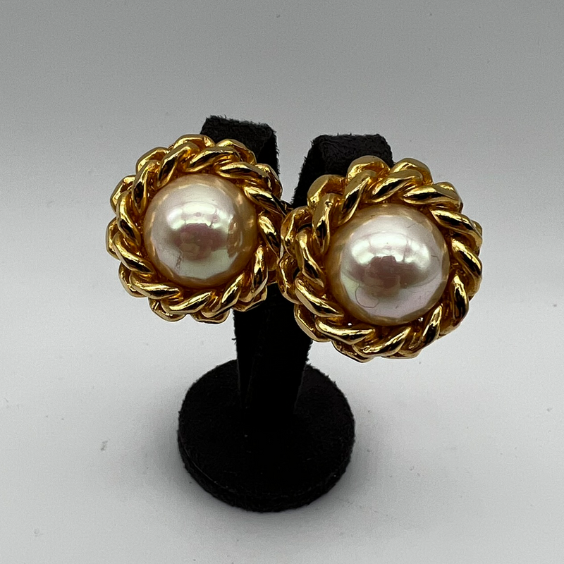 Materials & Design: These vintage Christian Dior clip-on earrings are meticulously crafted from gold-plated metal, exuding a rich and luxurious finish. At the centre of each earring lies a high-quality faux pearl, often glass-based with an iridescent coating to emulate the natural sheen of genuine pearls. The clip-on closure ensures a comfortable fit, making them suitable for both pierced and non-pierced ears.