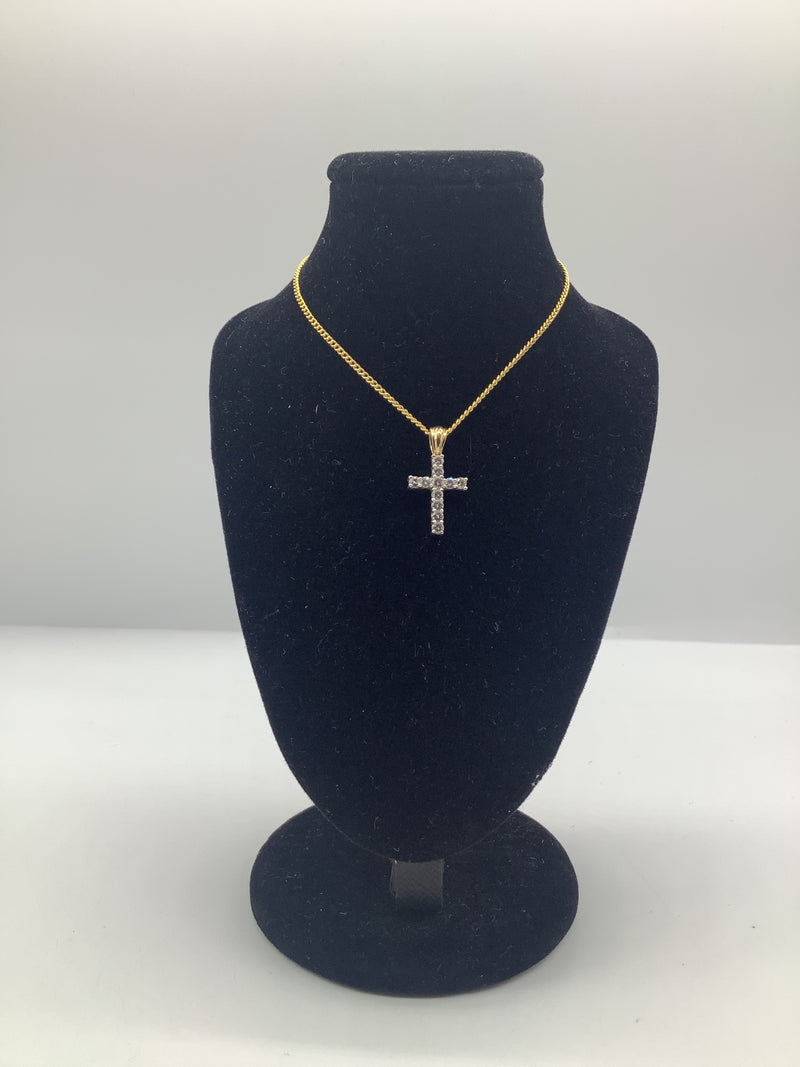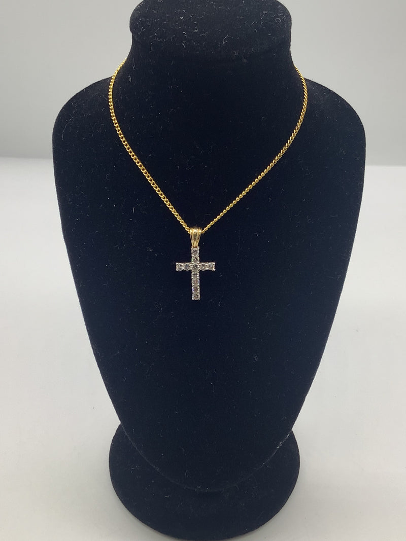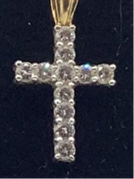 - Design: Elegant cross design with diamonds set in white gold and a contrasting yellow gold loop
