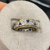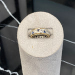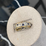 9ct White And Yellow Gold Sapphire And Diamond Full Eternity Style Ring, Art Deco Style Set With trillion Shape Sapphires And Round Brilliant Cut Diamonds