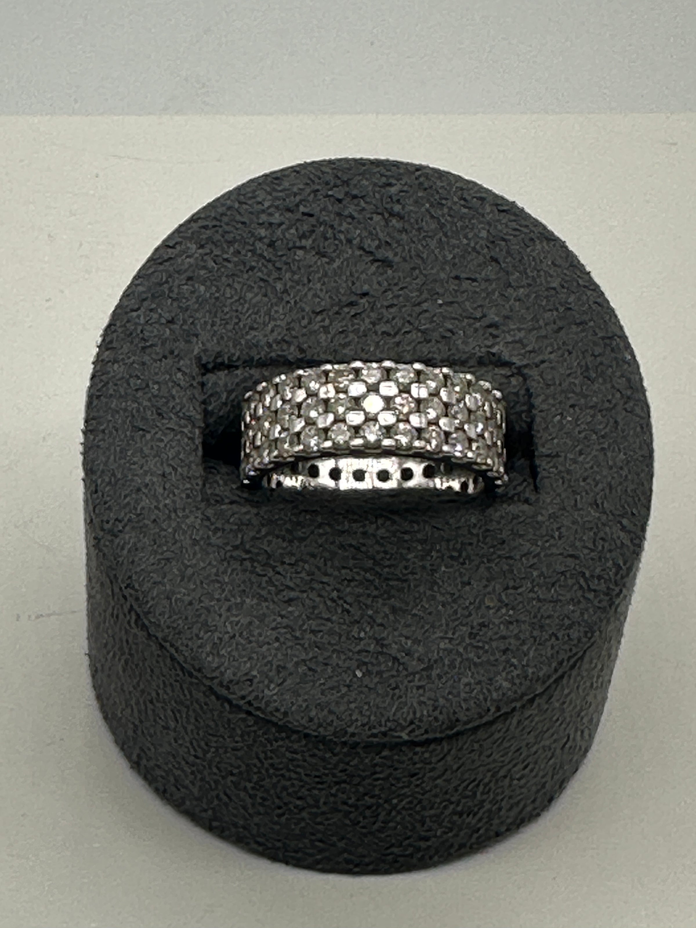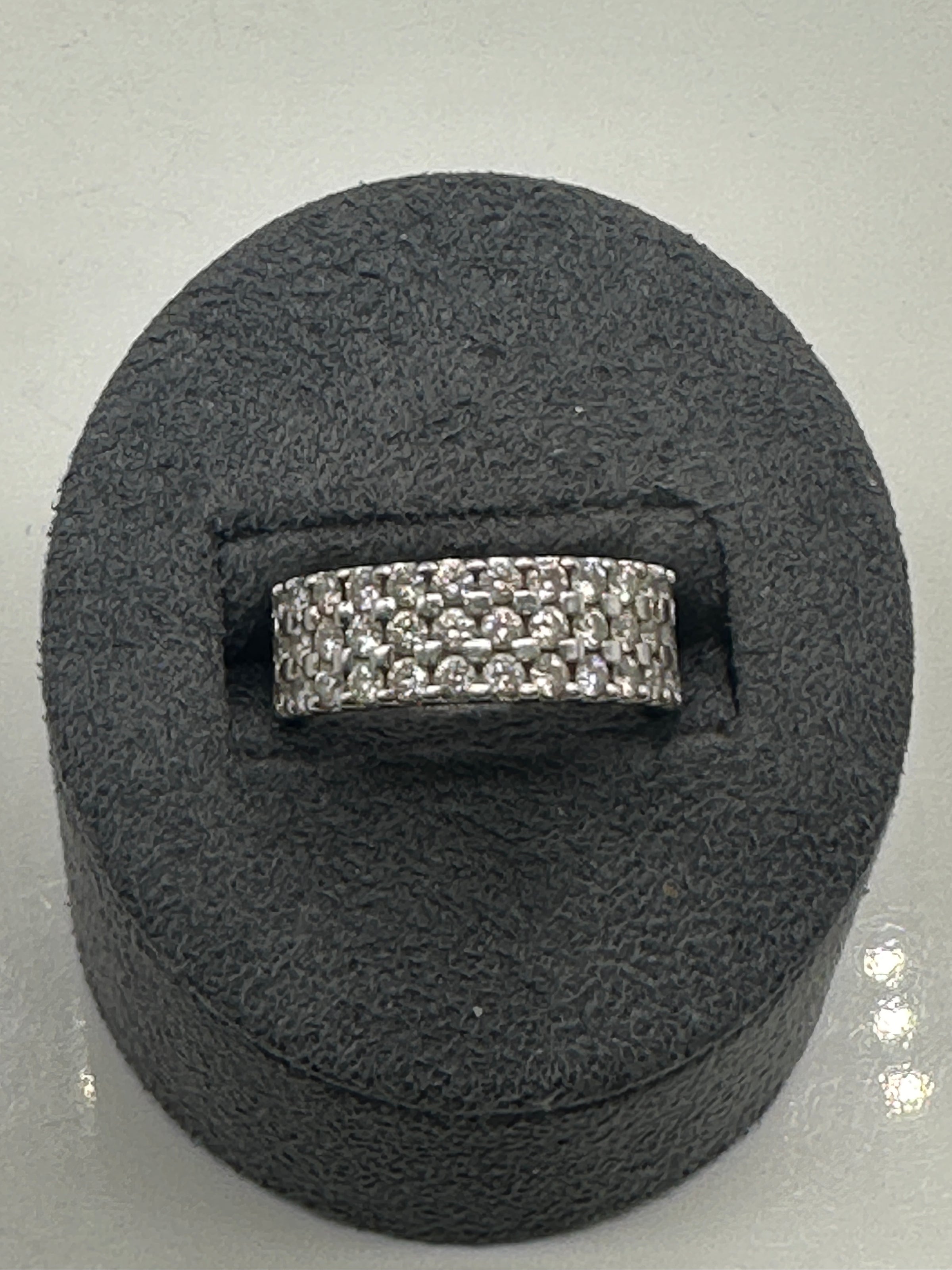 This stunning White Gold three row Diamond Eternity ring is set with brilliant cut diamonds in a shared claw setting, All of this set in stunning 18ct White Gold. This eye-catching Diamond Eternity Ring is a must have for any Diamond Lover.