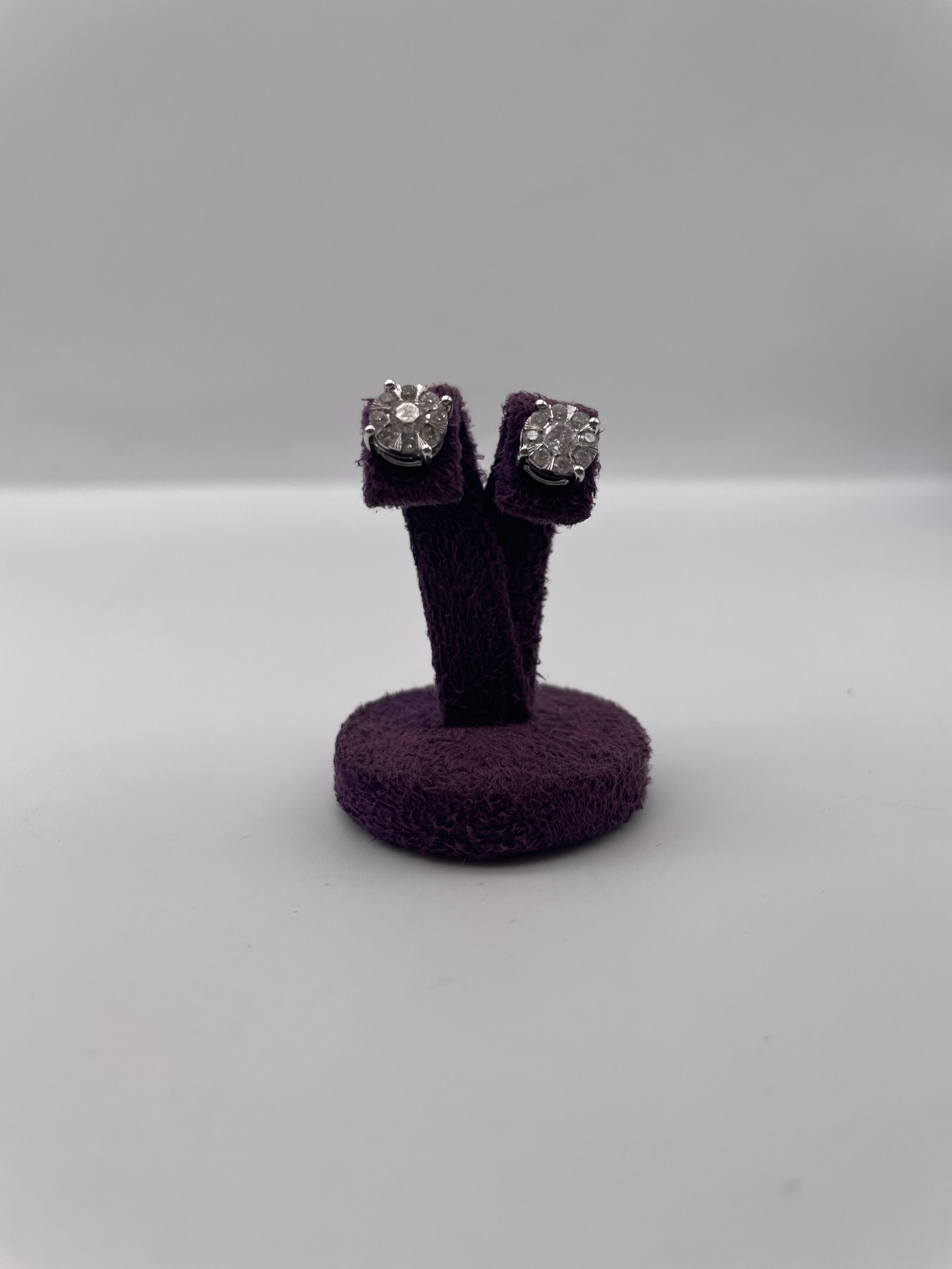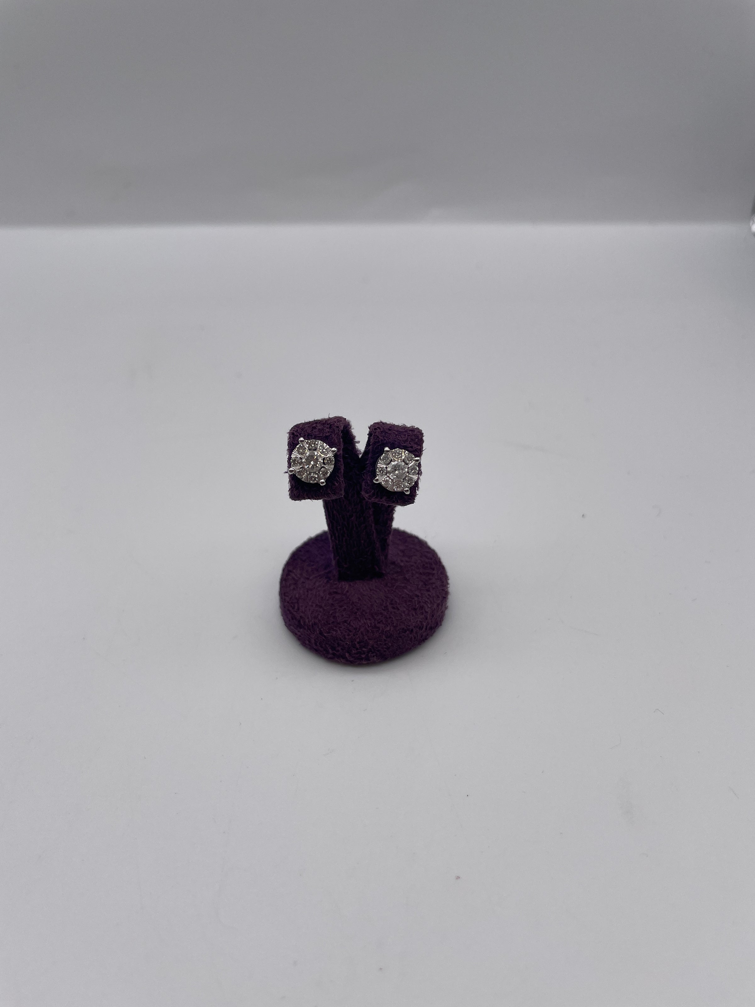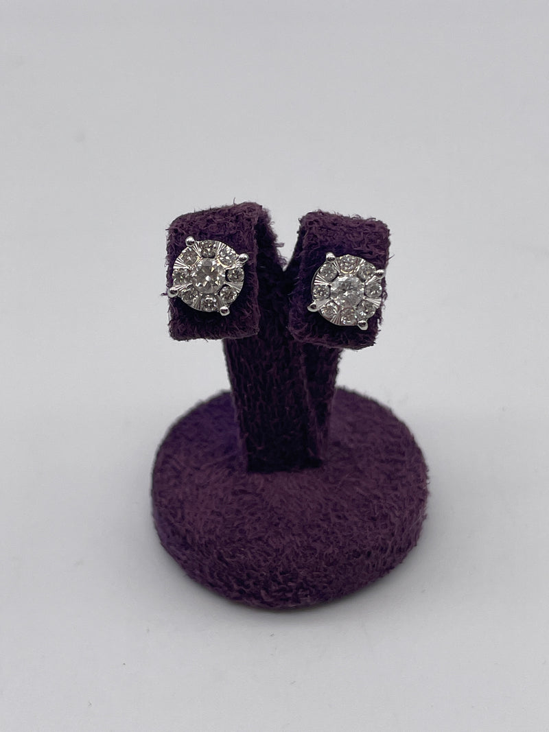 These Beautiful studs consist of One central diamond with a Halo of 8 smaller diamonds totalling 0.50ct set in 9ct White gold