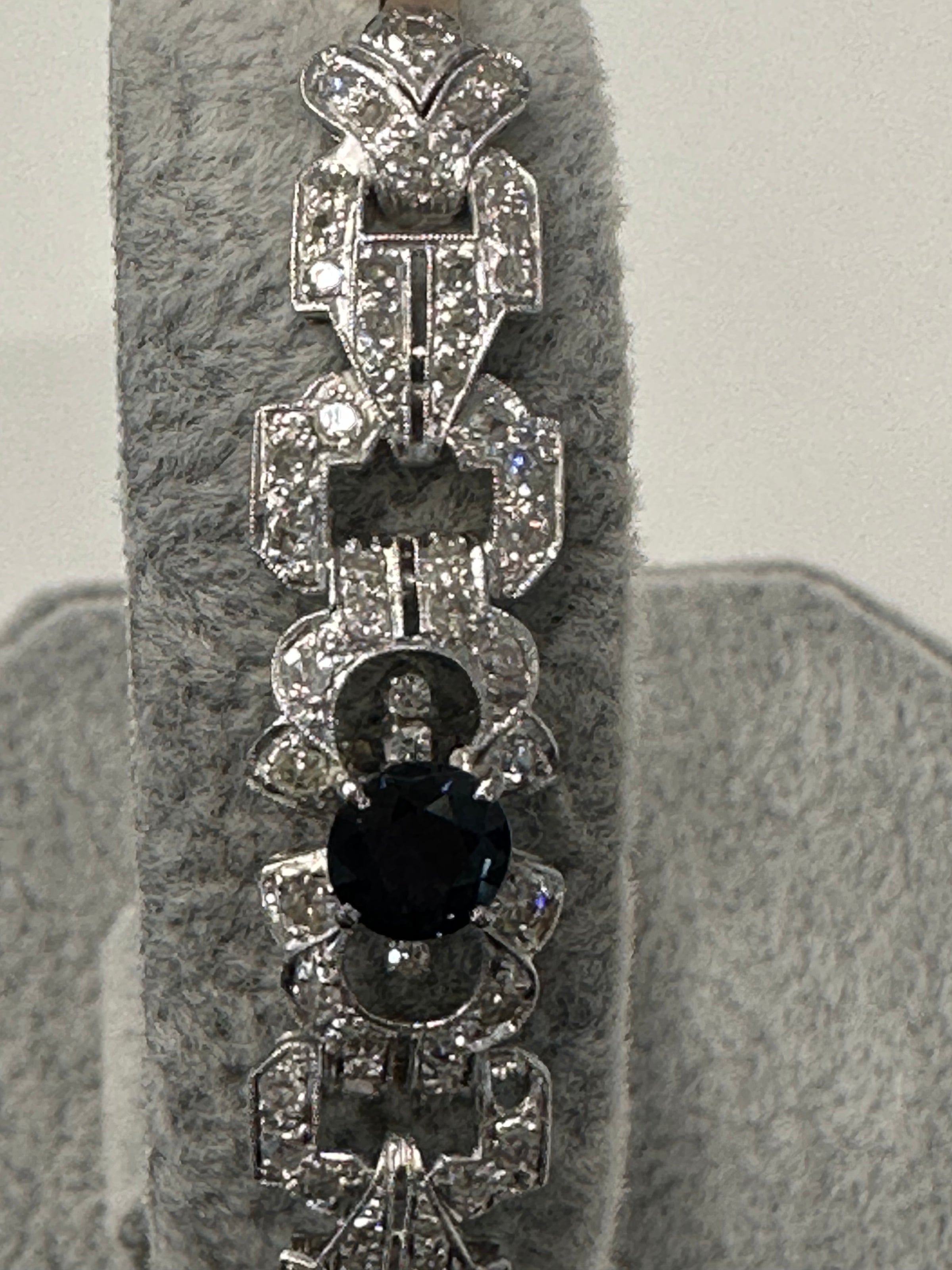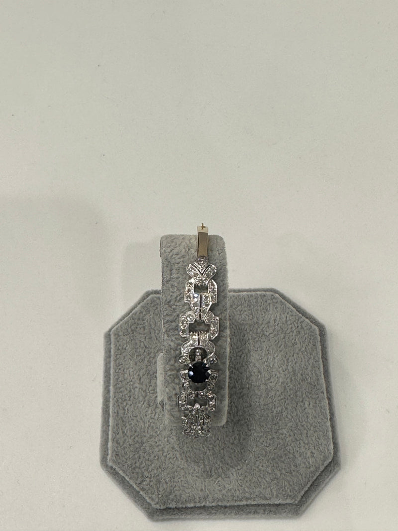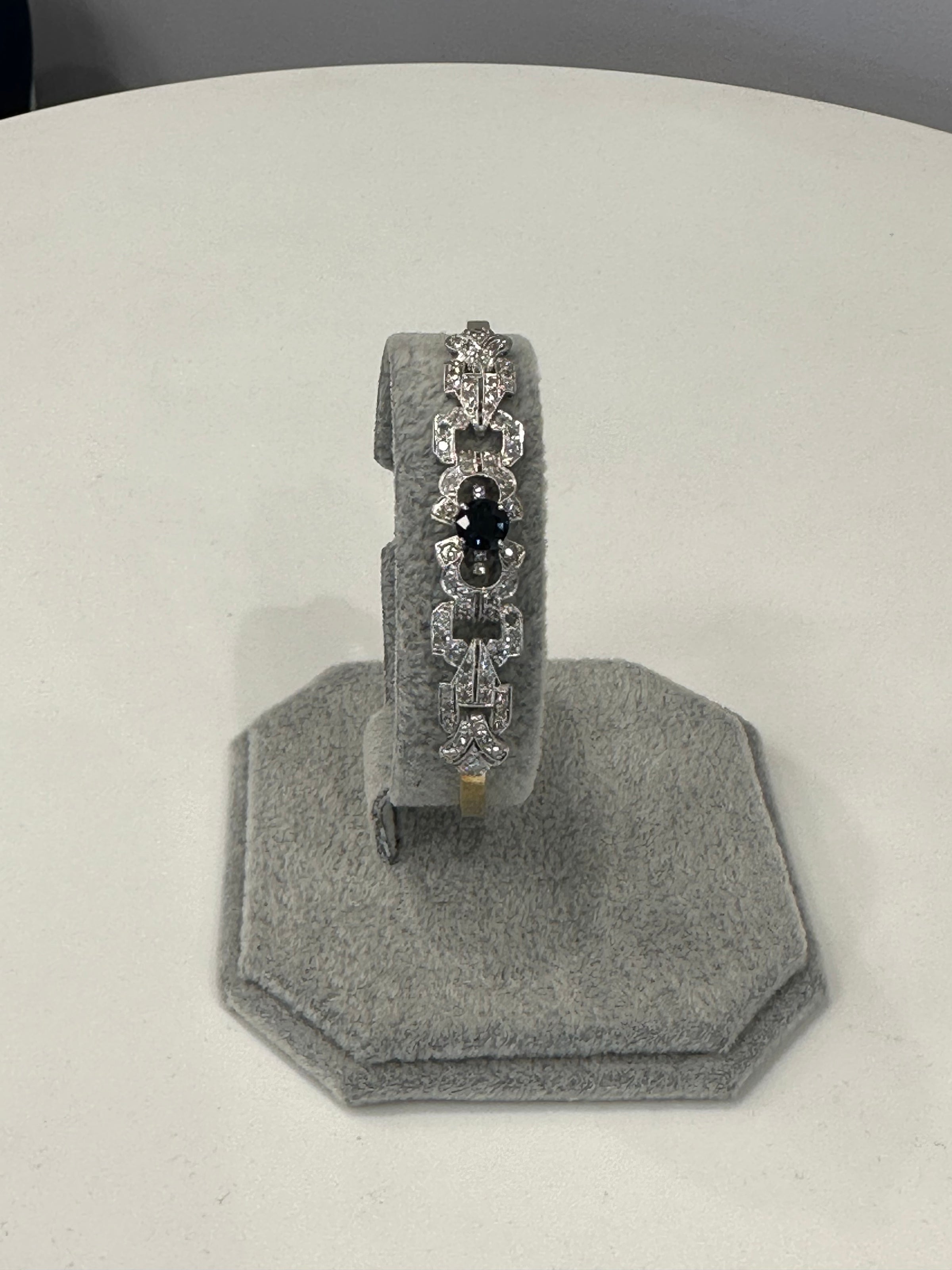 Beautiful Art Deco Style Sapphire And Diamond Bangle Set With Brilliant Cut Sapphire Centre With Small Brilliant Cut Diamonds In A Pavie Setting On A 18ct Yellow Gold And White Gold Mount.