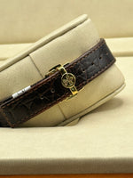 Strap: Paired with a brown leather strap, complementing the watch's classic design and ensuring comfortable wear.