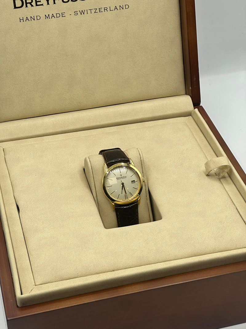 Dreyfuss & Co is a Swiss watchmaker renowned for its commitment to traditional horology and meticulous attention to detail. Each timepiece is handcrafted, reflecting the brand's dedication to quality and timeless design. The use of premium materials and classic aesthetics underscores their pursuit of luxury and elegance.