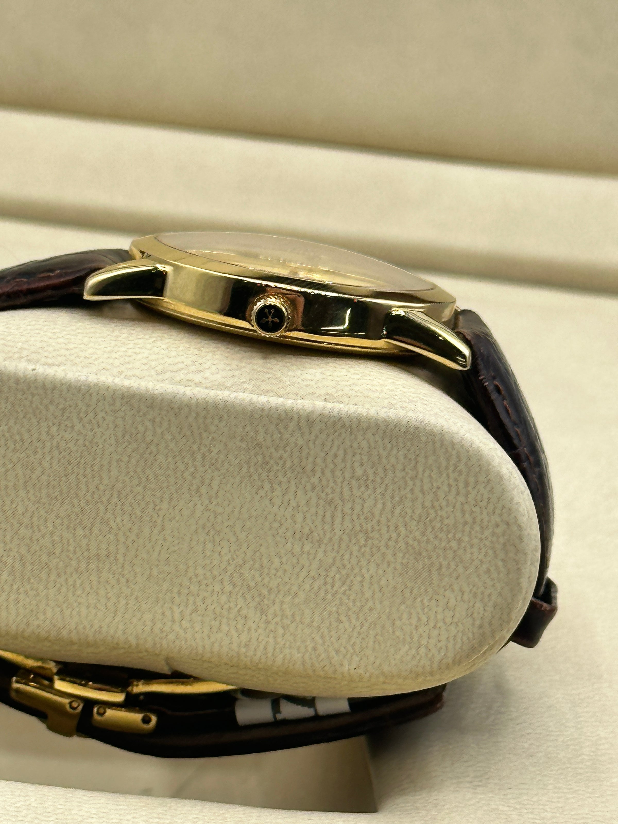 Case: Crafted from 18kt yellow gold, the case measures 35mm in diameter, offering a classic and refined presence on the wrist.