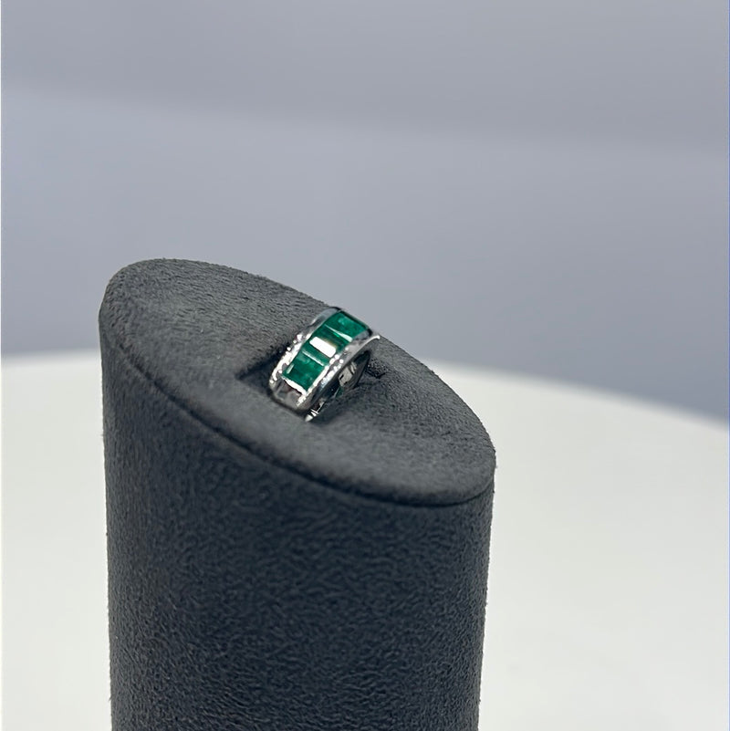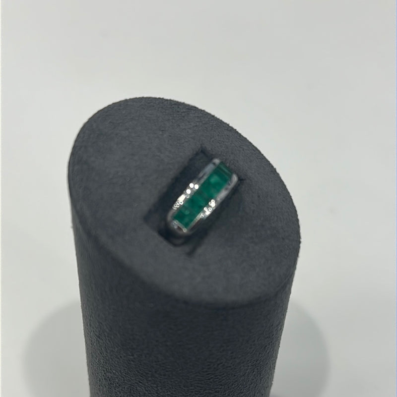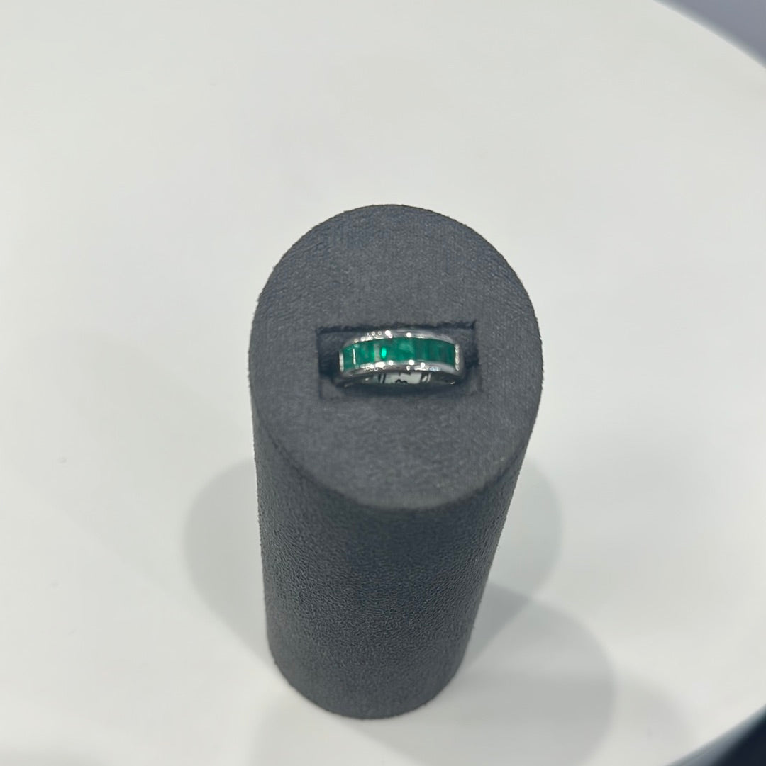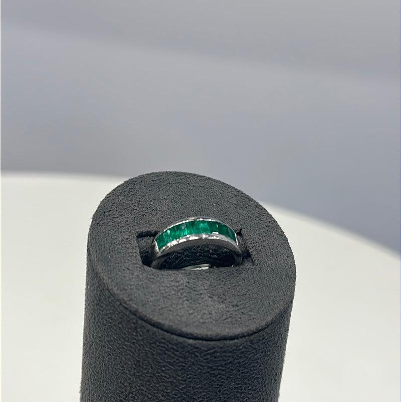18ct White Gold Emerald Eternity Ring Set With Baguette Cut Emeralds In A Channel Setting on A Thick Band, Finger Size M