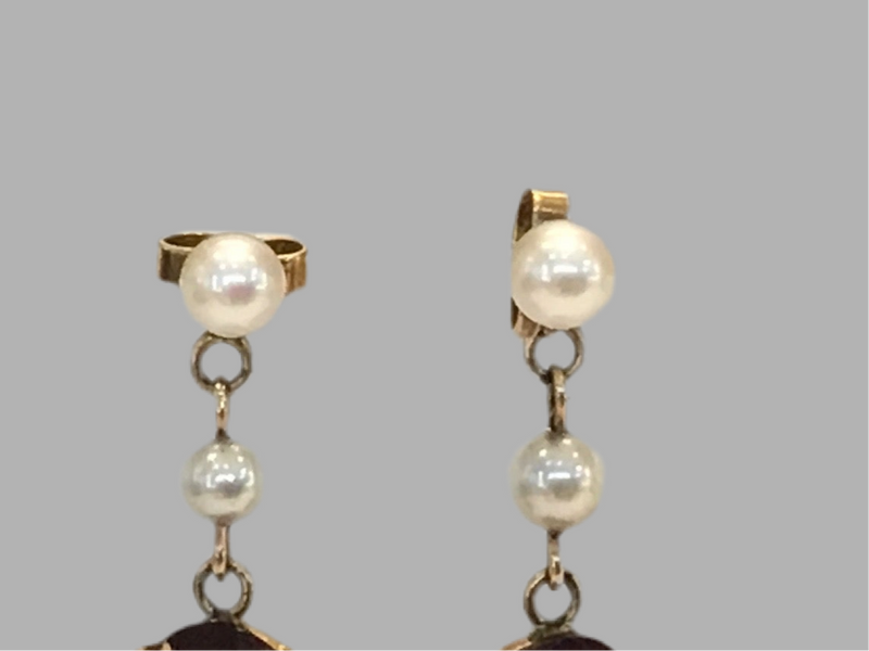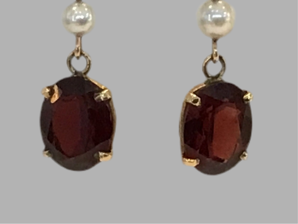 9ct Yellow Gold Garnet And Pearl Earrings