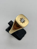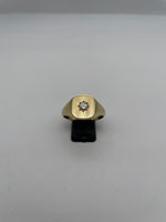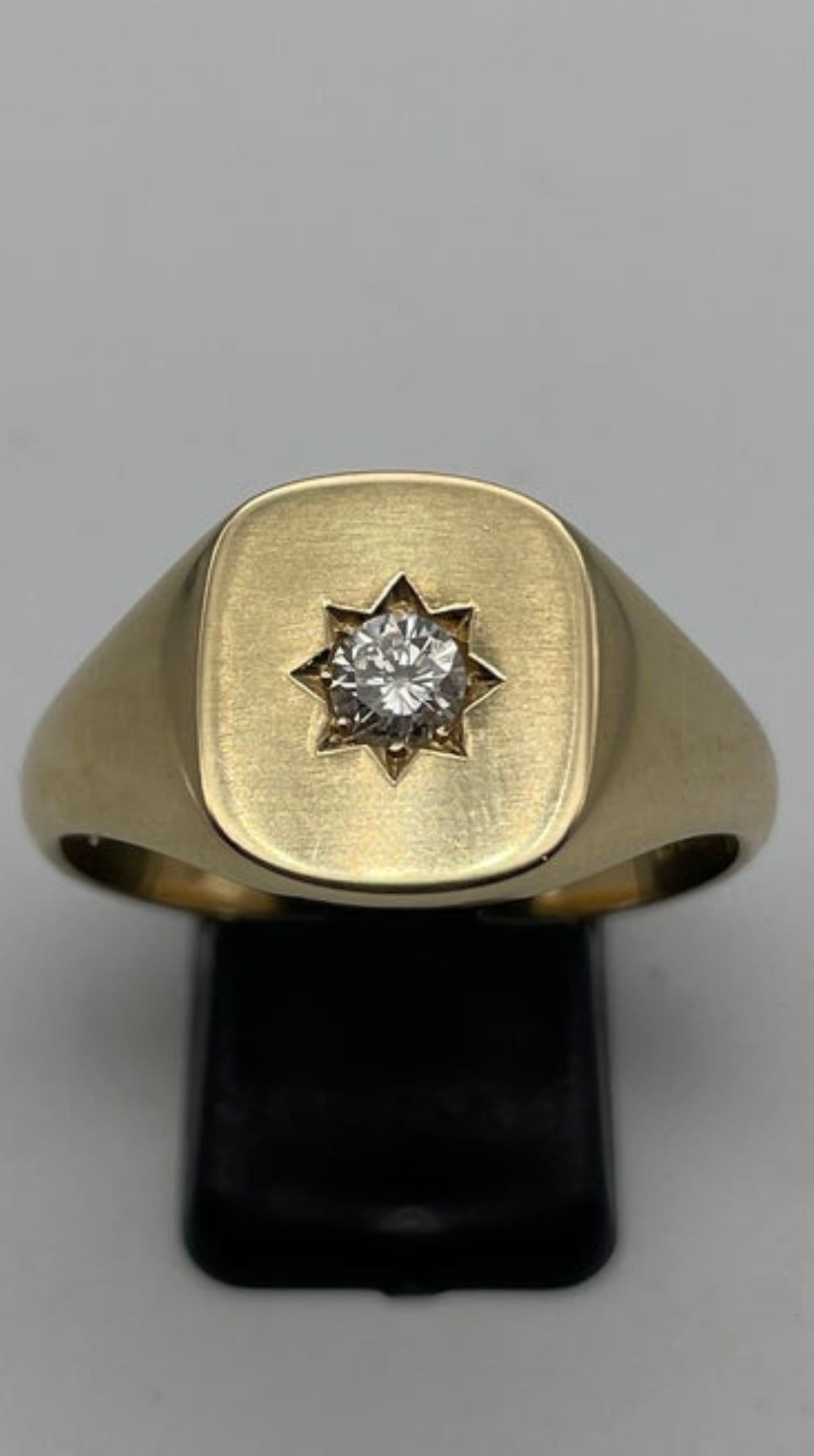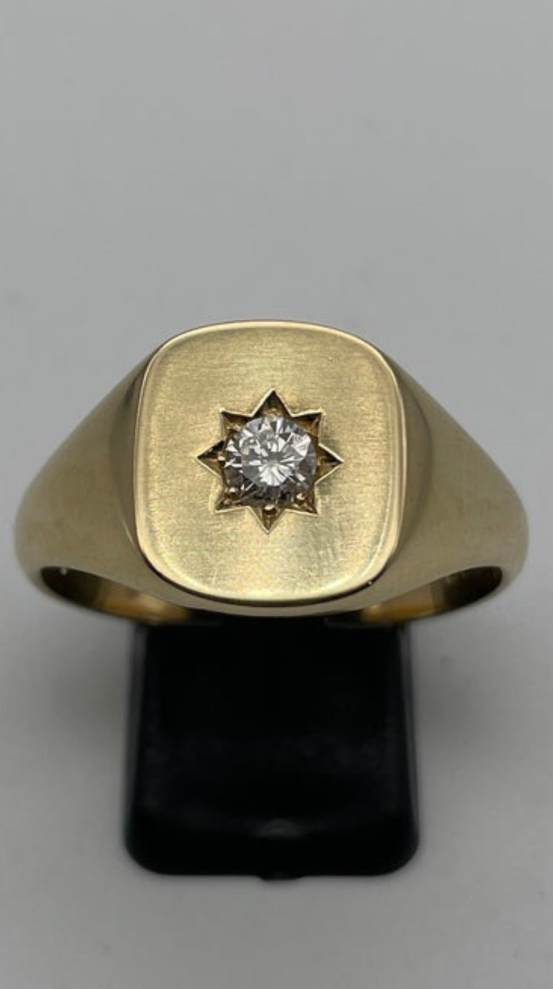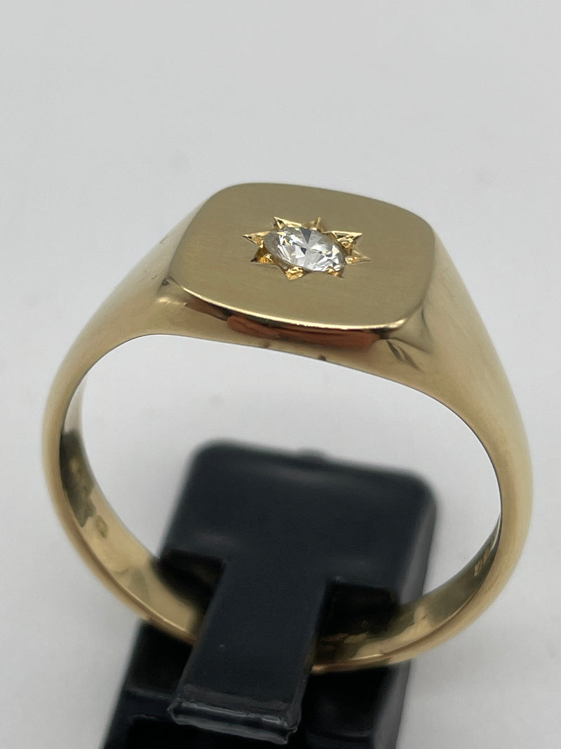 A Perfect 18ct yellow Gold Gents Signet Ring set with a brilliant cut diamond in a gypsy style setting.
