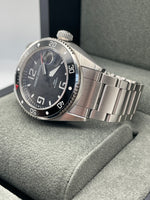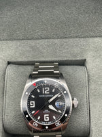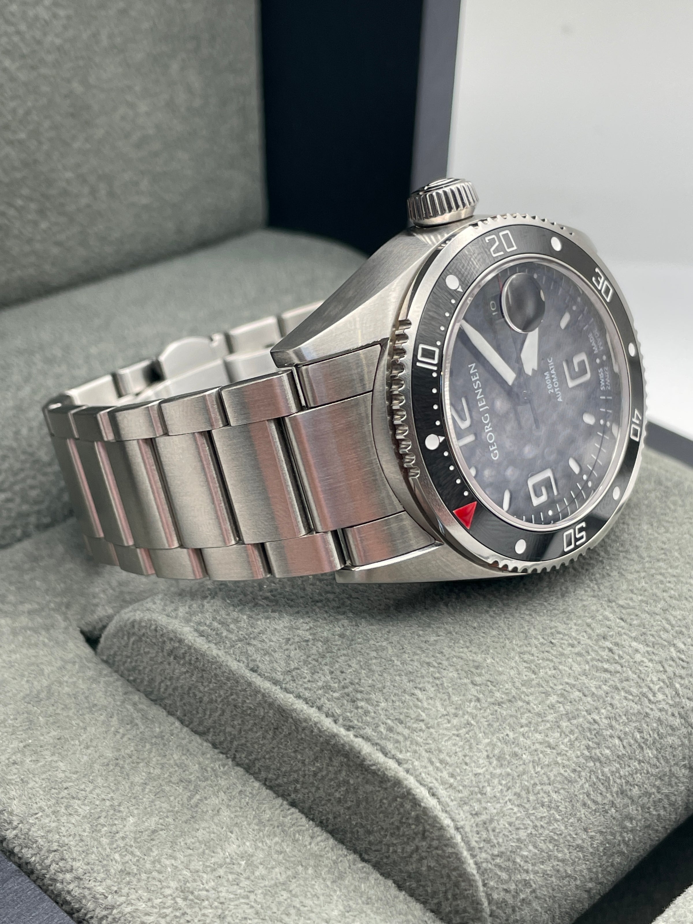 Some of the key features of this Swiss made Delta Dive GMT are, Swiss made automatic movement ETA 2893-2 with Georg Jensen rotor, 316L Stainless steel case, 316L Stainless steel bracelet with deploying security buckle, Ceramic bezel insert and unidirectional rotating bezel to measure dive times, 42mm case width (excluding crown) and 13.5mm deep. Lug width 22mm, screwdown crown, sapphire crystal, black sandwich dial – galvanic black top layer with Super-Luminova under layer, Date window at 3 O’Clock position with magnifying cyclops lens, quick date change feature, 20 ATM water resistance and a screwdown case back.