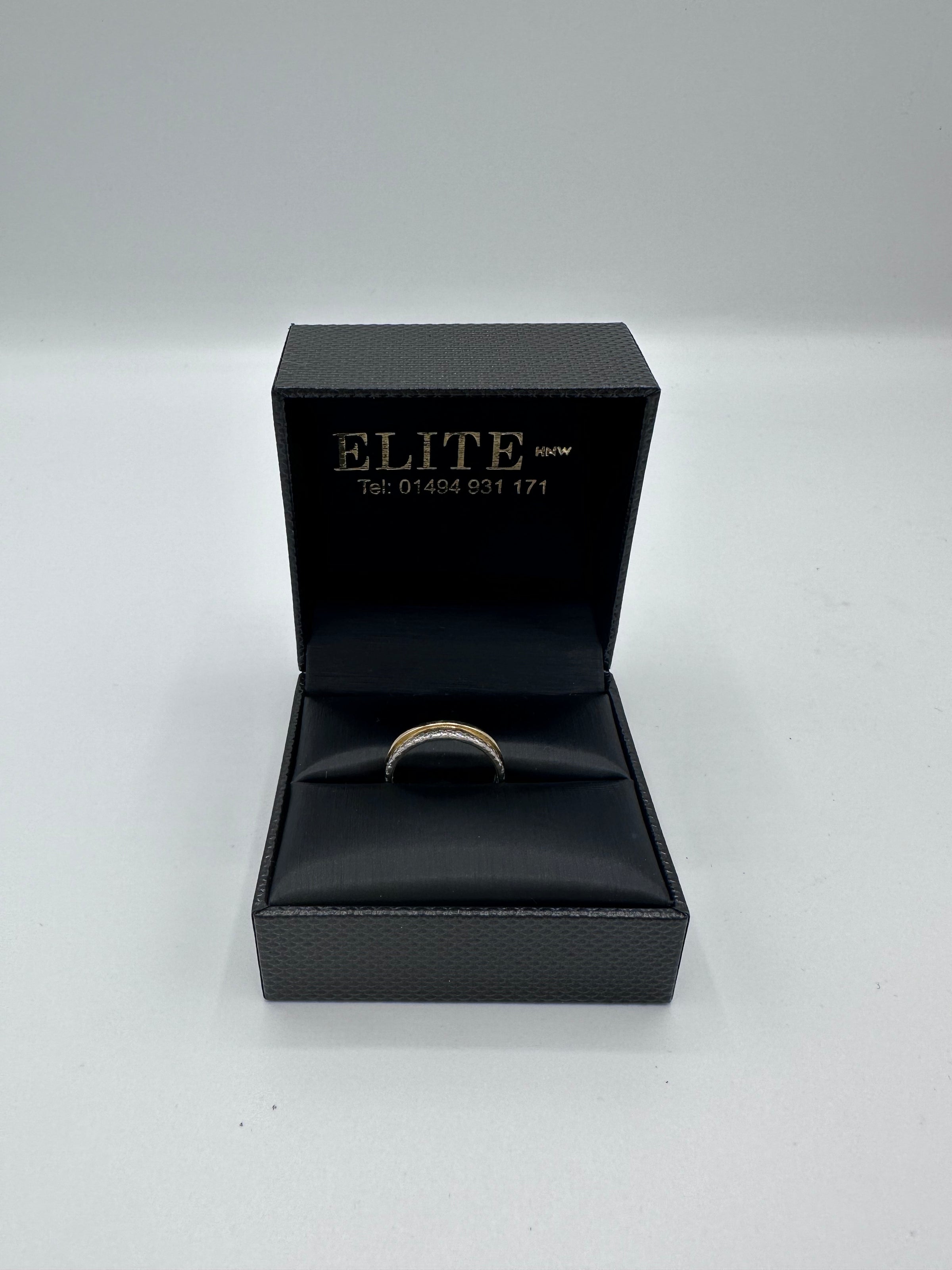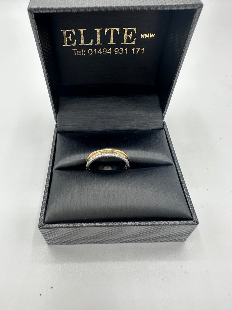 Stunning 18ct yellow gold diamond eternity ring set with a row of small brilliant cut diamonds in a claw setting on one side of a wide band.