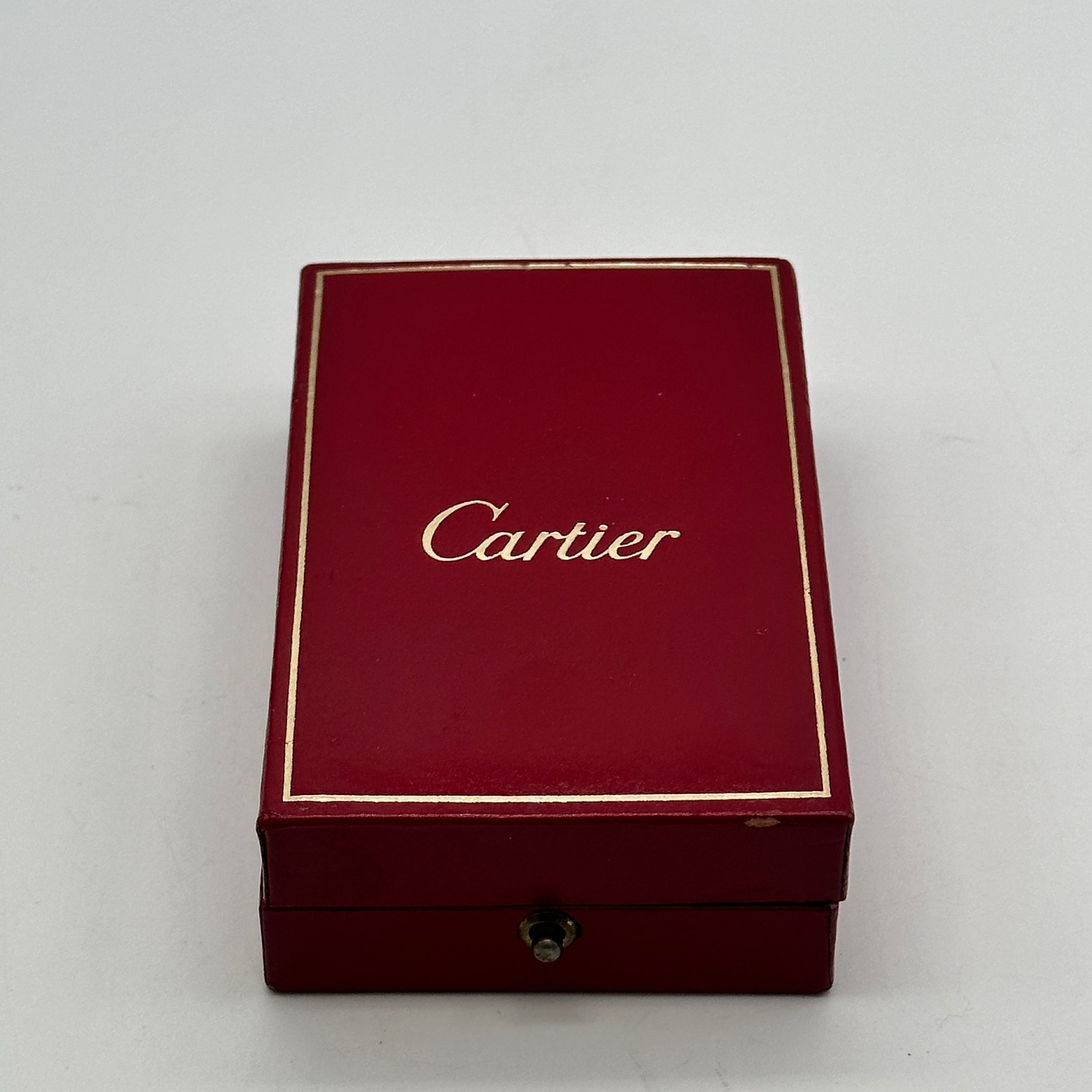This is a pre loved vintage Cartier lighter with gold plate featuring a vertical line pattern engraved surface pattern.