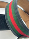 This Gucci men's belt is meticulously crafted from premium natural leather, complemented by the brand's signature green and red Web stripe fabric on the outer side, reflecting Gucci's rich equestrian heritage.