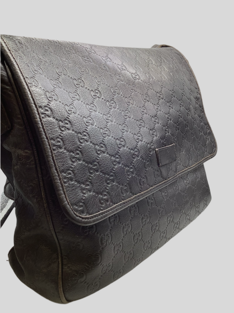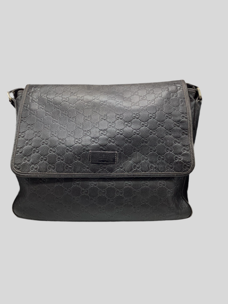 Materials & Design: The Gucci Guccissima Leather Crossbody Laptop Bag is meticulously crafted from premium Guccissima leather, showcasing the brand's iconic interlocking GG pattern embossed throughout. This luxurious material not only offers a sophisticated aesthetic but also ensures durability. The bag's sleek design is complemented by high-quality metal hardware, often in a silver or gold-tone finish, adding to its refined appearance.