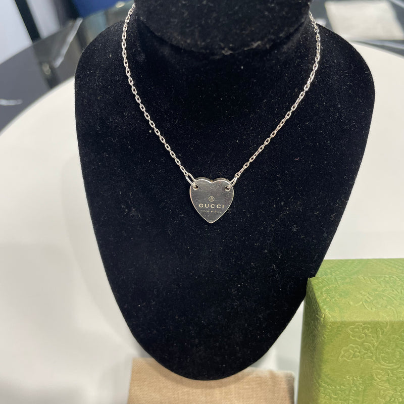 This timeless design, this bracelet features a heart charm engraved with the Gucci trademark. Crafted from 925 sterling silver, the jewelry piece reflects the House's romantic narrative.
