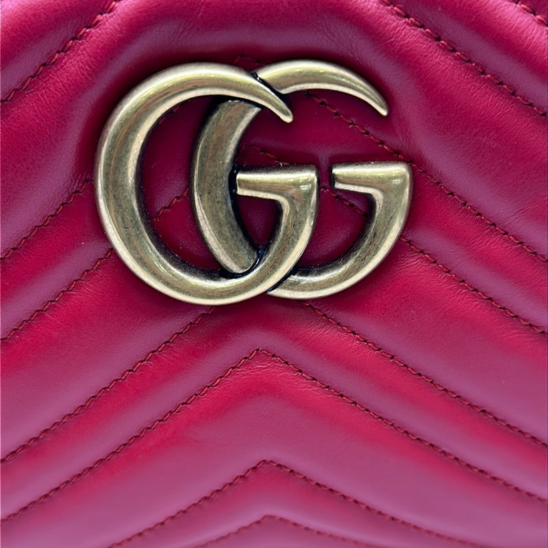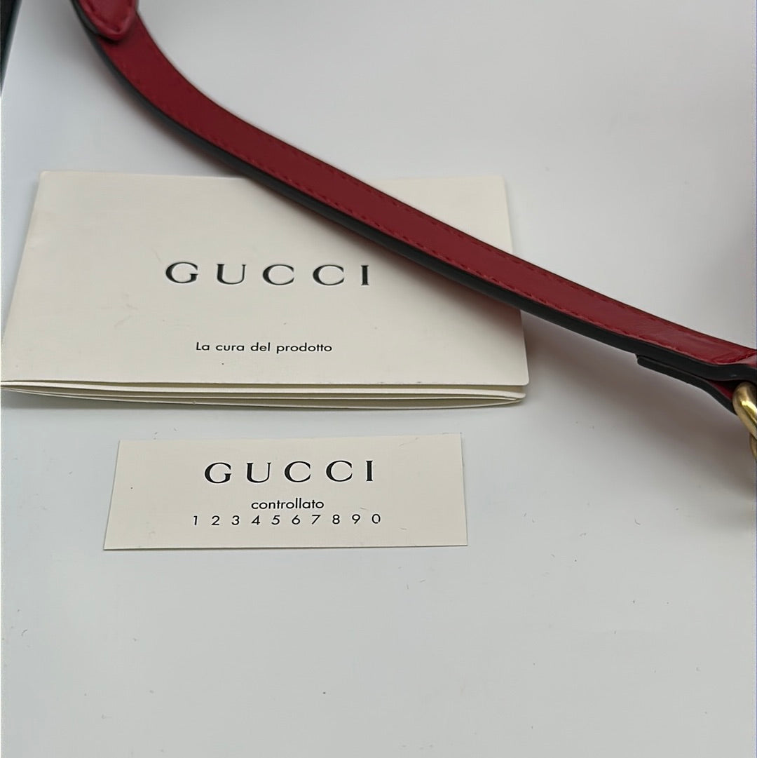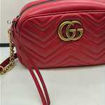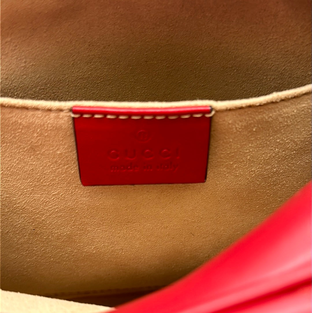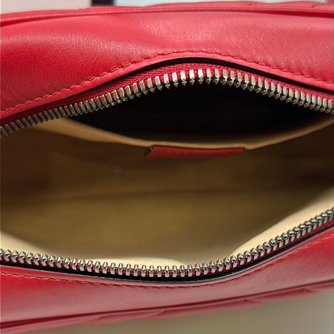 Ladies Gucci Marmont Red Leather Crossbody Bag With Gold Hardwear, Original Box And Dust Bag, This Bag Is In Very Good Condition With Little Or No Signs Of Wear.
