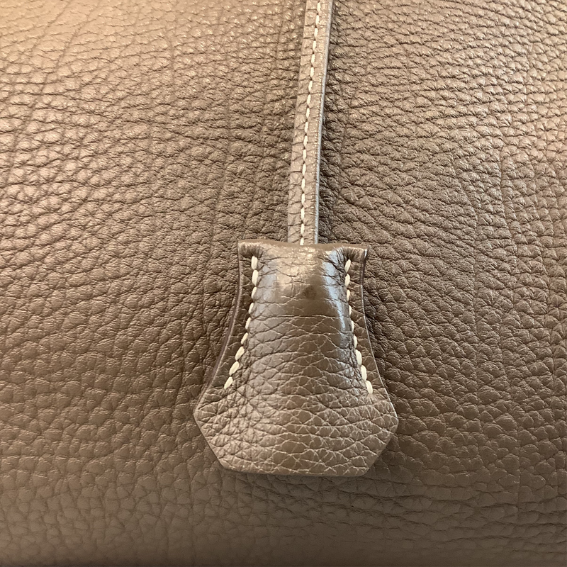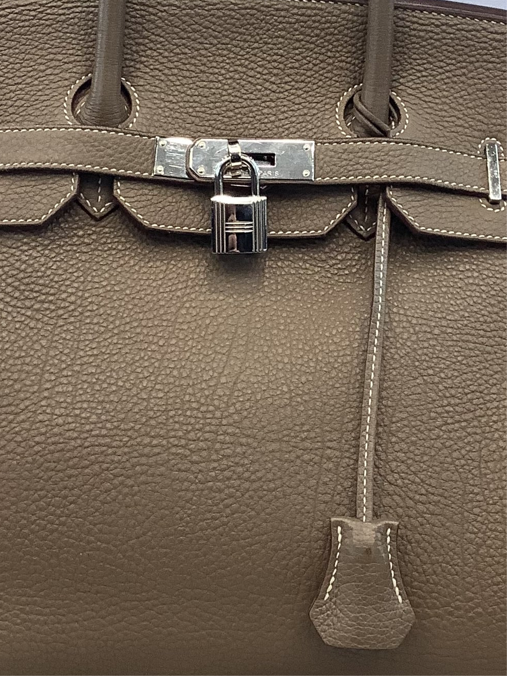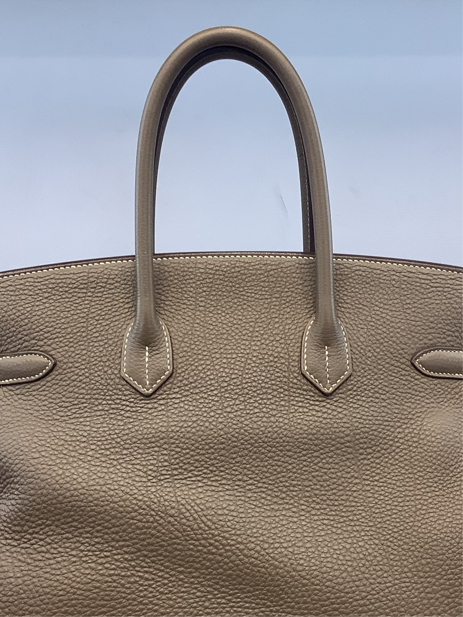 - The Birkin 35 Etoupe is typically crafted from Togo leather, which is one of the most popular choices for Birkin bags. Togo leather is soft, grainy, and durable, with a slight texture that adds character and ensures the bag holds its shape.