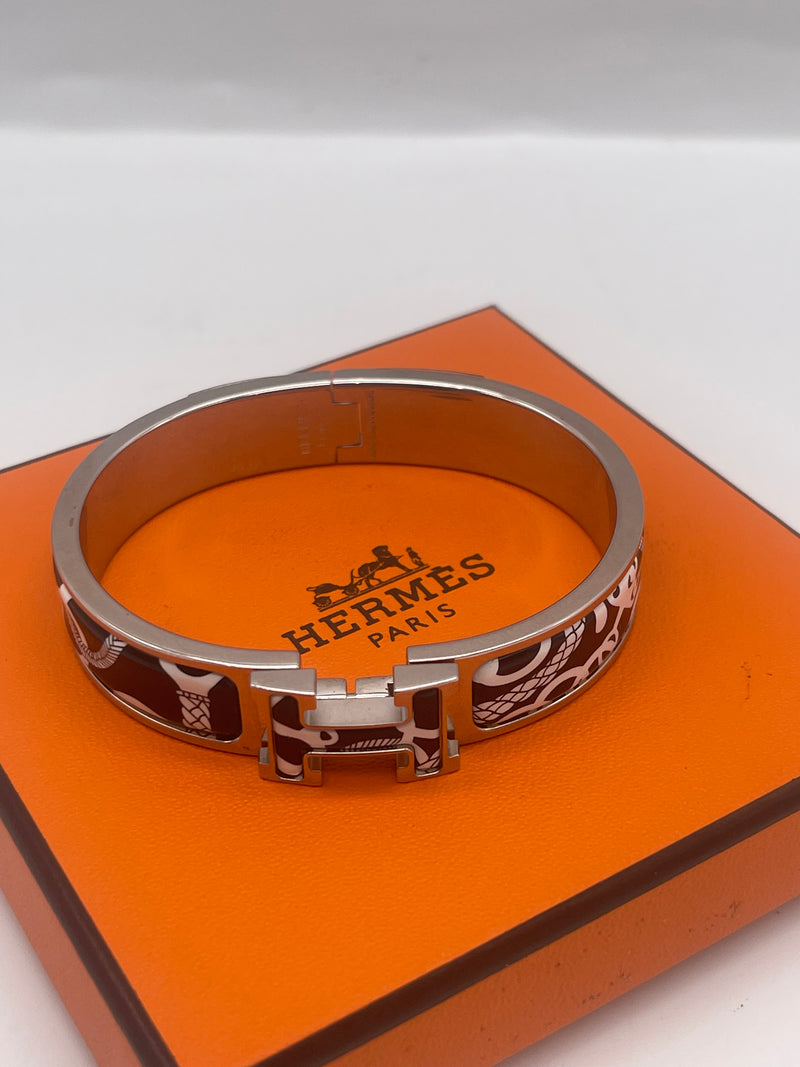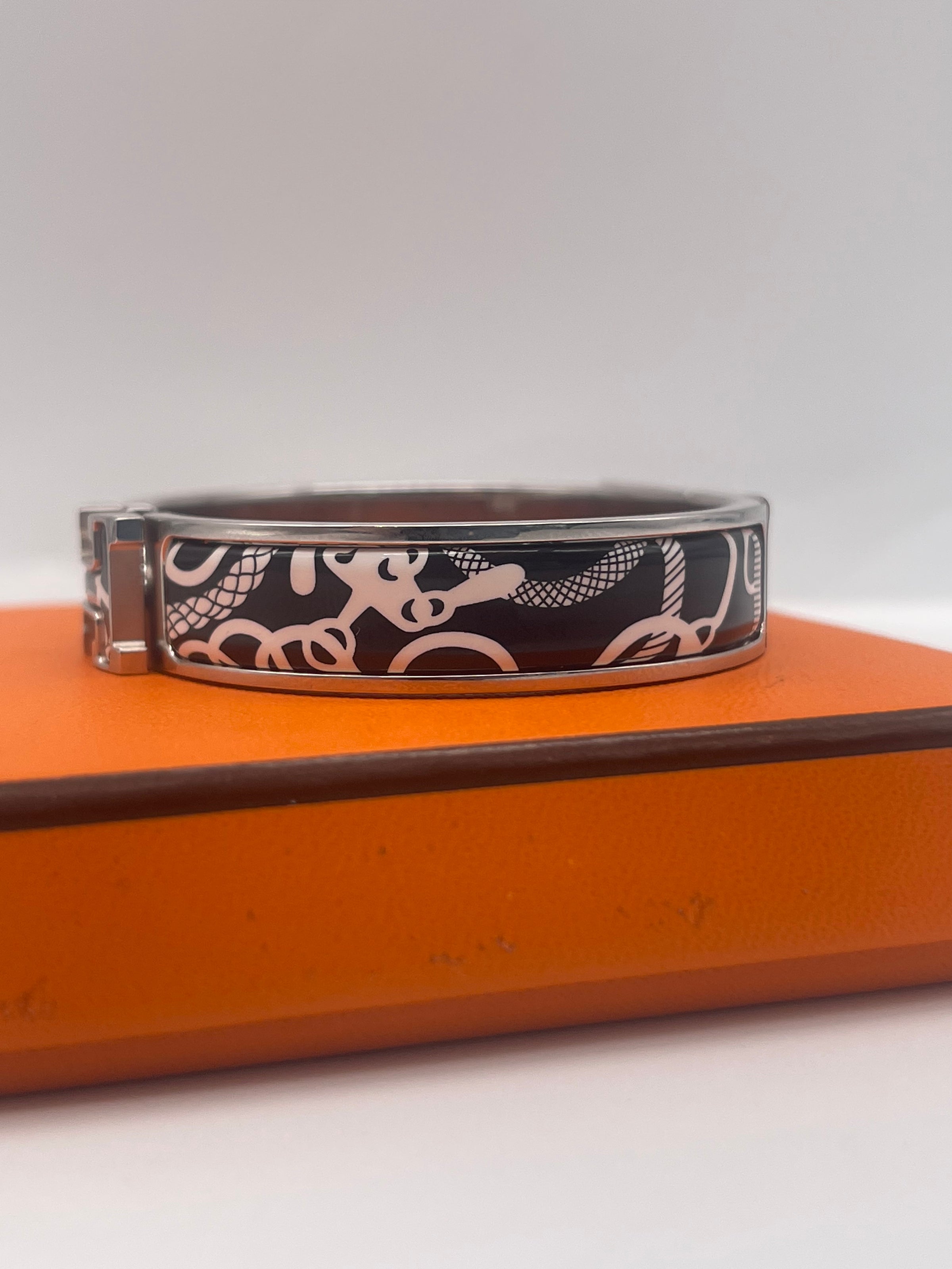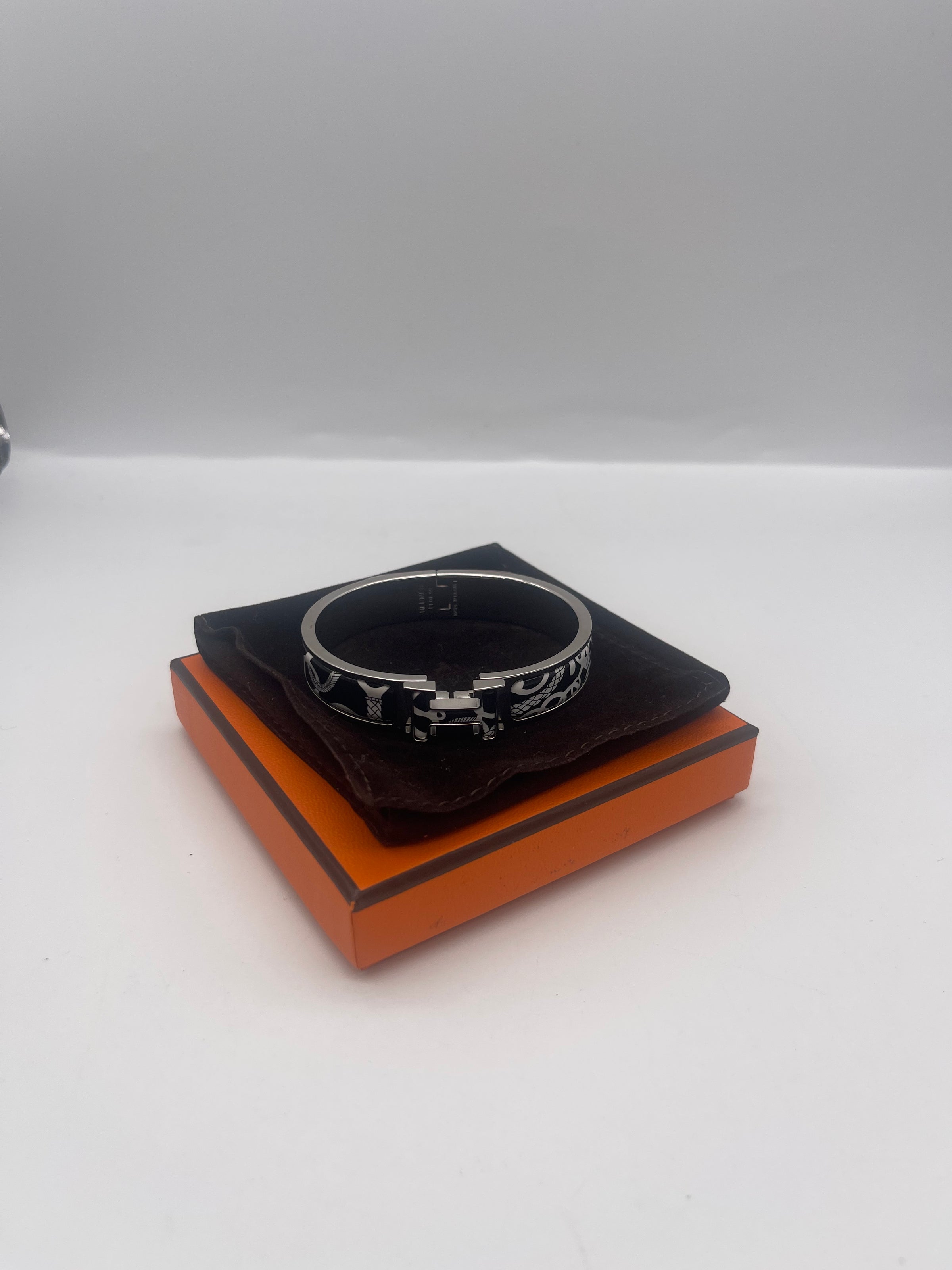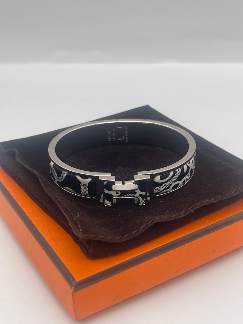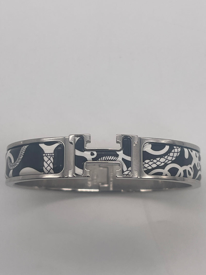 Hermes Narrow Bracelet In Black and White Enamel With Palladium-plated Hardware, Comes With Original Box
