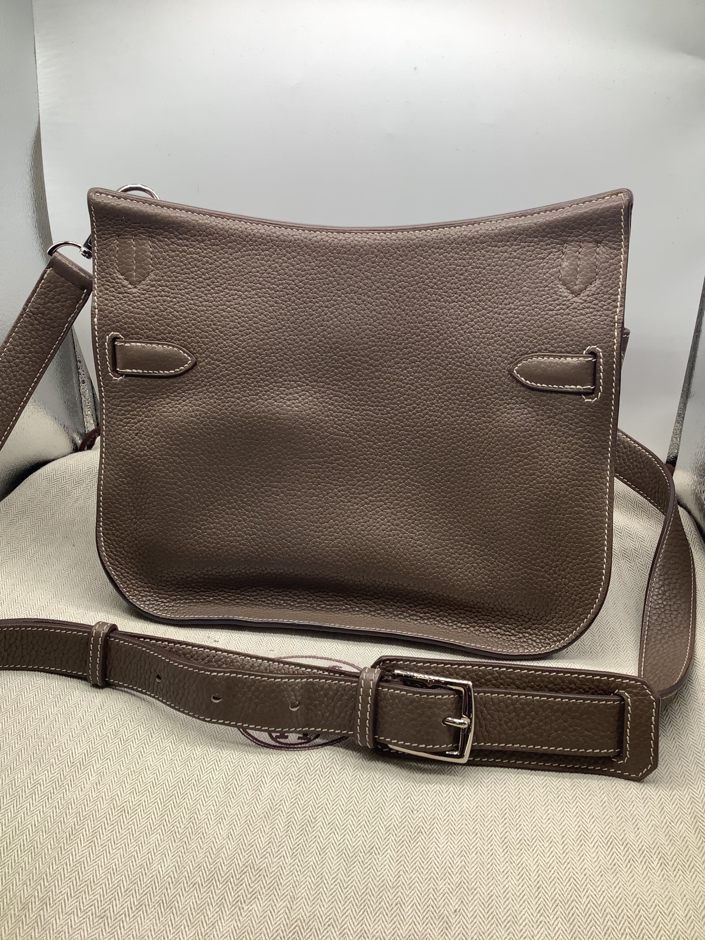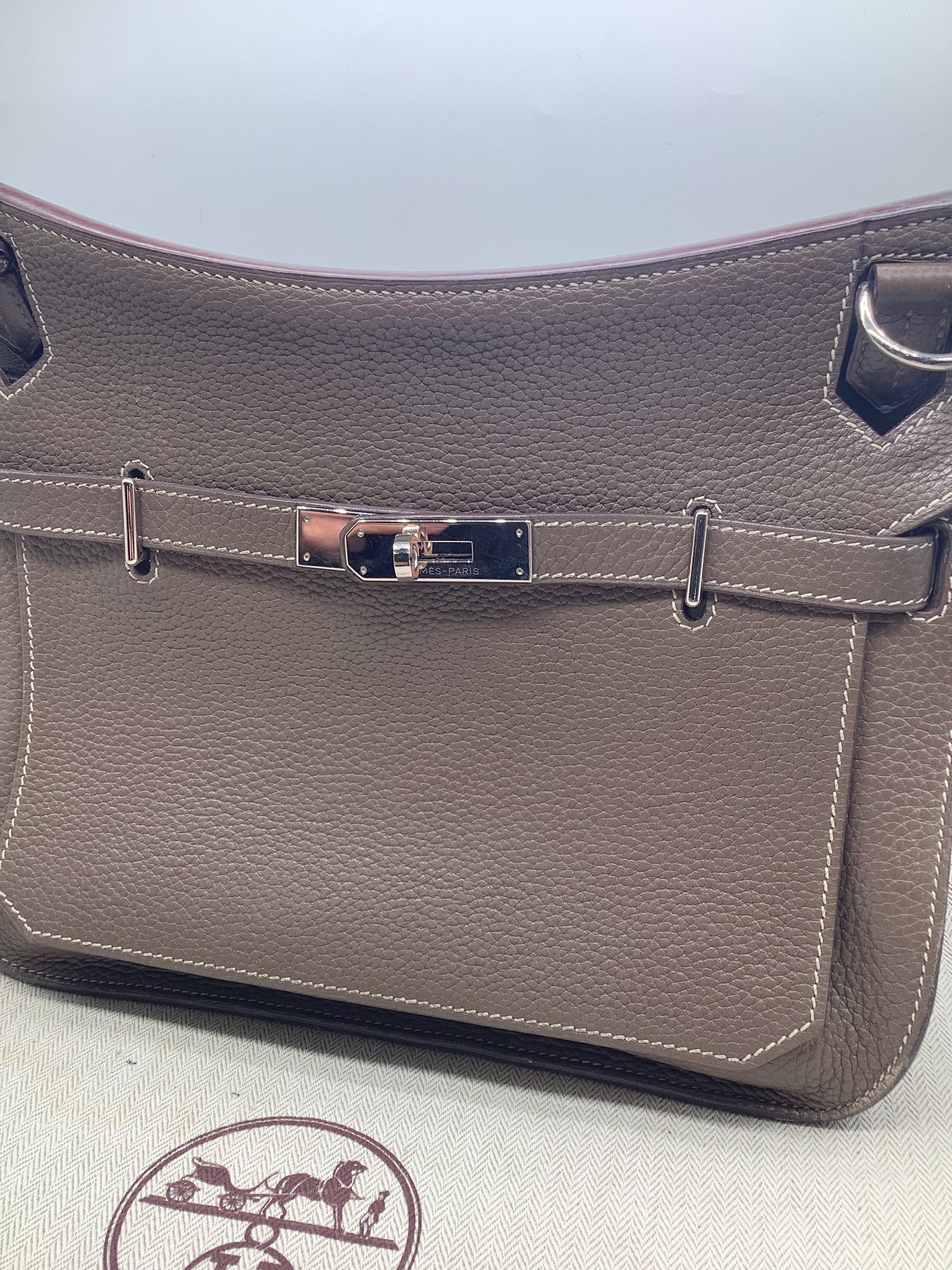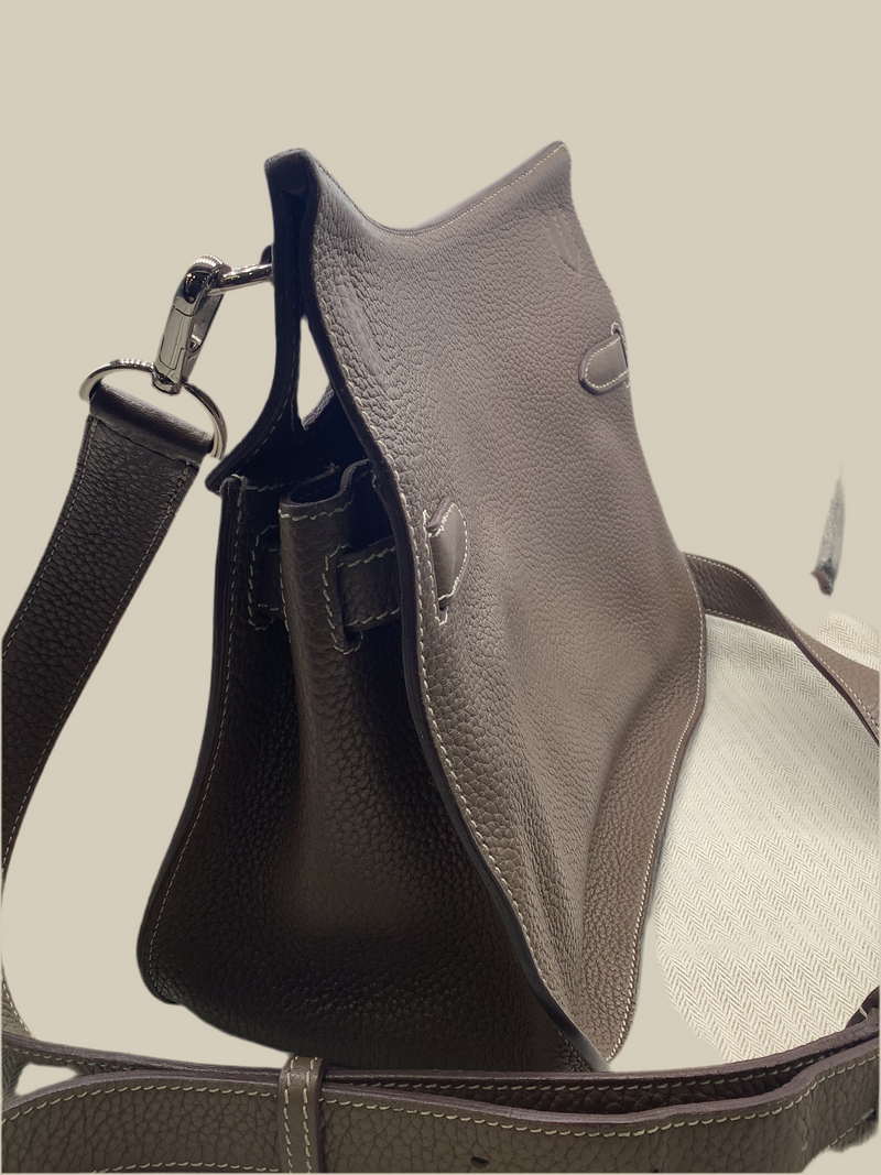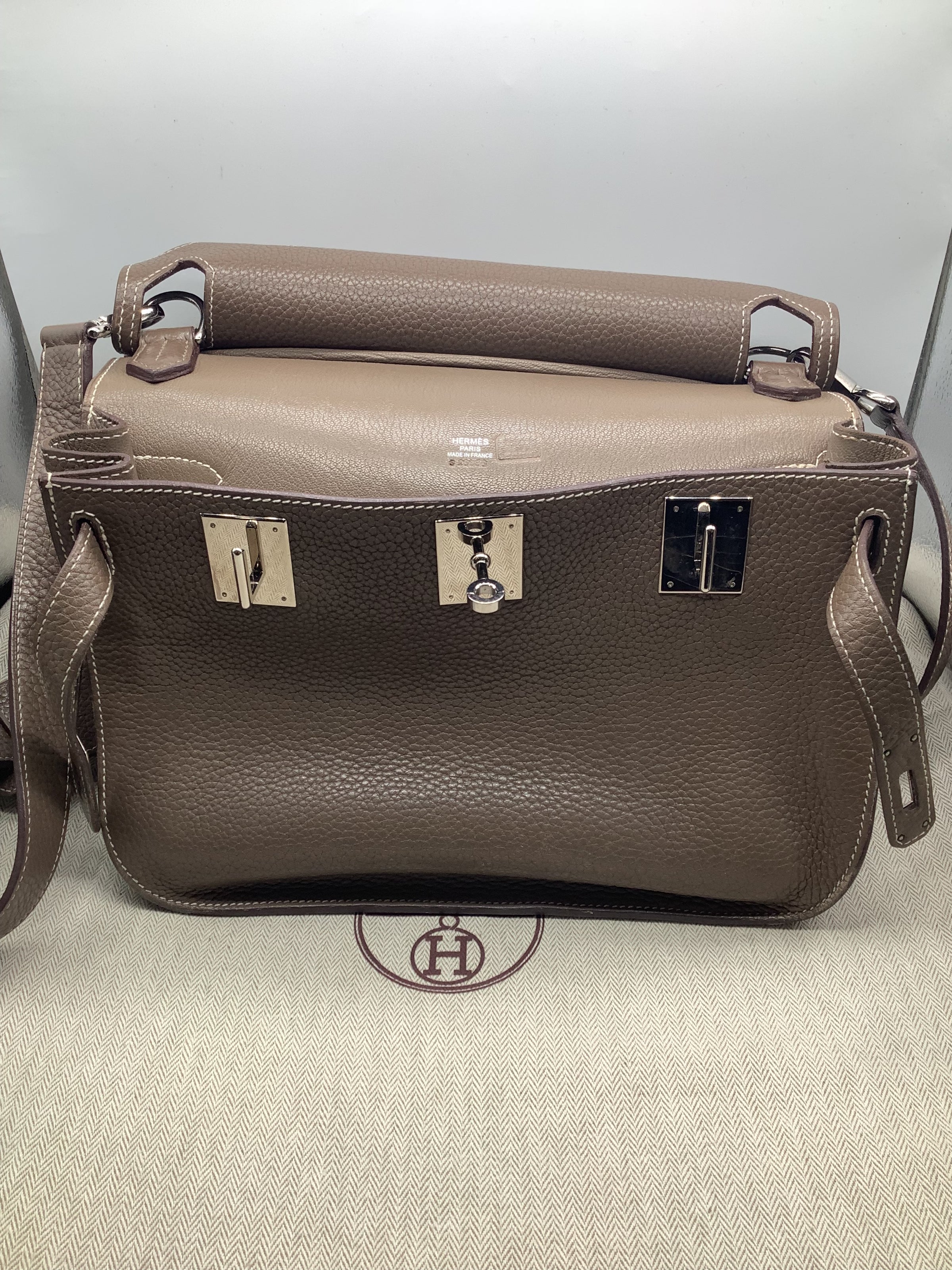 Hermes Jypsiere 28 Bag, In Etoupe taurillon Clemence leather with Palladium Hardware.