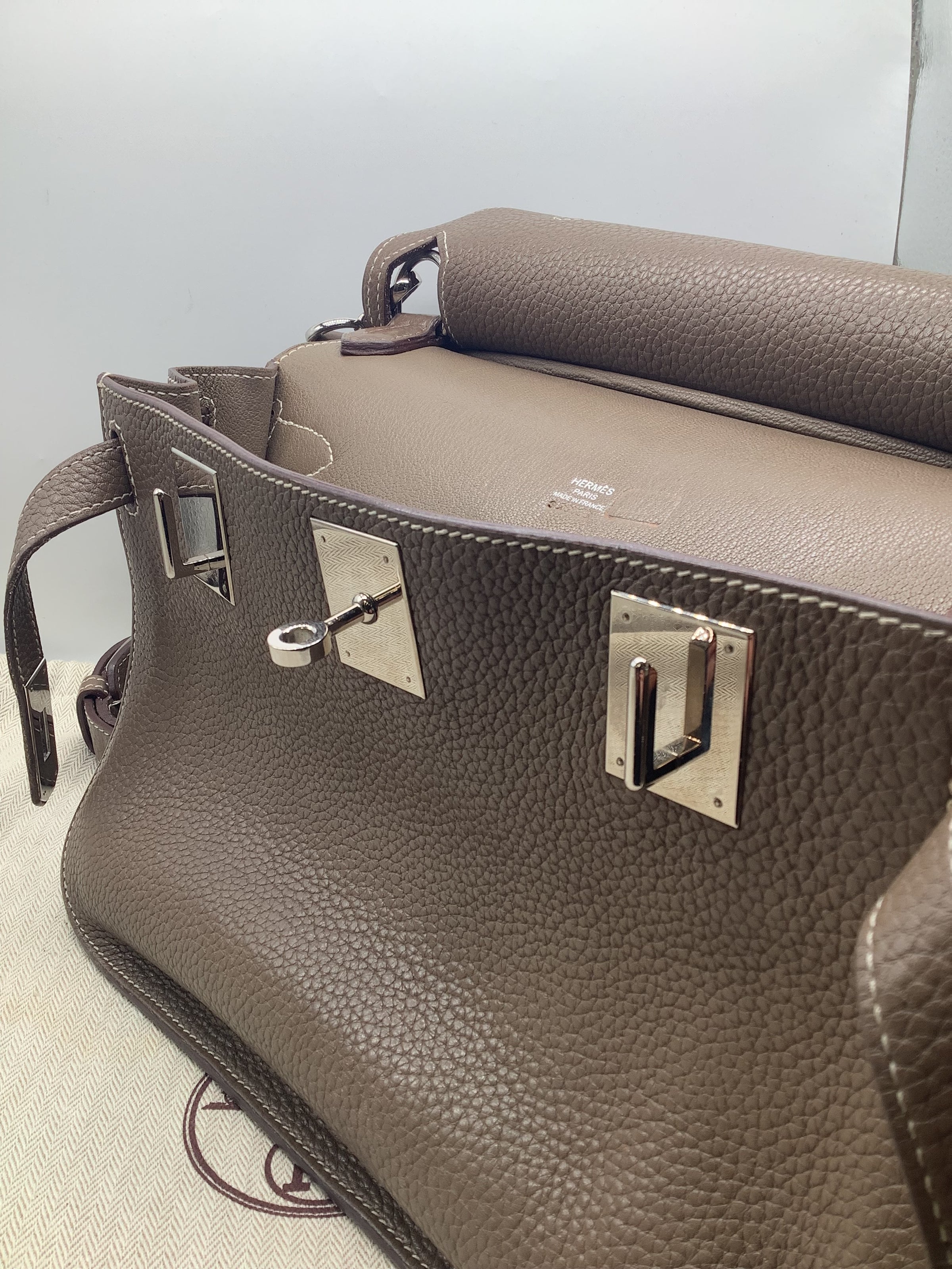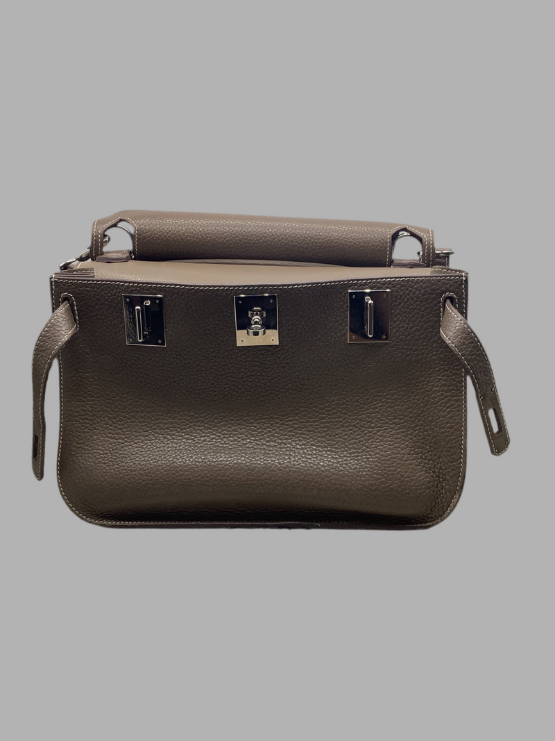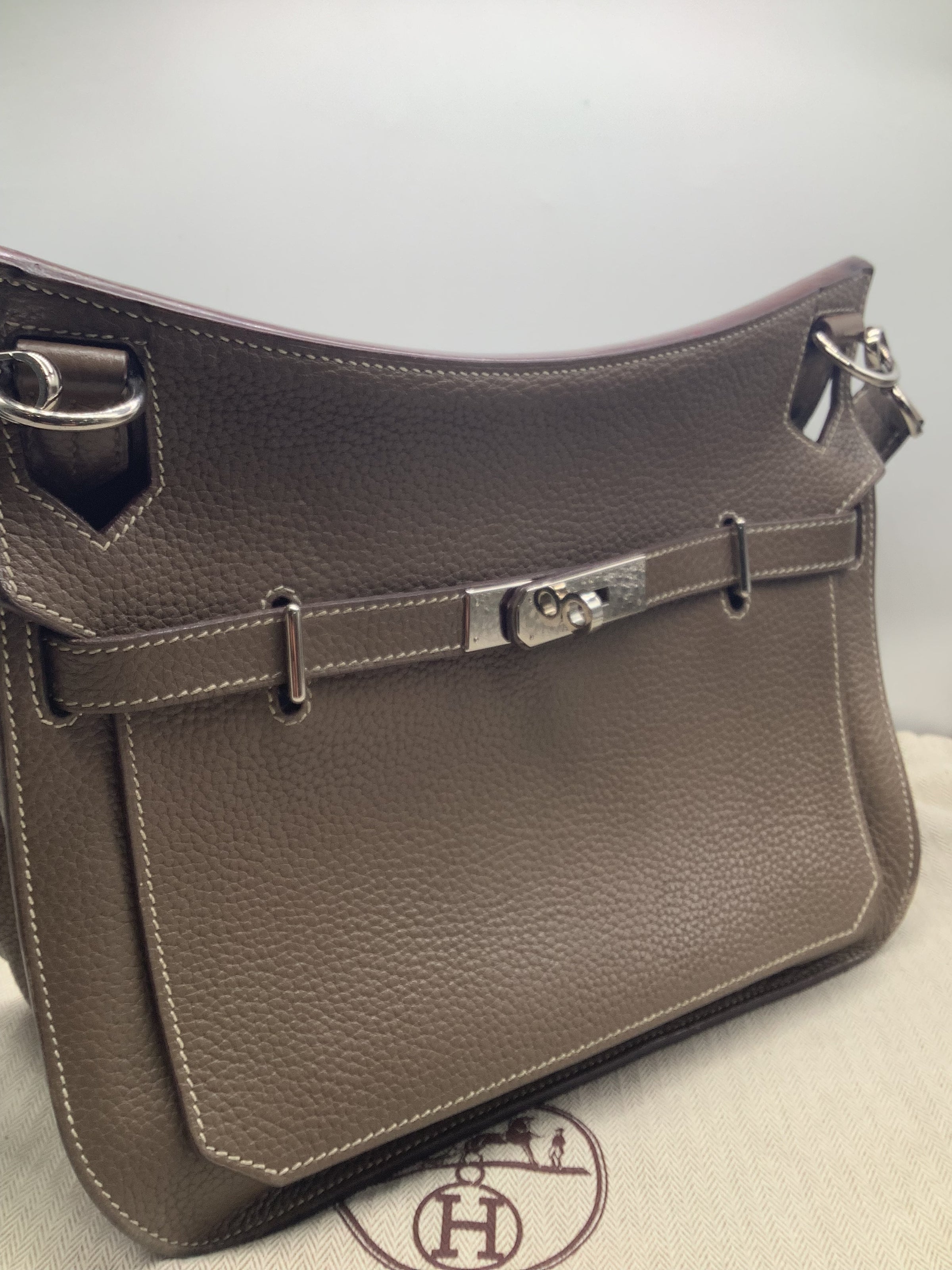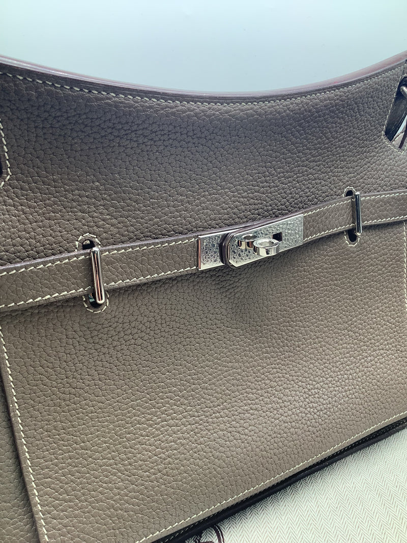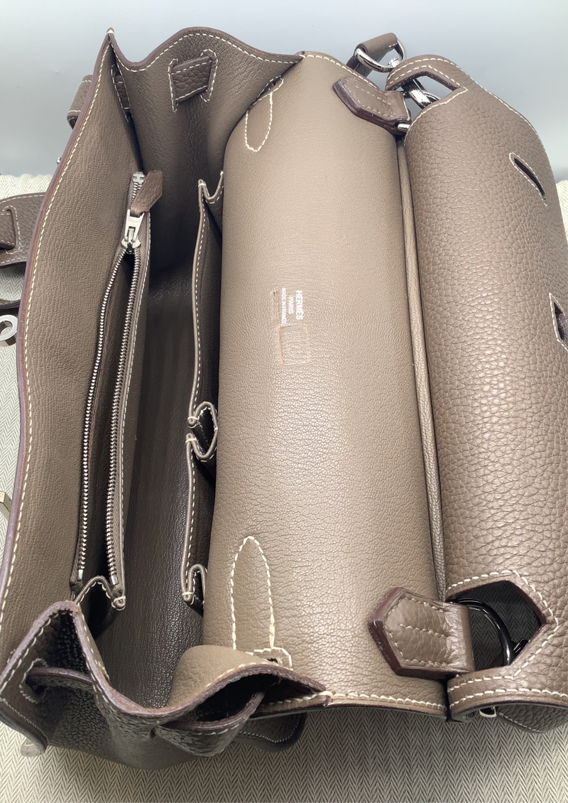 Hermes Jypsiere 28 Bag, In Etoupe taurillon Clemence leather with Palladium Hardware.