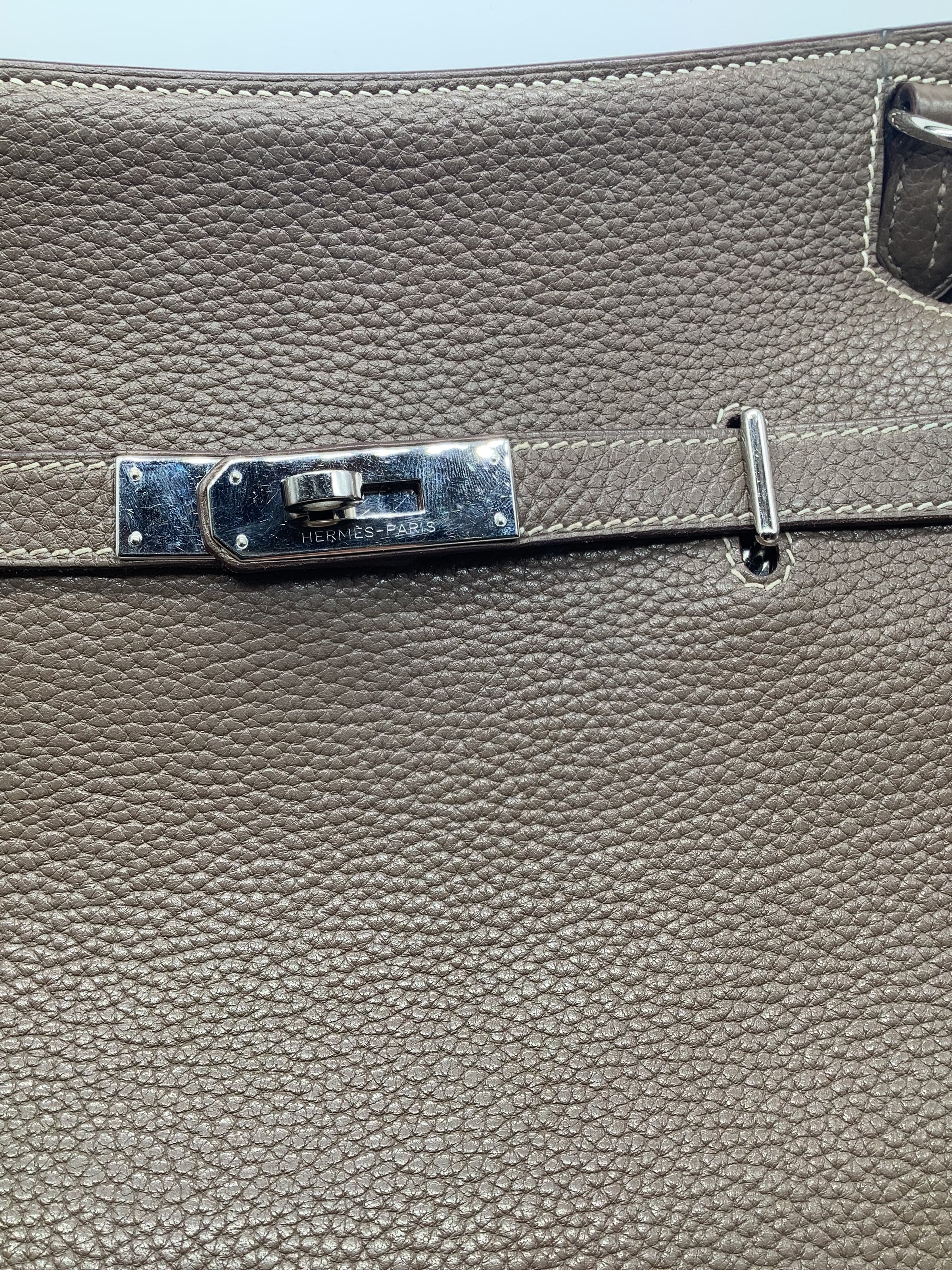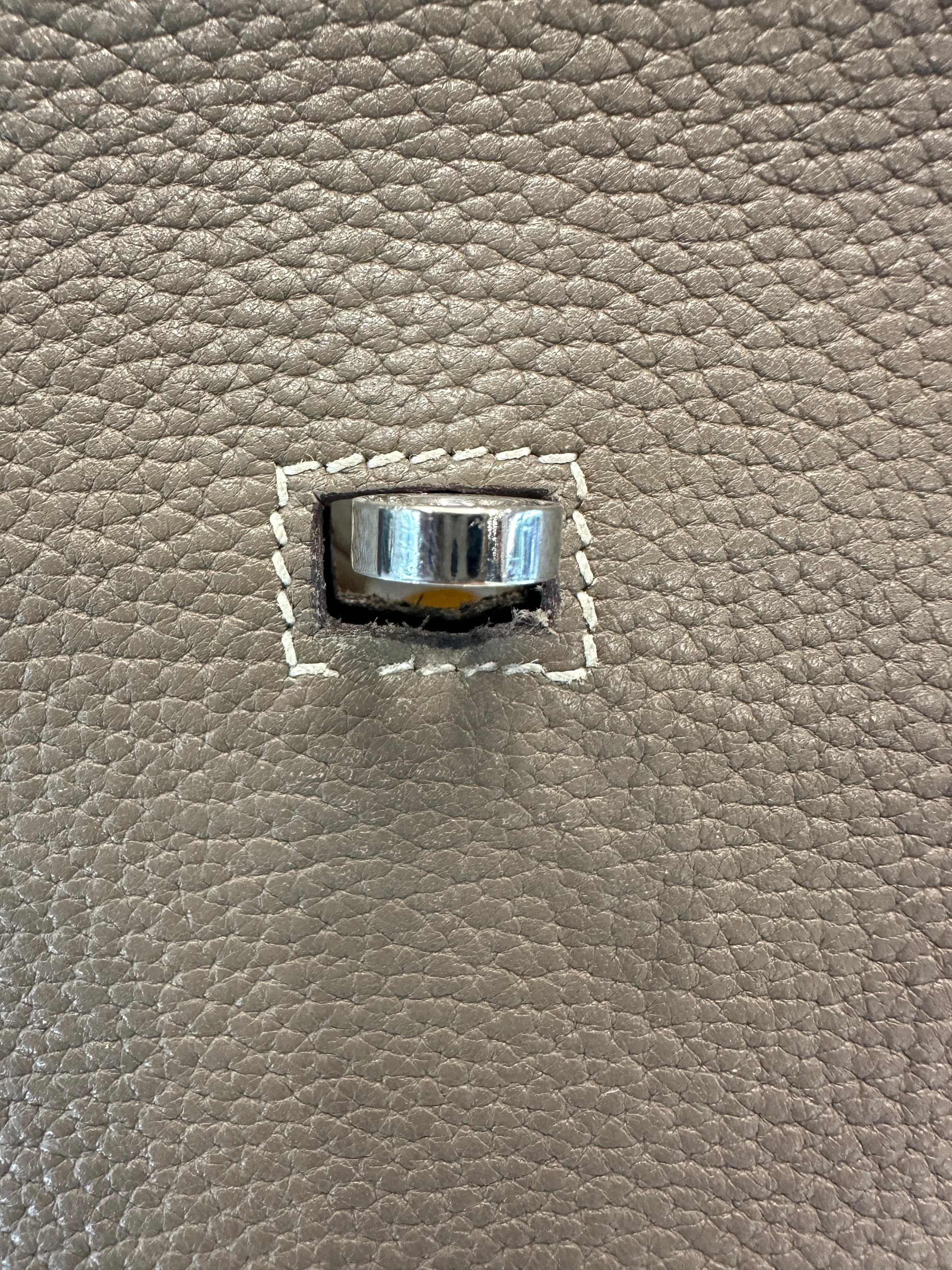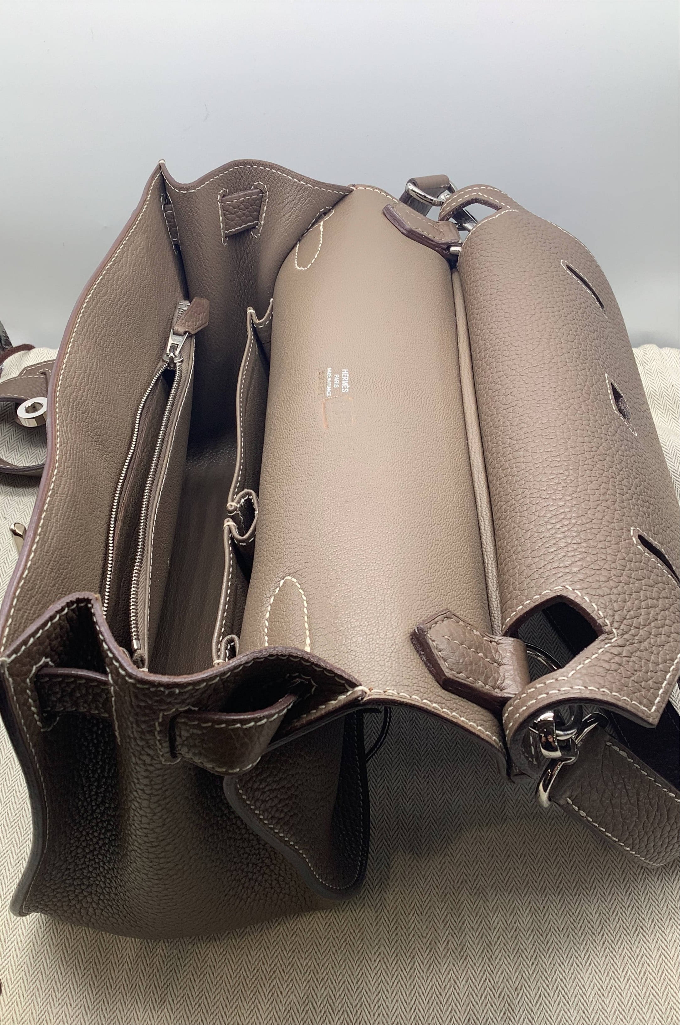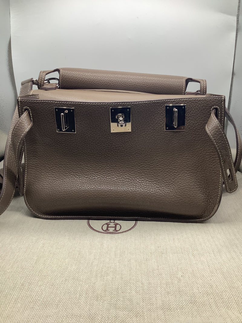 Hermes Jypsiere 28 Bag, In Etoupe taurillon Clemence leather with Palladium Hardware.