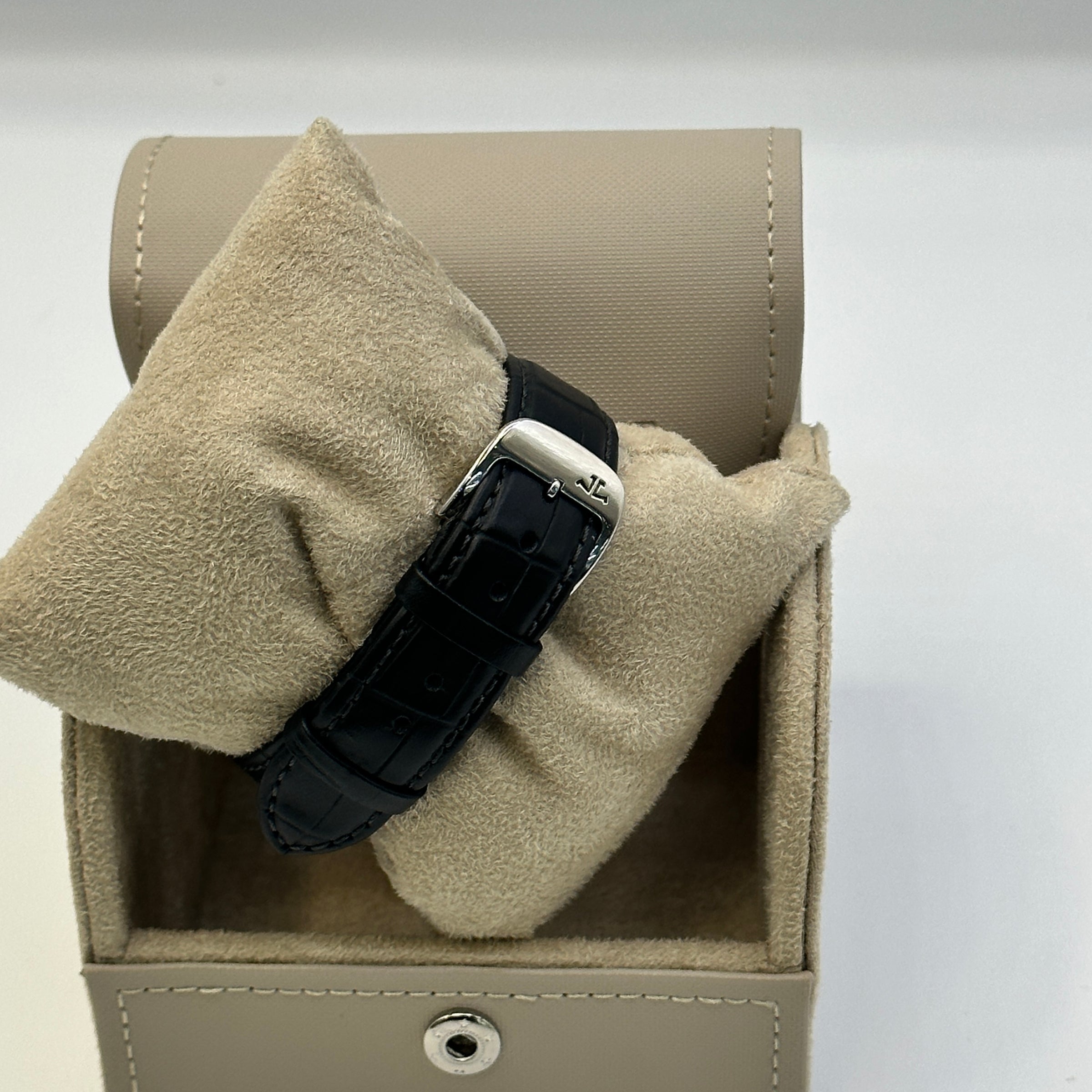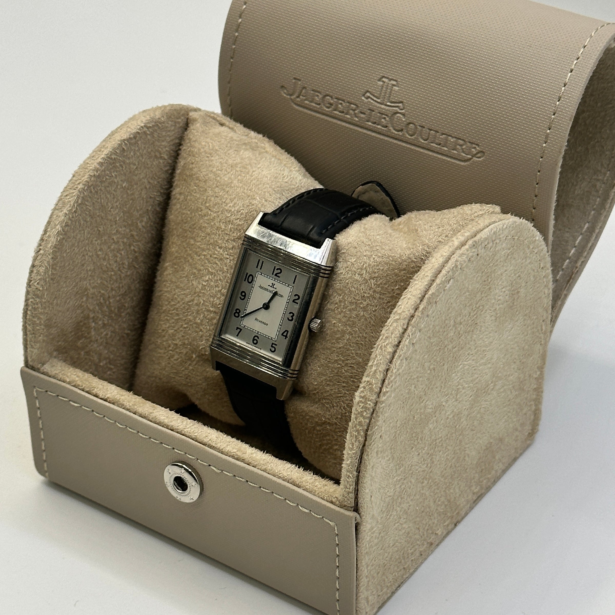 The Jaeger-LeCoultre Reverso Classic Small in stainless steel, Ref. 250.8.86, is a testament to timeless elegance and precision craftsmanship. This watch showcases a rectangular 'classic small size' case with a reversible feature that is both iconic and functional. The dial is classically styled, offering easy readability and a touch of sophistication with its art deco elements. This model has the finely finished manual winding calibre 846/1 with a 40 hour power-reserve.