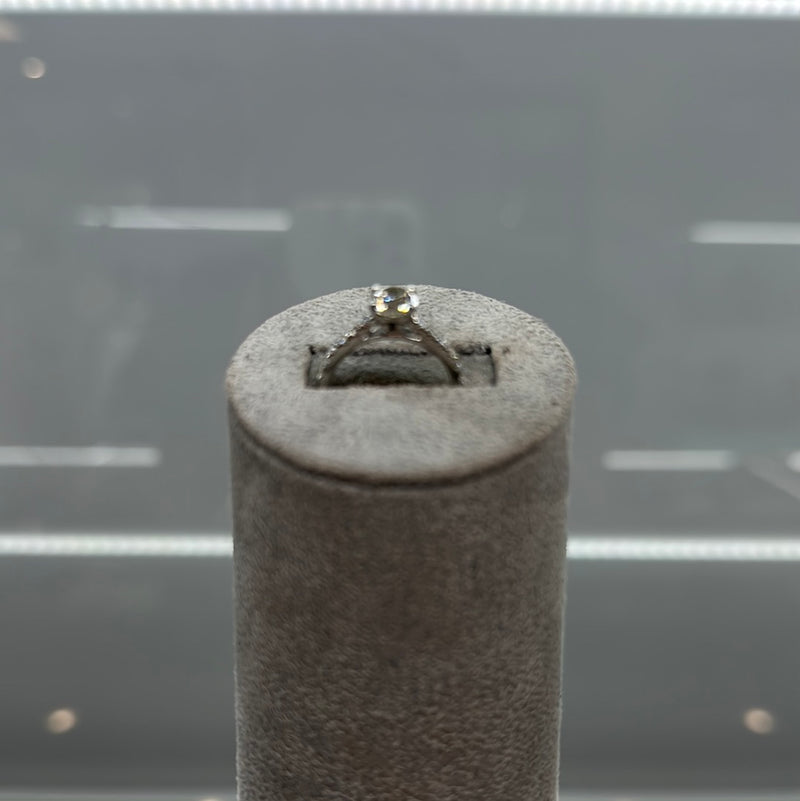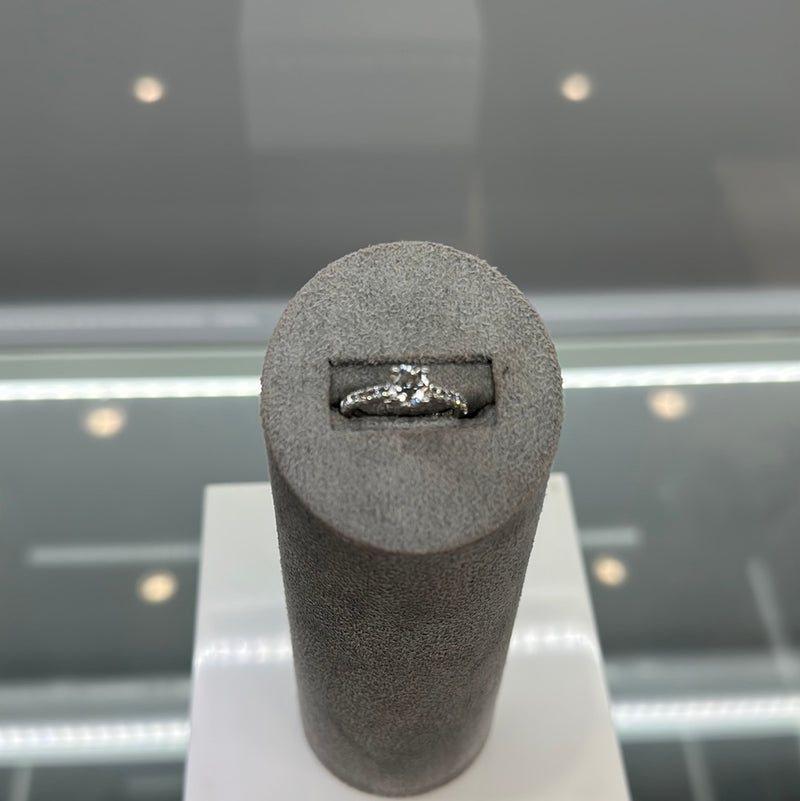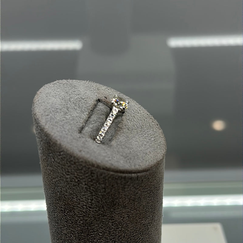 Ladies Platinum Diamond Ring Set With Brilliant Cut Diamond Centre Stone With Small Brilliant Cut Diamonds Running Down The Shoulders, Finger Size J