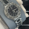 37mm stainless steel case, housing a black index dial with Arabic numeral 12, luminous hands and a date aperture between 4 and 5 o'clock. The focus of this piece is certainly on the bezel which is set with 120 black diamonds. Presented on a full retail length two-tone stainless steel & ceramic bracelet with a double-fold clasp.