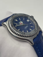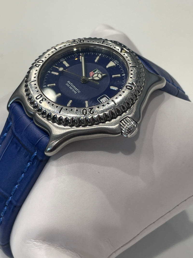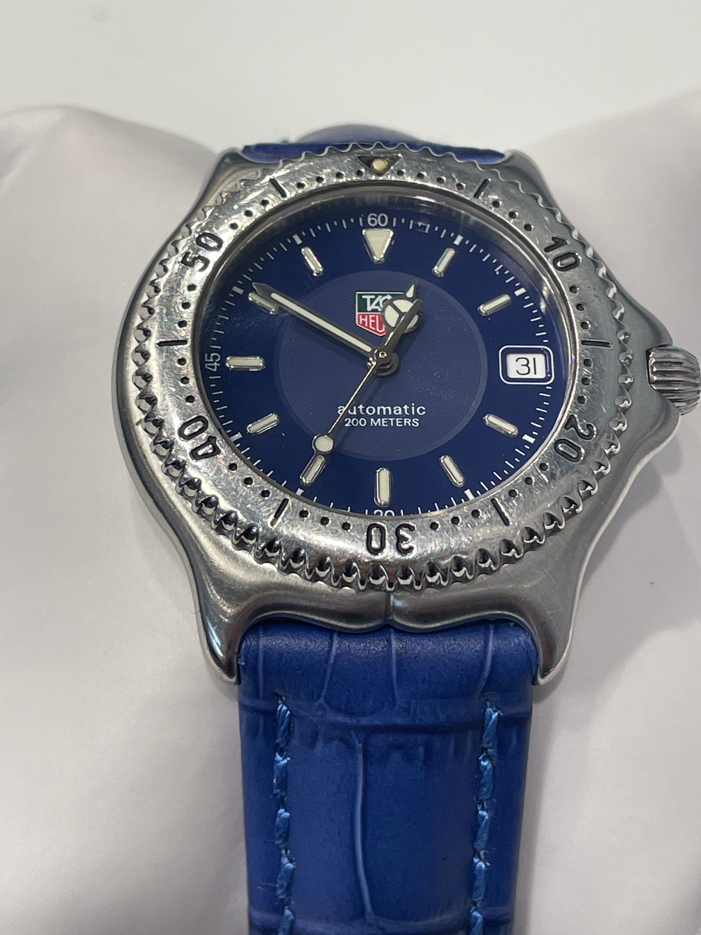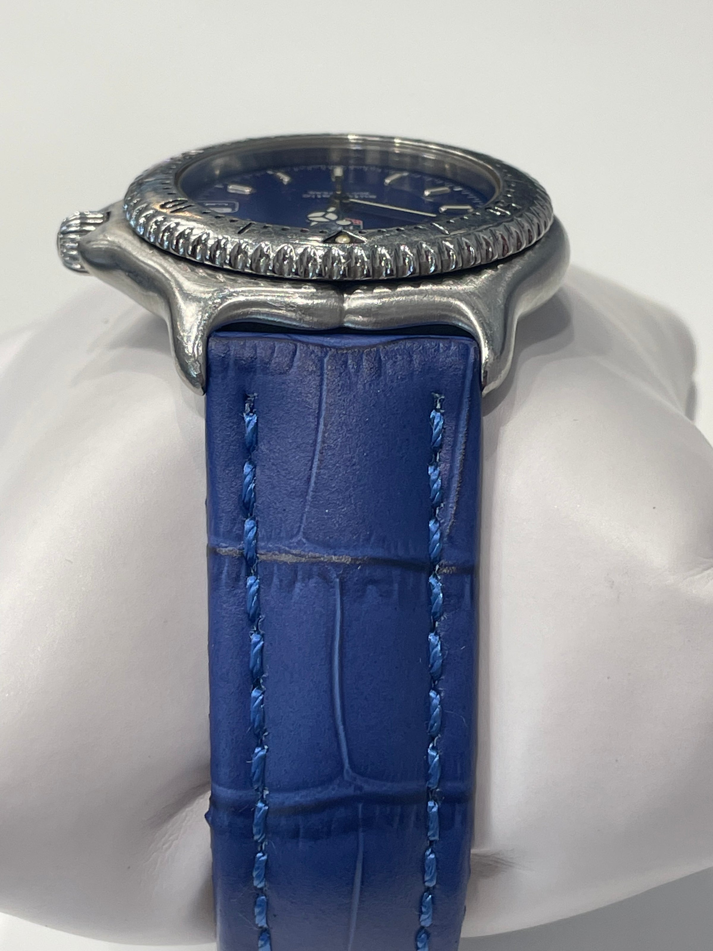 Tag Heuer Watch With Blue Dial On A Blue Crocodile Leather Strap Deployment Buckle
