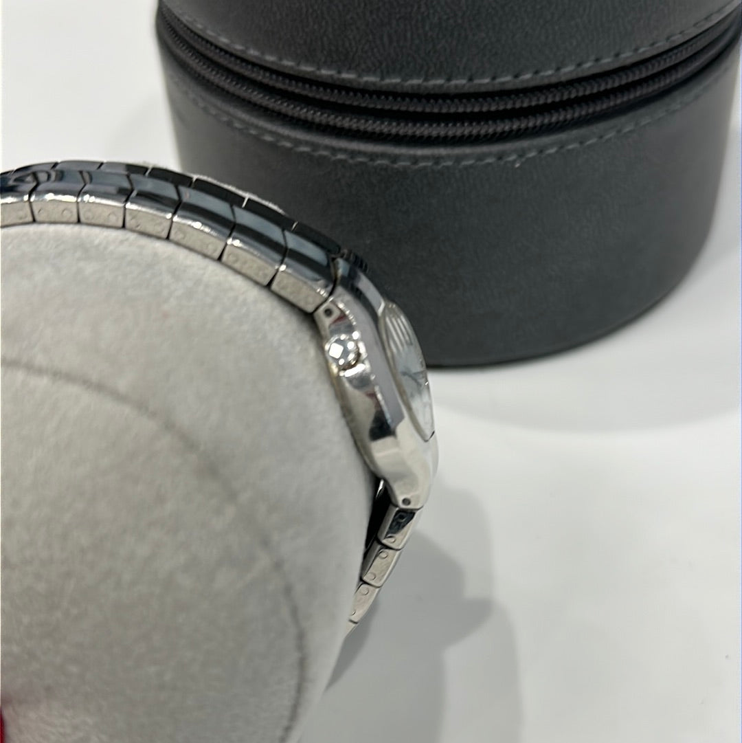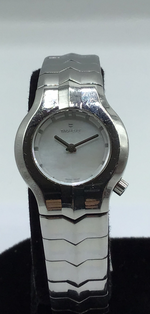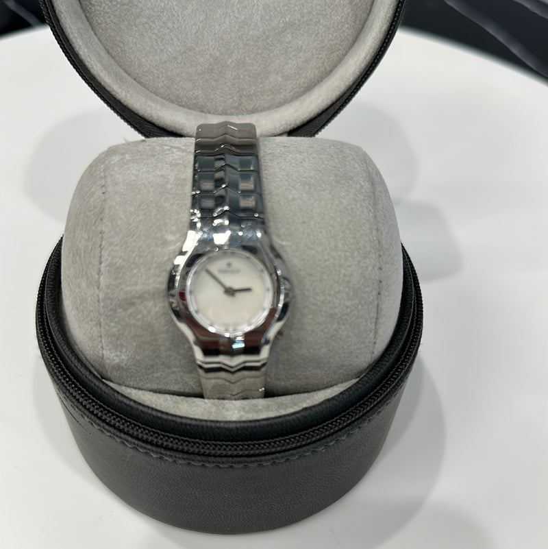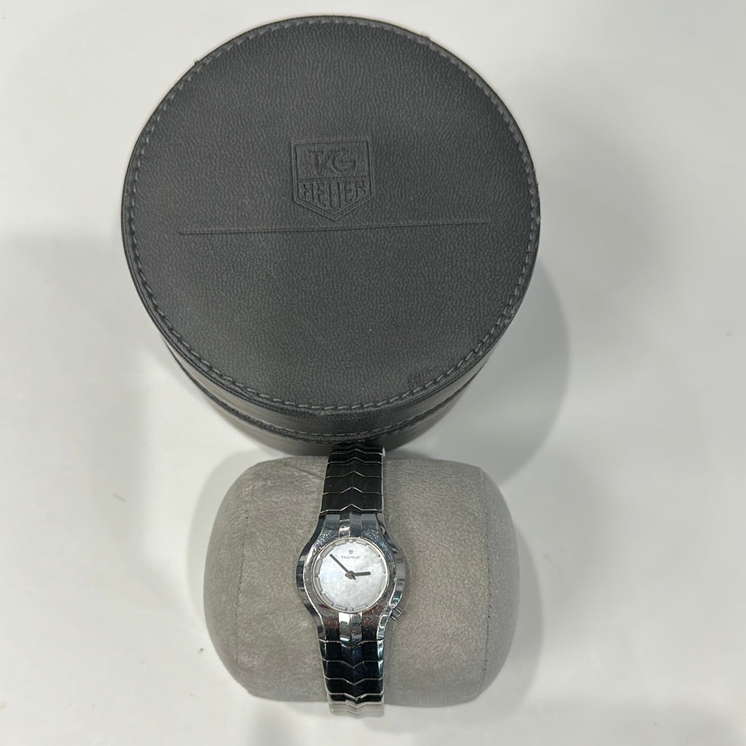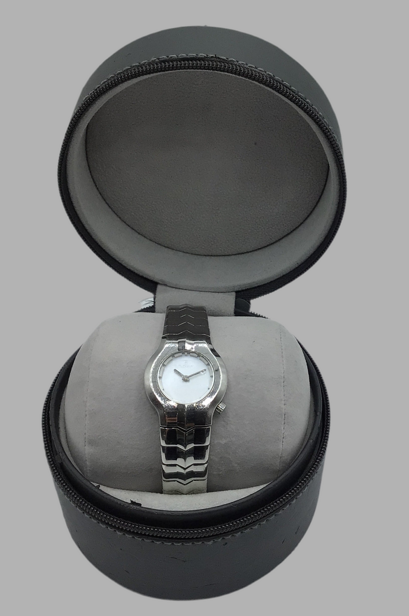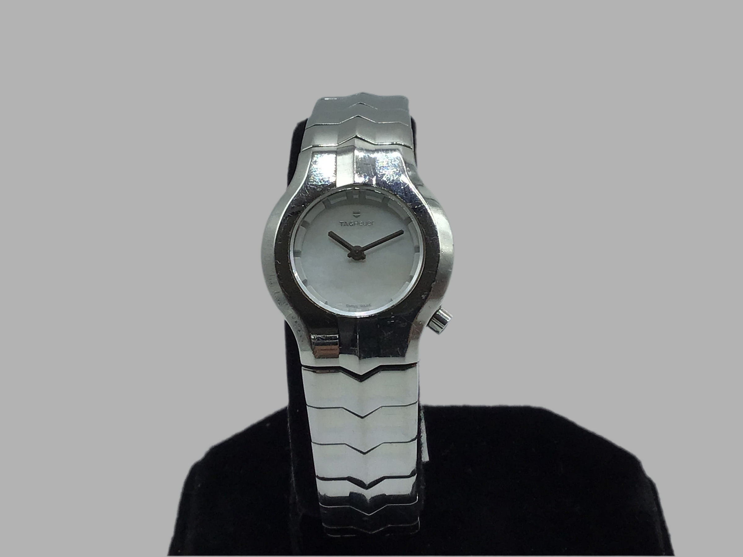 Established in 1860, TAG Heuer is synonymous with avant-garde design and precision timekeeping. The Alter Ego collection, introduced in the late 1990s, was the brand's first line specifically designed for women, blending contemporary aesthetics with Swiss craftsmanship. The collection is characterized by its seamless integration of case and bracelet, offering a sleek and modern look.