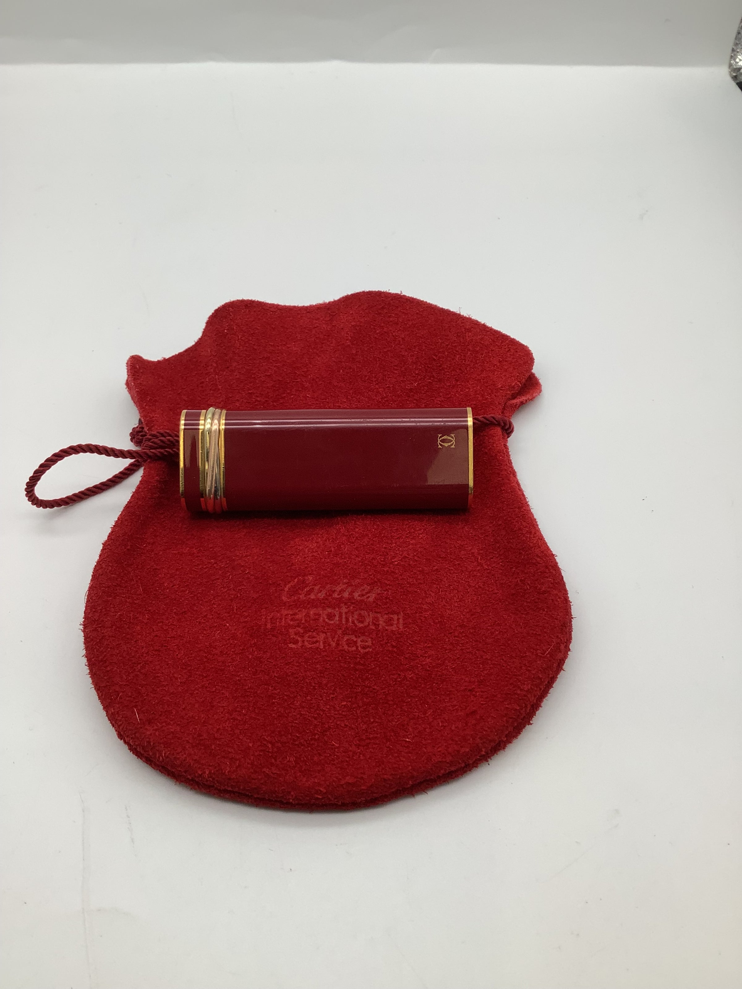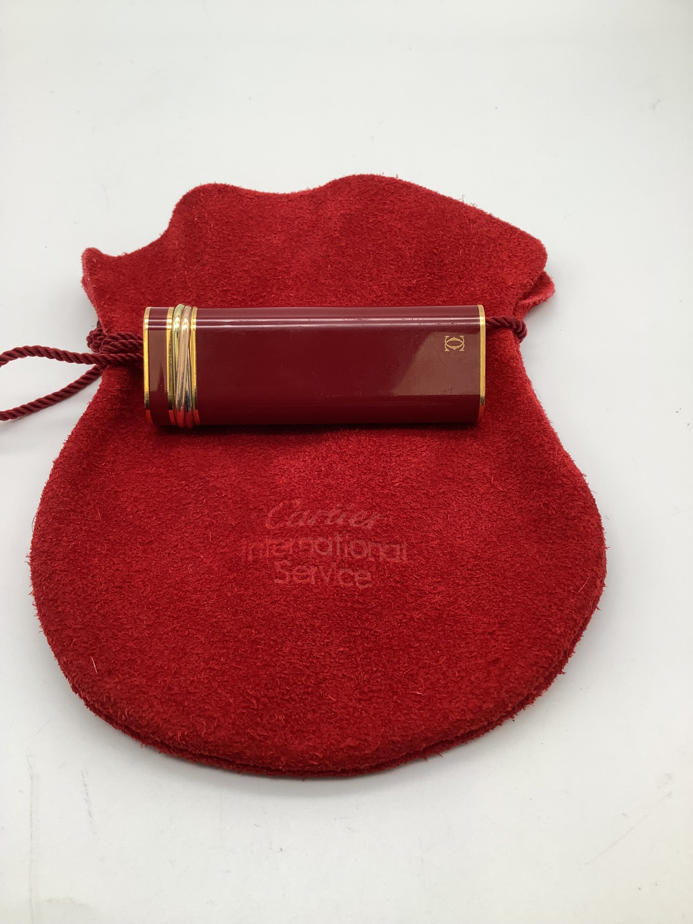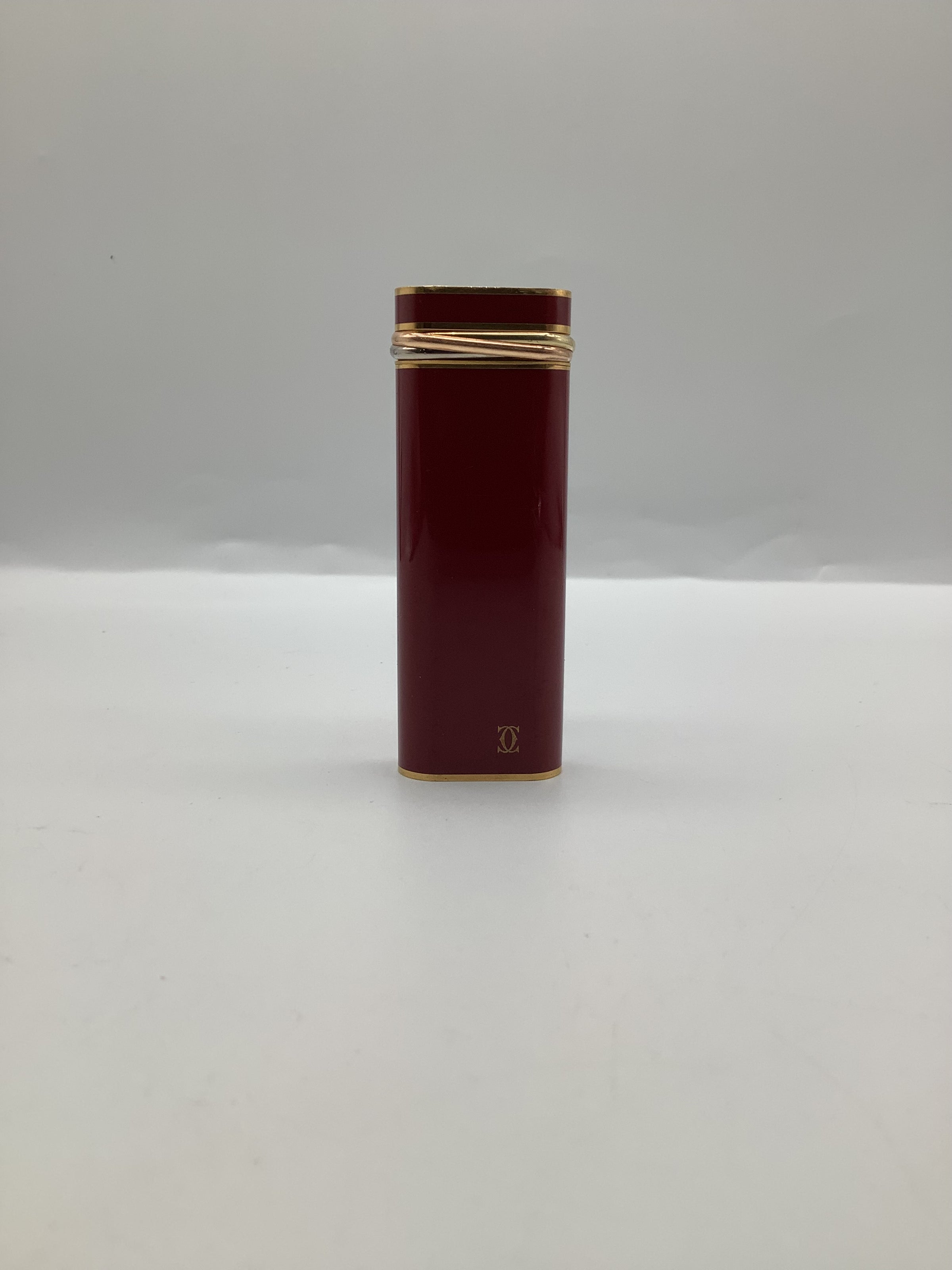 Cartier, Must De Cartier Trinity Lighter with Gold Plating and Red Lacquer Case.