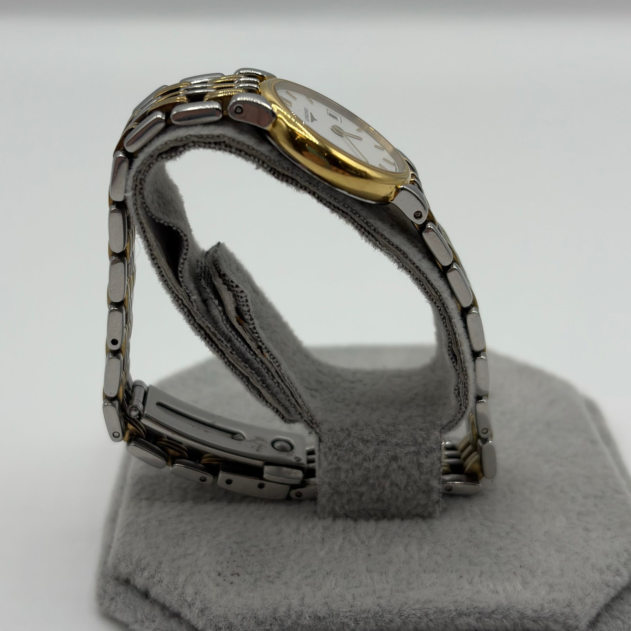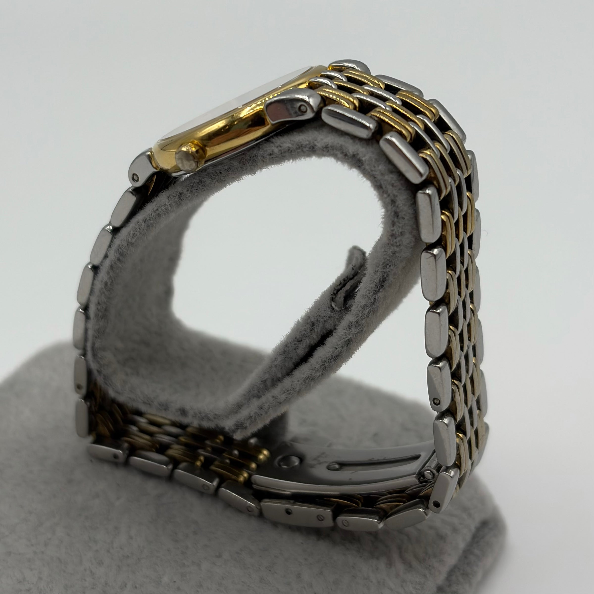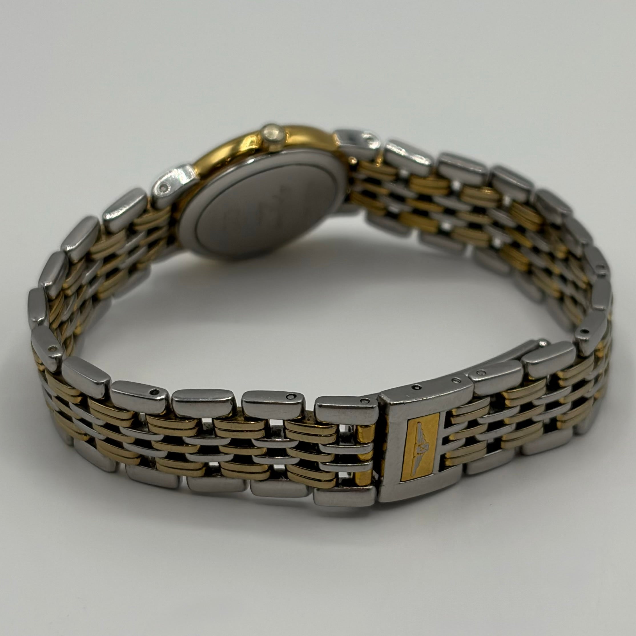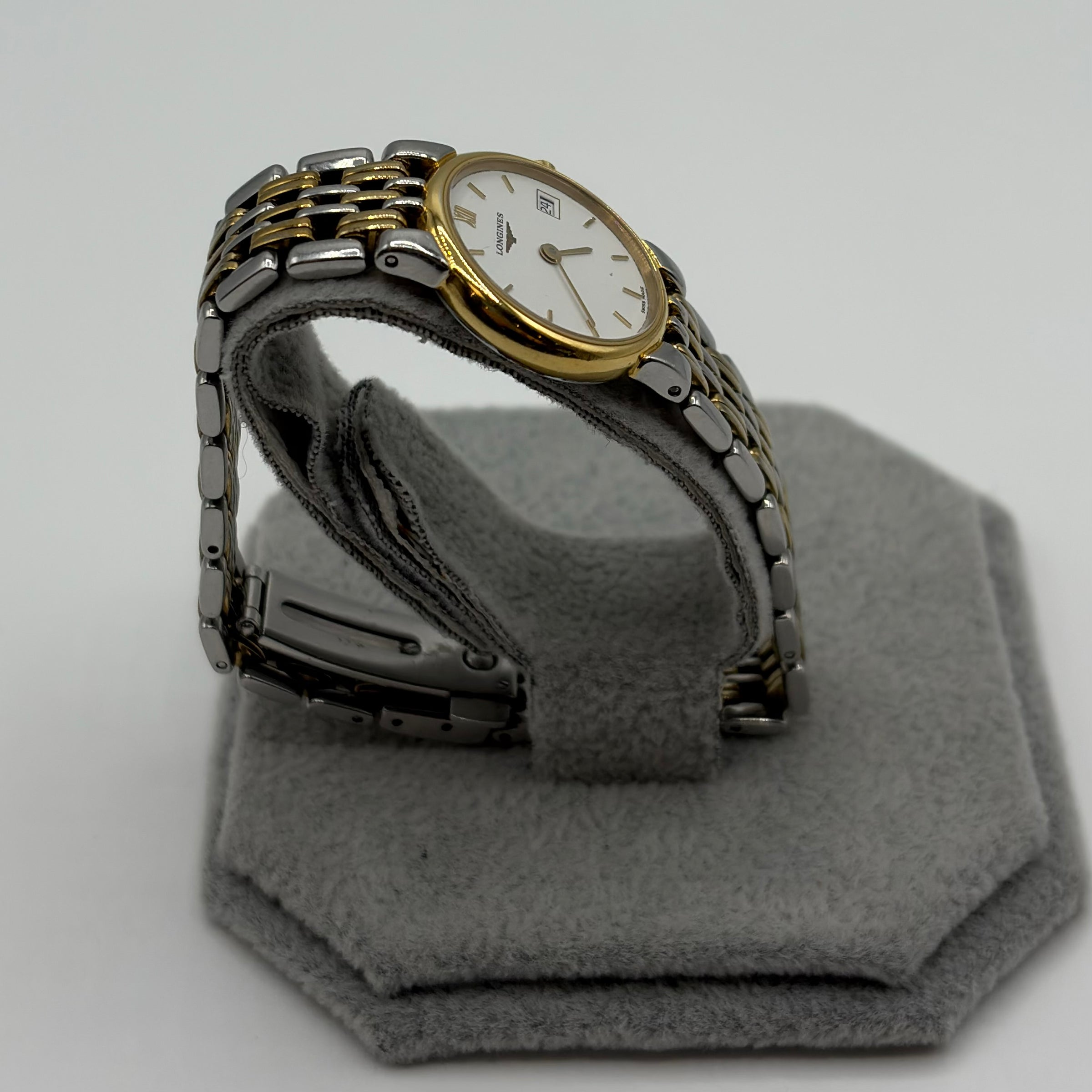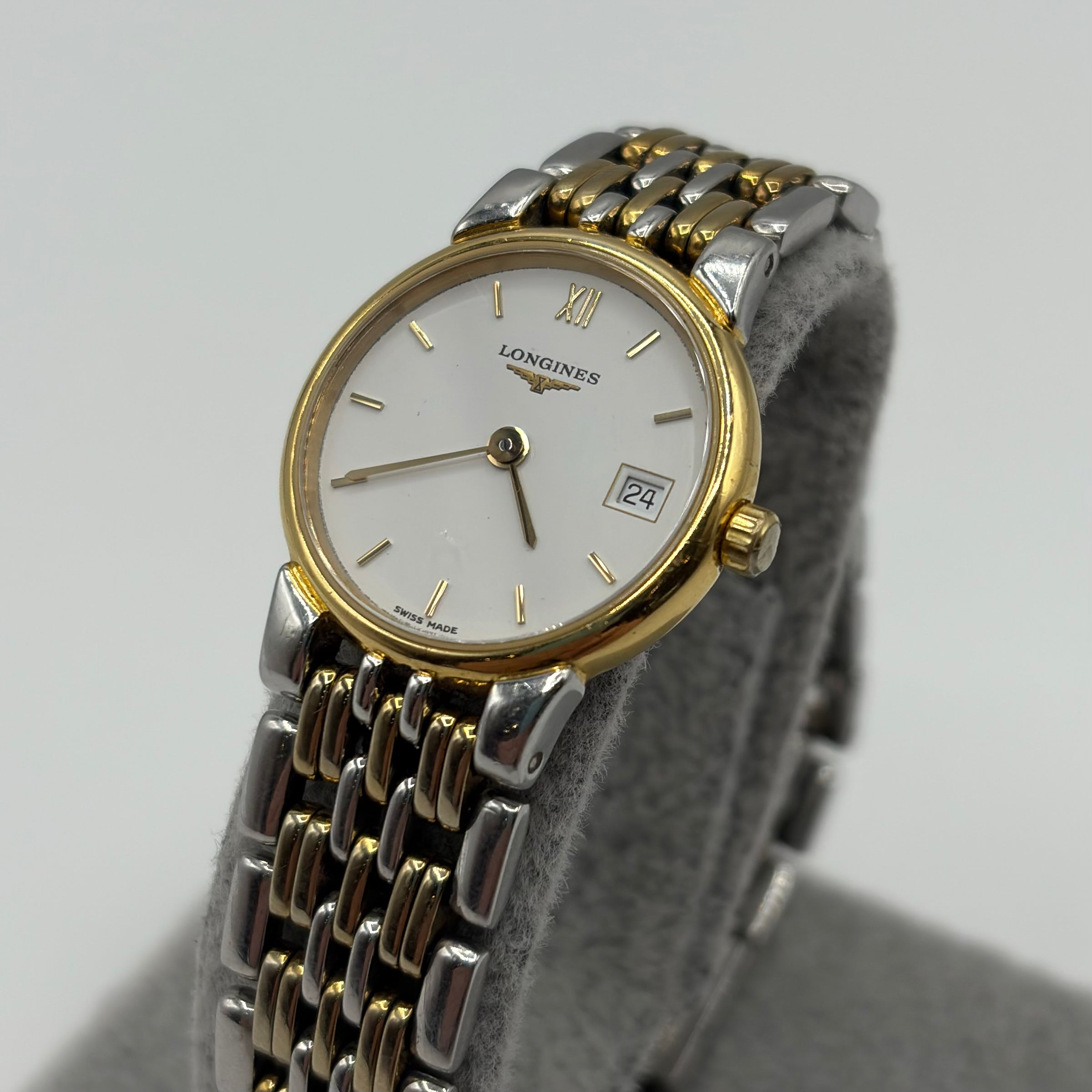 Powered by a Swiss quartz movement (Longines calibre L.160.2) with six jewels, this watch guarantees precision and reliability without the need for winding. The bracelet mirrors the two‑tone case with polished stainless steel and gold-plated centre links, securing with a sliding clasp for a seamless silhouette.