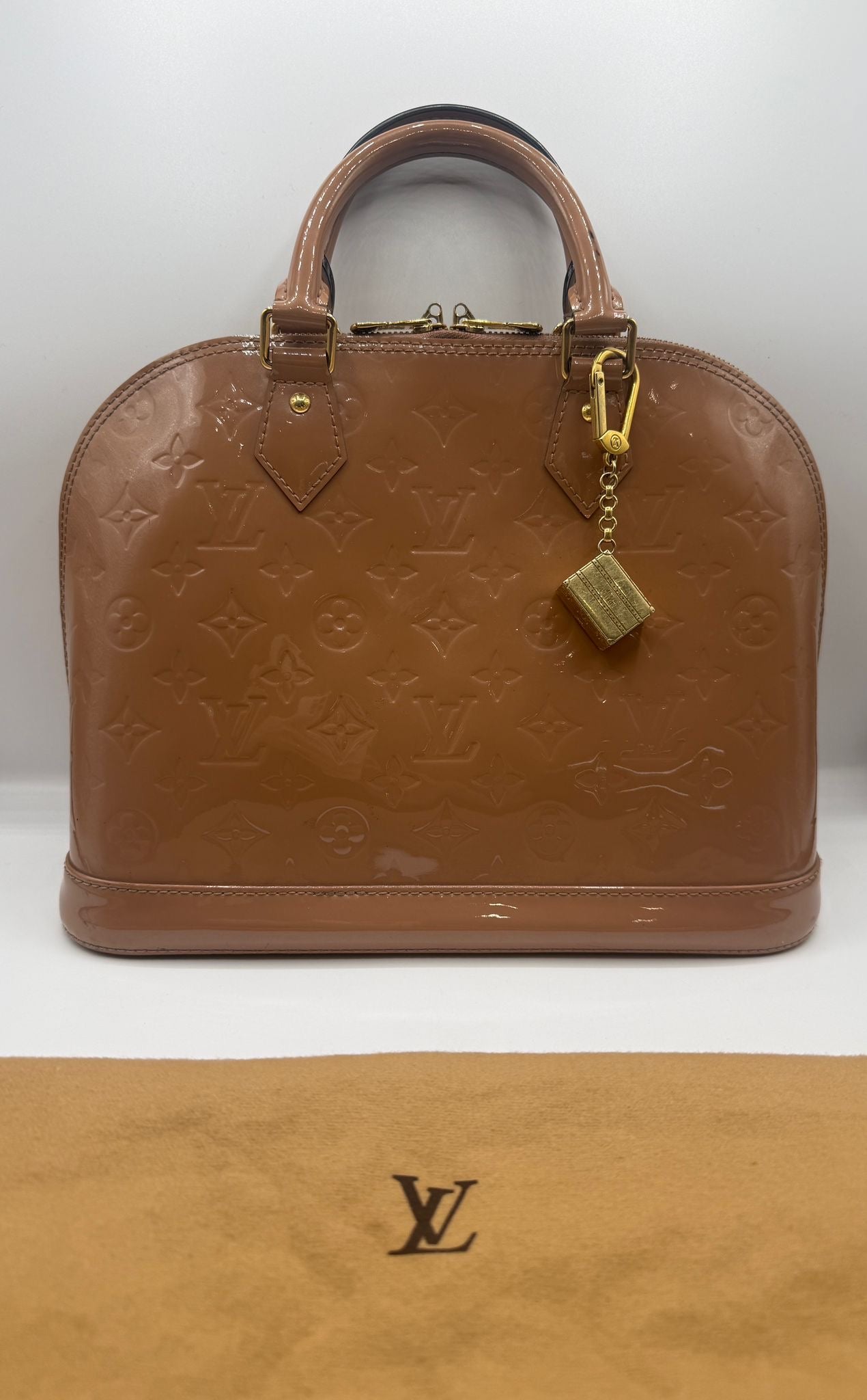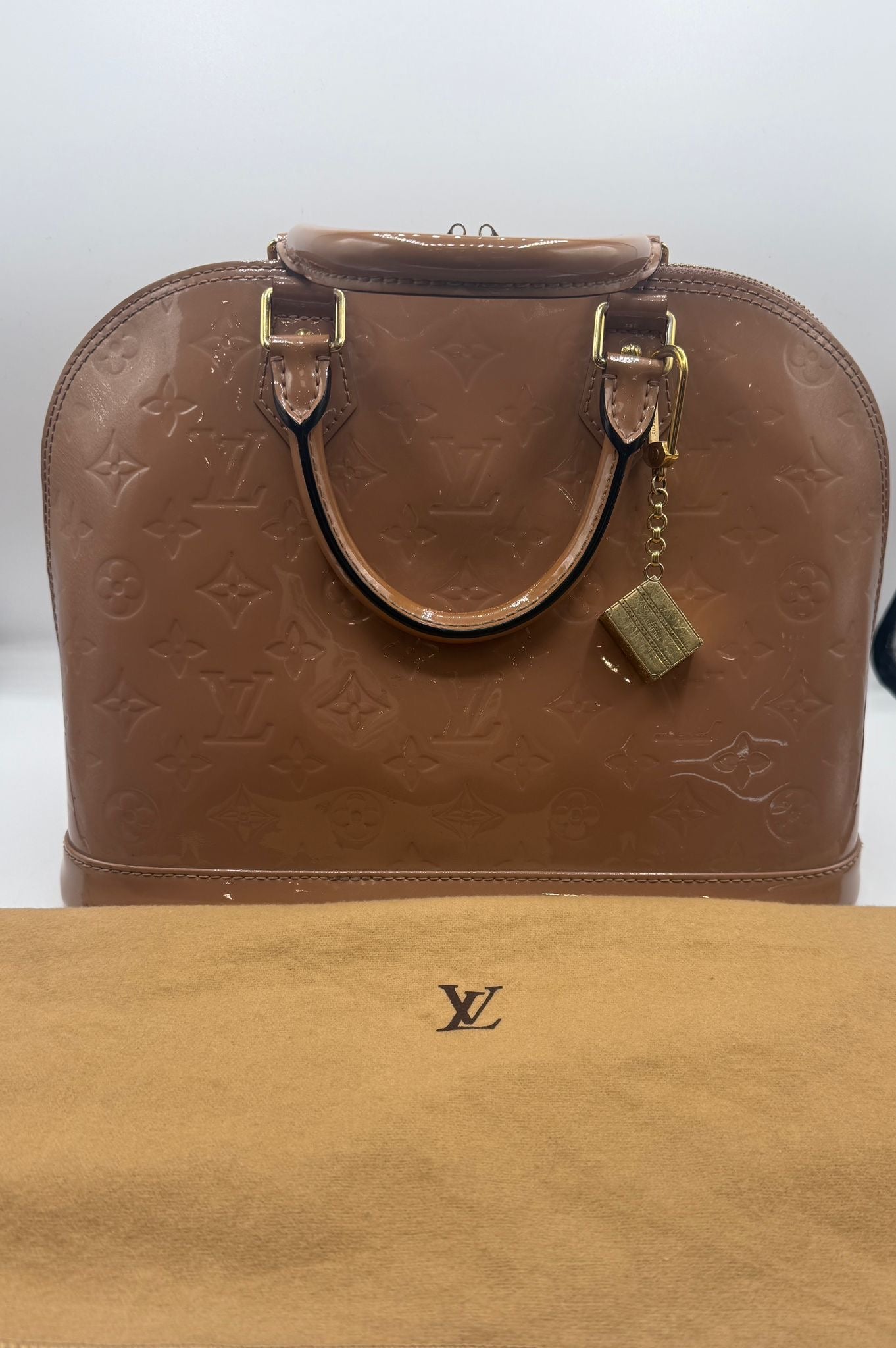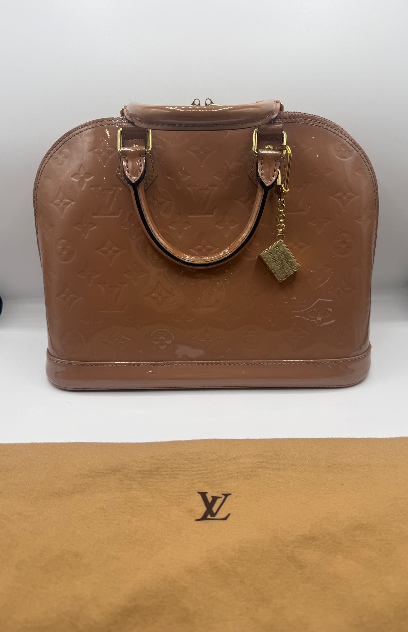 The Louis Vuitton Alma Patent Vernis Handbag is a timeless icon of luxury, presented in an elegant nude patent Vernis leather finish. Renowned for its structured, dome-shaped silhouette, the Alma is crafted from high-shine embossed leather featuring the house’s signature monogram. The design is complemented by rolled leather top handles, polished gold-tone hardware, and a secure double zip closure. The interior is lined and spacious enough for daily essentials, making it both practical and refined. A sophisticated handbag that transitions effortlessly from day to evening, embodying classic Parisian elegance.