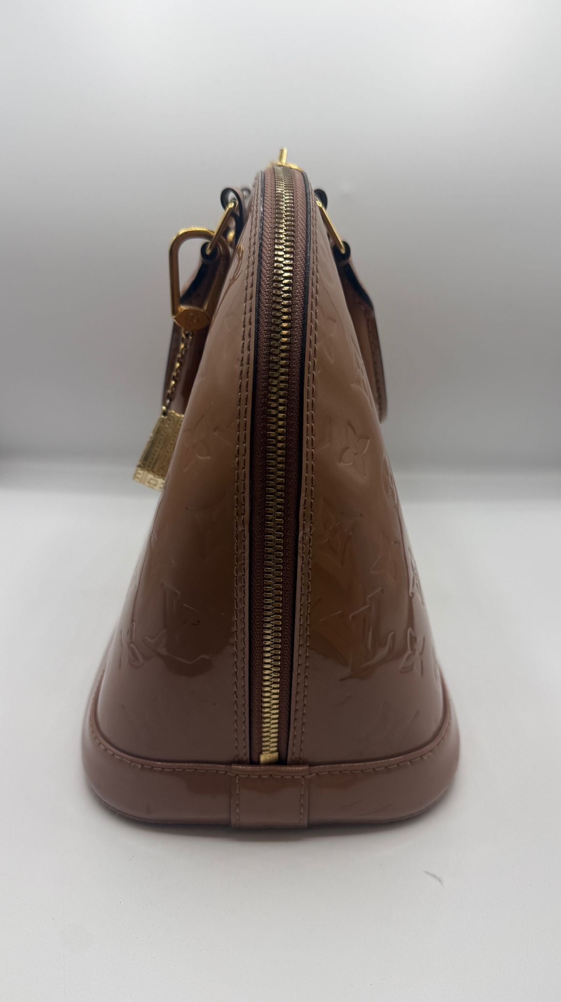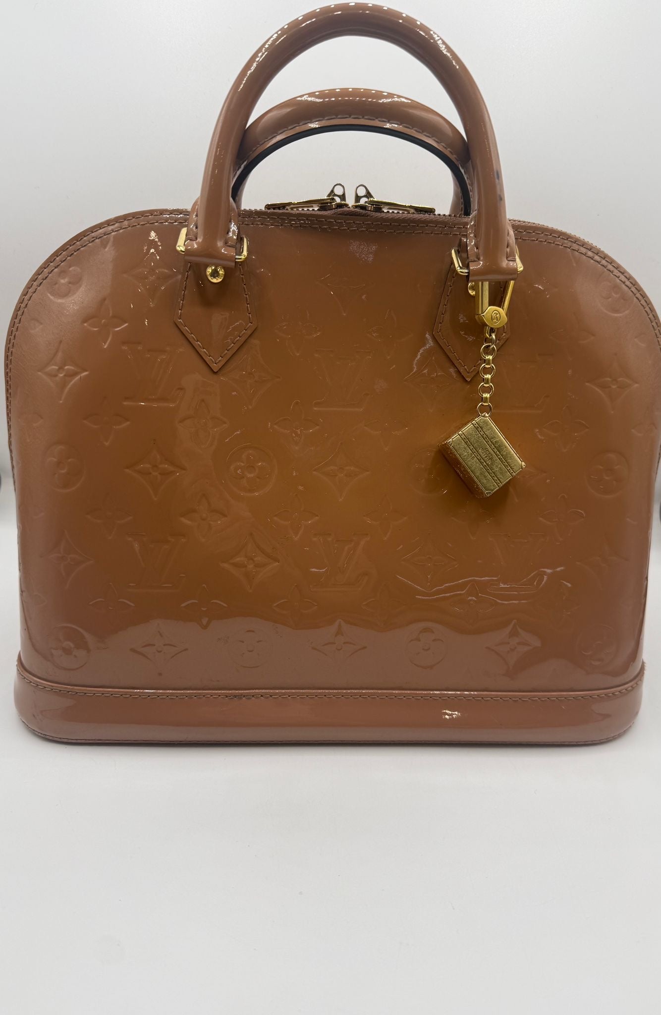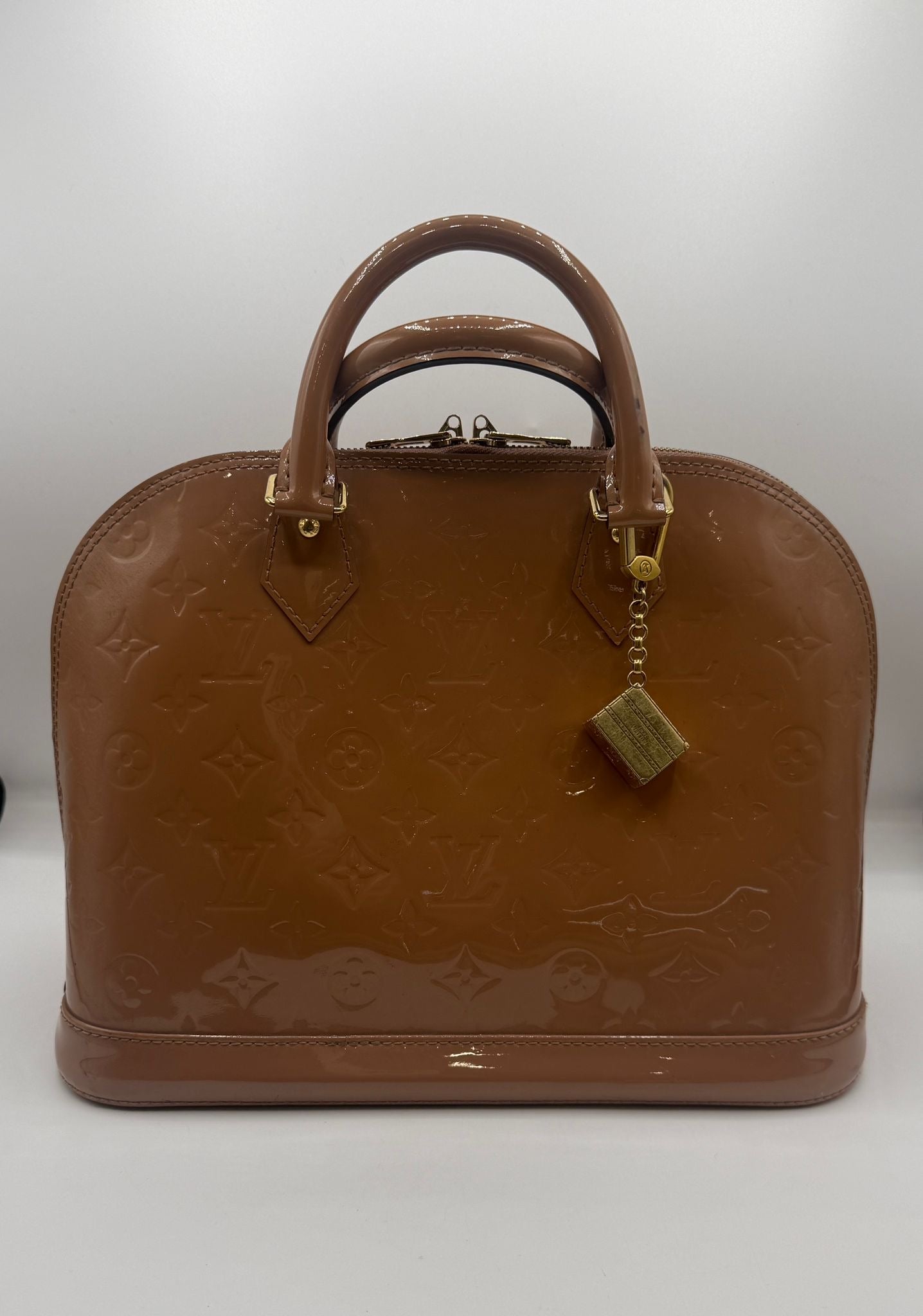 The Louis Vuitton Alma Patent Vernis Handbag is a timeless icon of luxury, presented in an elegant nude patent Vernis leather finish. Renowned for its structured, dome-shaped silhouette, the Alma is crafted from high-shine embossed leather featuring the house’s signature monogram. The design is complemented by rolled leather top handles, polished gold-tone hardware, and a secure double zip closure. The interior is lined and spacious enough for daily essentials, making it both practical and refined. A sophisticated handbag that transitions effortlessly from day to evening, embodying classic Parisian elegance.