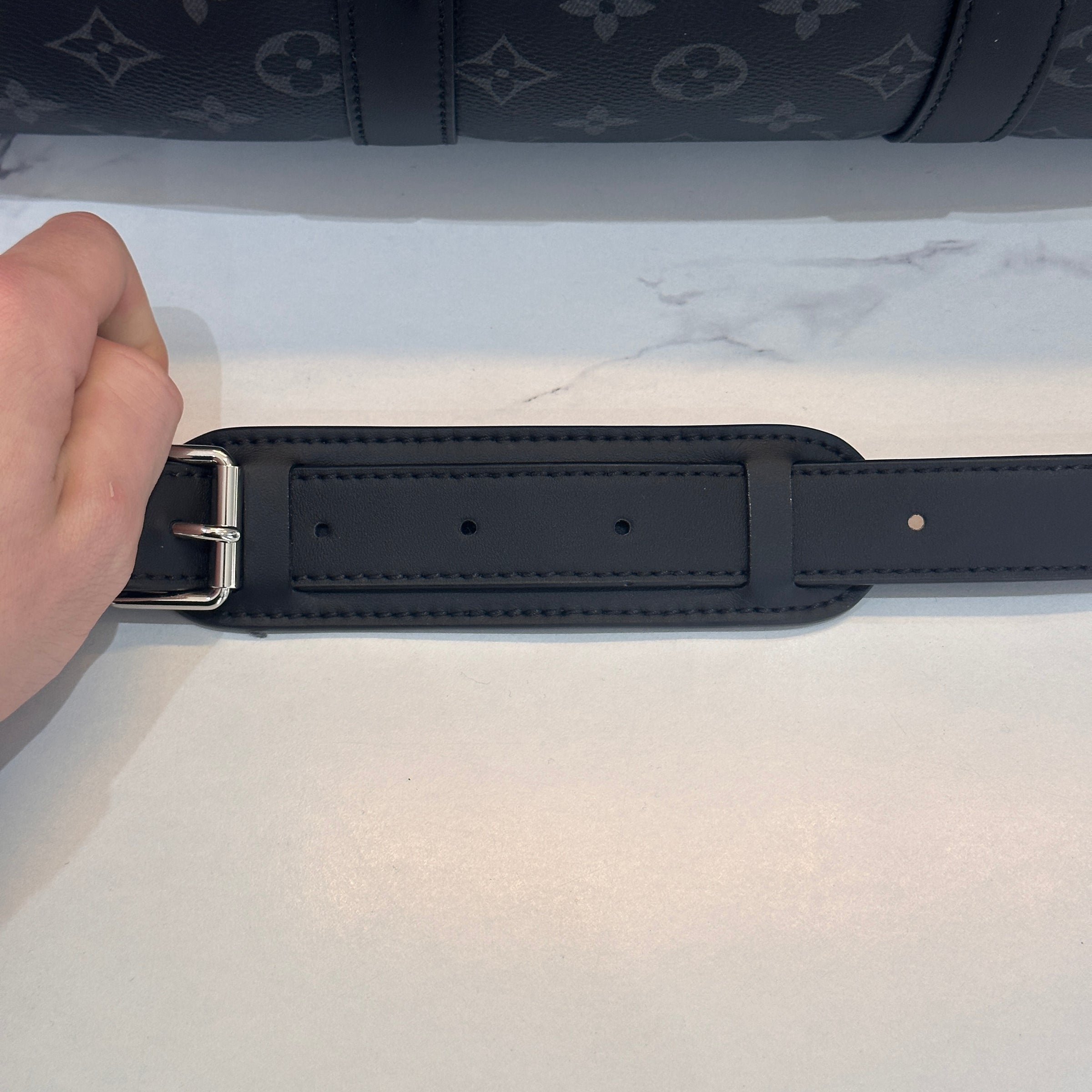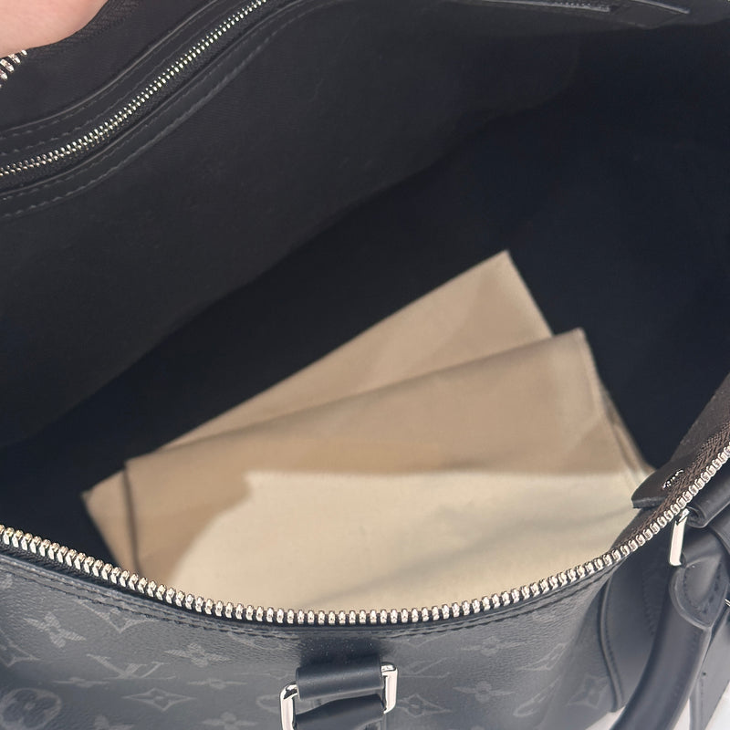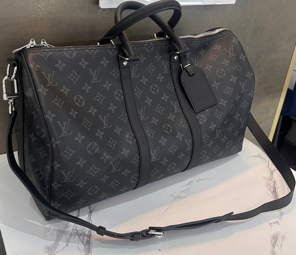 The bag's clean, minimalist look in black adds to its modern appeal, and its classic design ensures it remains timeless. The black Keepall 45 is highly regarded for its durability, craftsmanship, and the understated luxury it conveys.